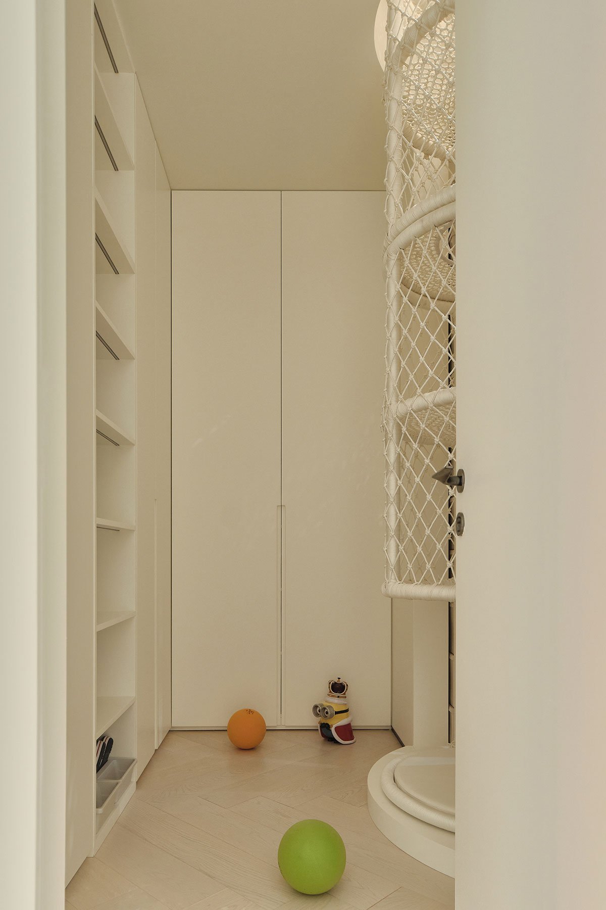 There is a secret base in the children’s cloakroom, if you open the door of closet, you will find a channel to attic which allures both adults and children to get in. By boldly integrating playful architectural elements into the design of the residence, it becomes more than just a paradise for children; it becomes a utopia for everyone, where their dreams and ideals all come to life. Each crawl represents an unknown journey of exploration, allowing individuals to immerse themselves in boundless imagination and joy. Our curiosity is awakened through each interaction with the environment, as if constantly watering and nurturing a forest within the depths of our inner childlike realm.