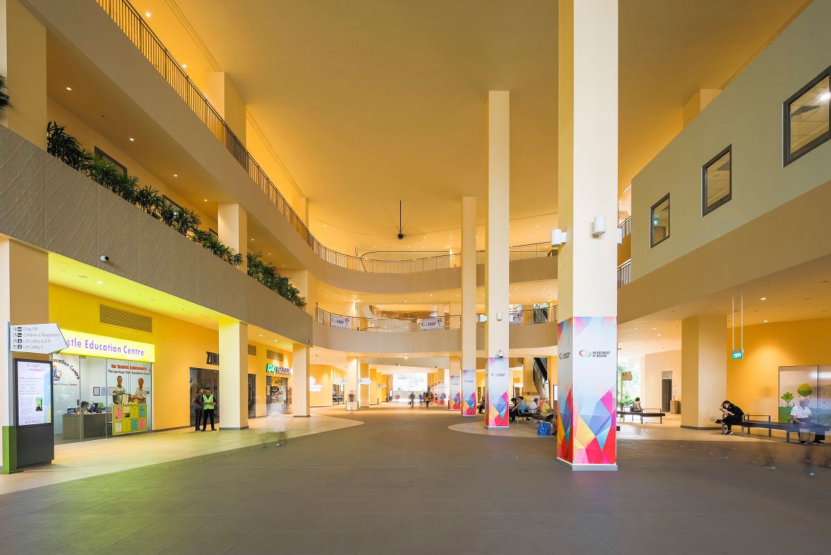 To reduce the building’s reliance on mechanical systems for comfort, a number of measures were taken to create an internal environment suitable to the tropical climate. First, the early adoption of passive design concepts and intention to channel wind led to the building mass being configured to promote wind flow through Level 1 atrium space via Venturi effect, leading to a conducive and comfortable naturally ventilated social space.