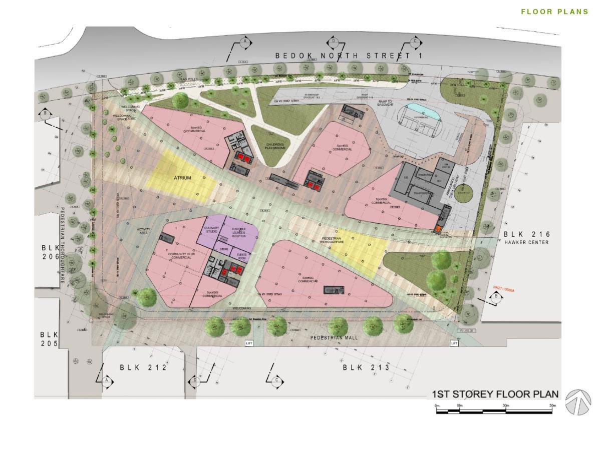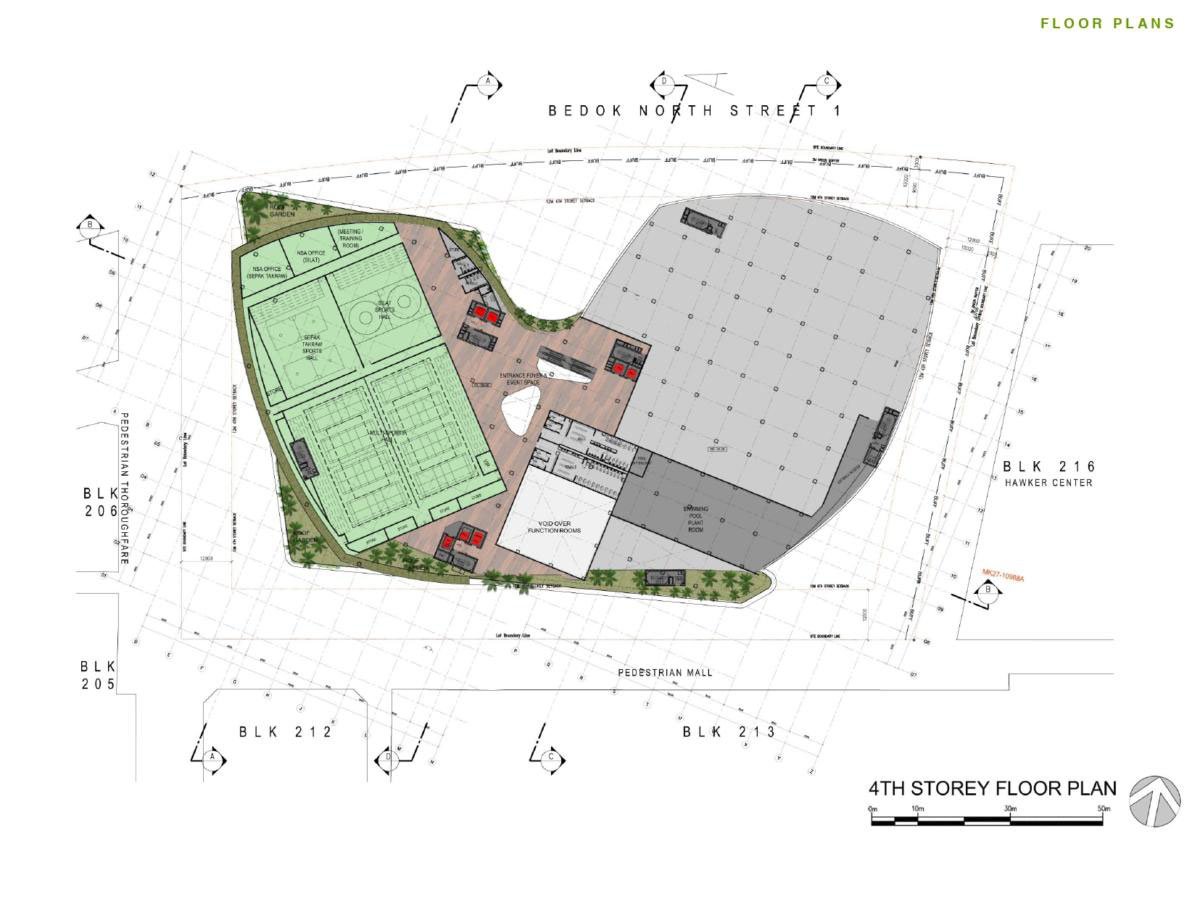 Secondly, internal spaces were designed with high ceilings for enhanced overall porosity, allowing for effective cross-ventilation and air circulation. This helped create microclimates at both the pedestrian thoroughfare and sports complex area for enhanced end-user comfort.