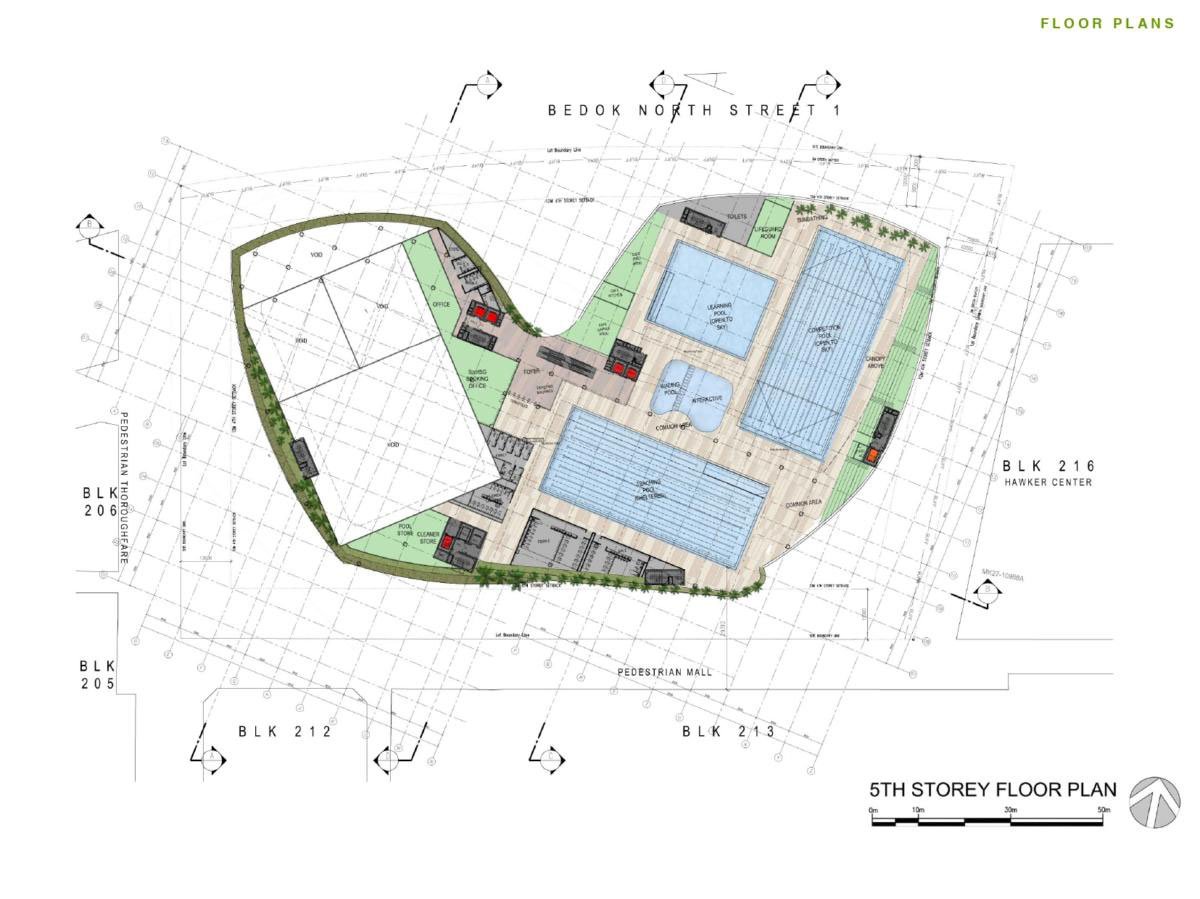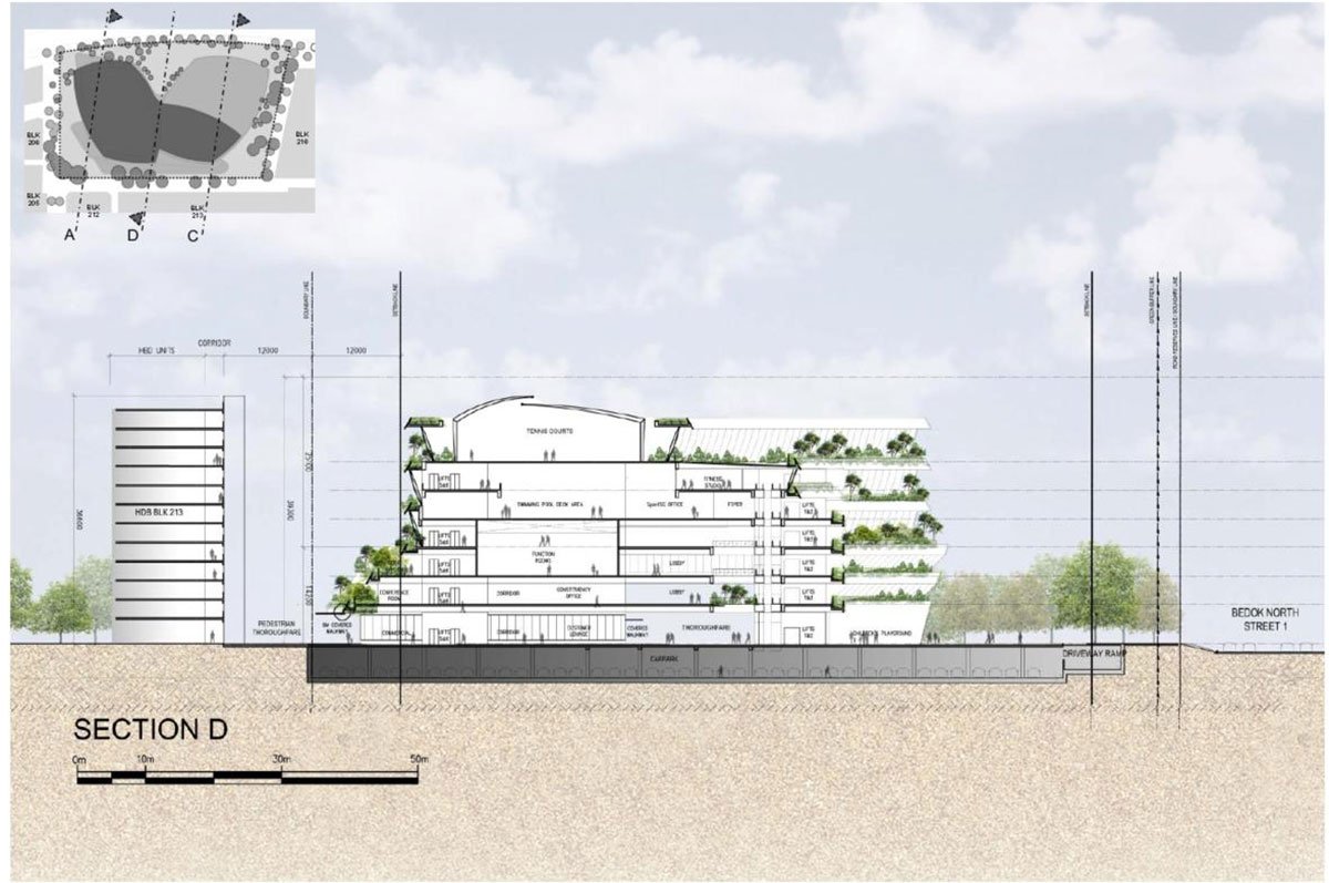 The new building, with amenities from four swimming pools to public healthcare, resulted from the dramatic transformation of a public park in the heart of the vibrant East Coast neighbourhood. In reverence to its historical park of dense landscapes and mature trees, the proposed design carries the same forestry theme throughout the development, retaining the characteristics of a community park. The verdure is practical, utilised as privacy and acoustic screens from the neighbouring residential units.