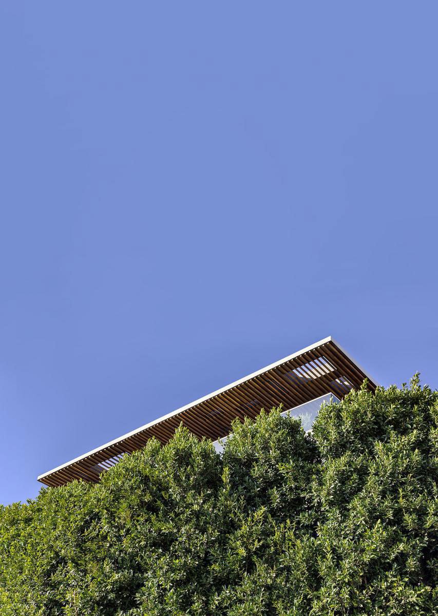 [Text as submitted by architect] SAOTA’s Hillside home in Los Angeles is located immediately above Sunset Boulevard on a promontory just one over from Pierre Koenig’s landmark Stahl House. The site is a 20 000 square foot estate, featuring 300-degree views over the LA skyline and the city basin below, and the design was conceived of more as a self-contained oasis rather than a conventional house. The Stahl House served as a key point of departure. The forms and articulation of Hillside’s roof planes, which were pushed as far forward as possible so that they could create meaningful external covered living spaces, set its architecture in dialogue with the iconic silhouette nearby and connect it to the drama of its context. The projecting eaves and soffits create a “fifth” façade proved fortuitous in creating a sense of identity because the wraparound perimeter views necessitated the carefully controlled placement of solid walls and extensive use of glass to maximise the panoramic potential of the site. Consequently, the architecture is defined through the floating, overlapping horizontal floor and roof plates curating specific view axes rather than mass walls or external structure.
