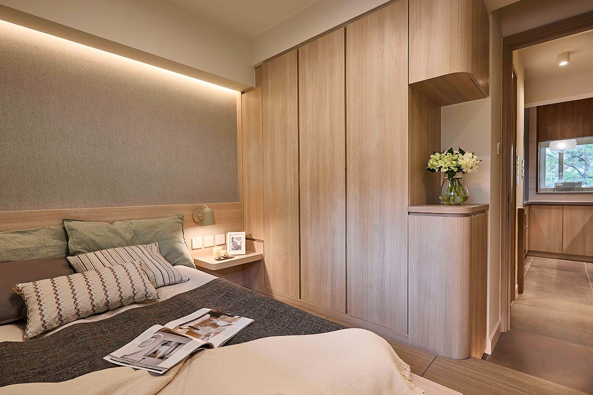 Every space in the house are well defined spatially while at the same time connecting intimately to each other. The general tone of the apartment is composing by 2 tones of wood & a spectrum of neutral earthy colours, creating a decompressing atmosphere, with a pinch of Japanese Minimal touches. Having the advantage of locating on the ground floor, the foyer is made like a Genkan of a traditional Japanese house, shoes can be taken off & well placed before entering the living spaces.