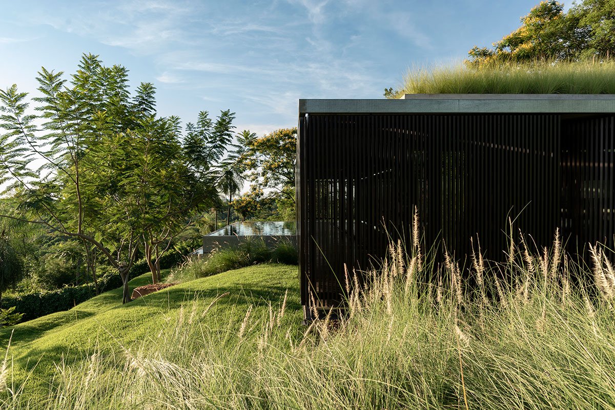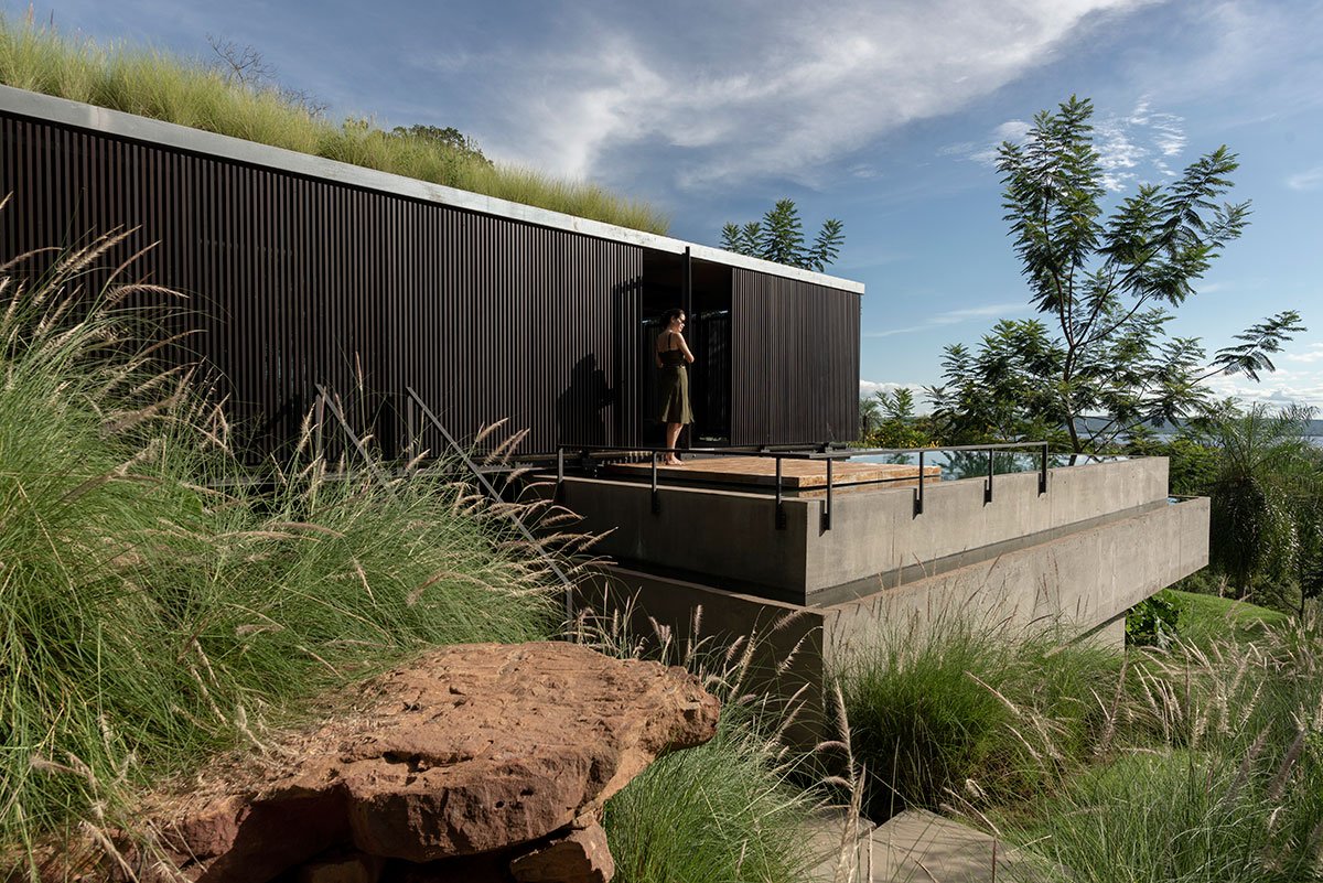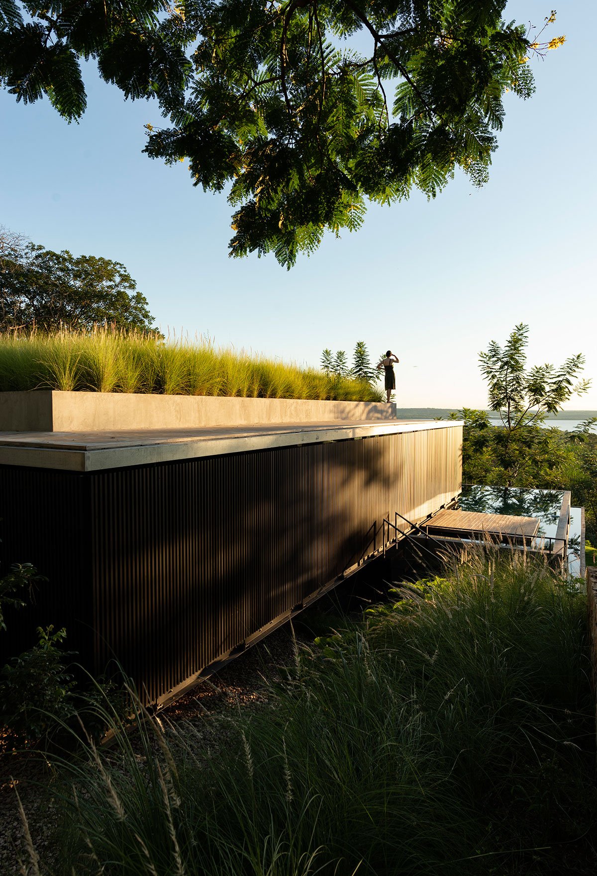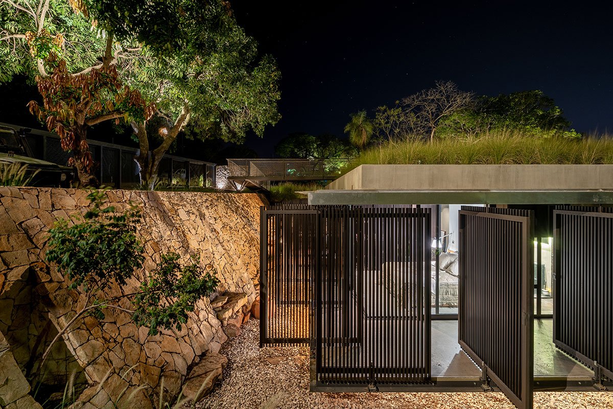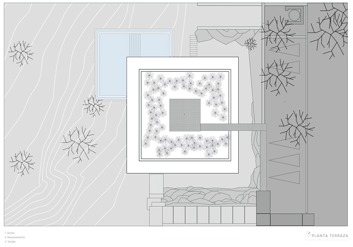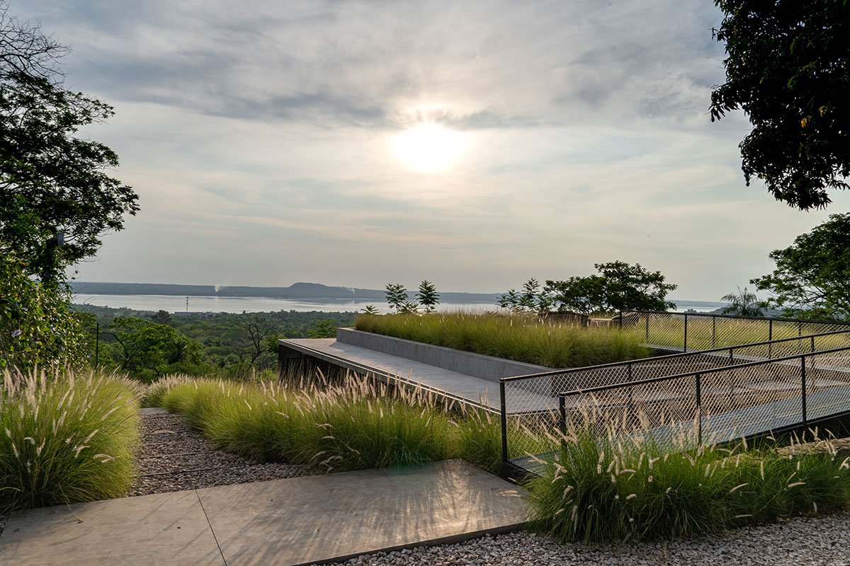 This formation, structured and modulated, is wrapped in vertical planes that allow a space that can be dressed and undressed; a house that shelters, opening and closing towards the outside. A reconceptualization of the 360° gallery, the endearing “jeré” corridor, typical of the Paraguayan culture, a passage that defines the interior-exterior connection through the dimness and intermediate spaces. This composition is topped off with a green coverage that, besides reinforcing the thermal isolation, generates a new space that acts as a lookout, exploiting most of the impotent views that the site offers.
