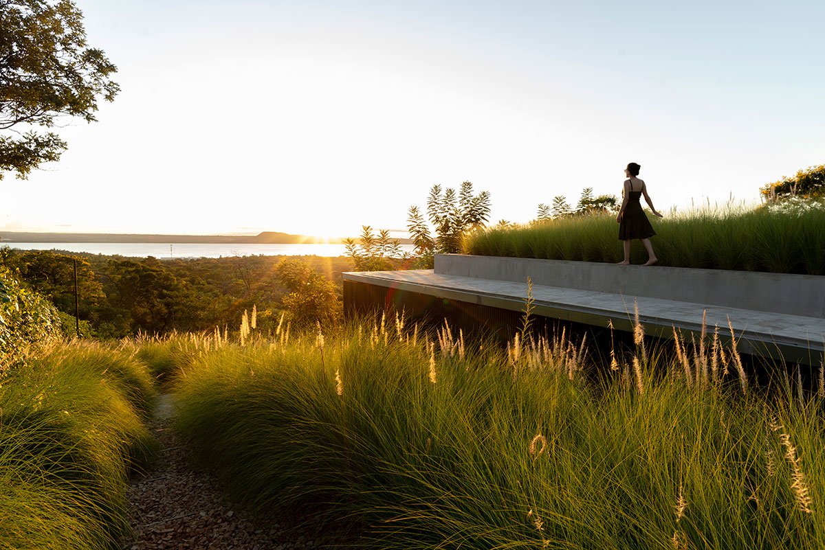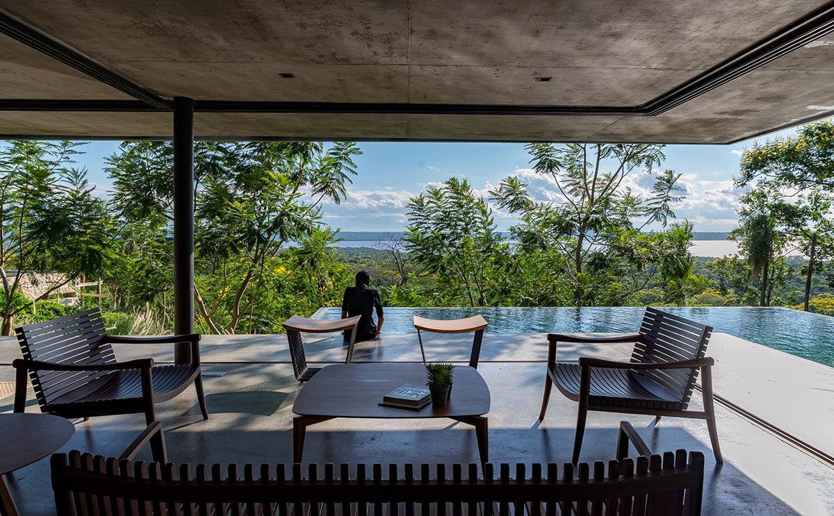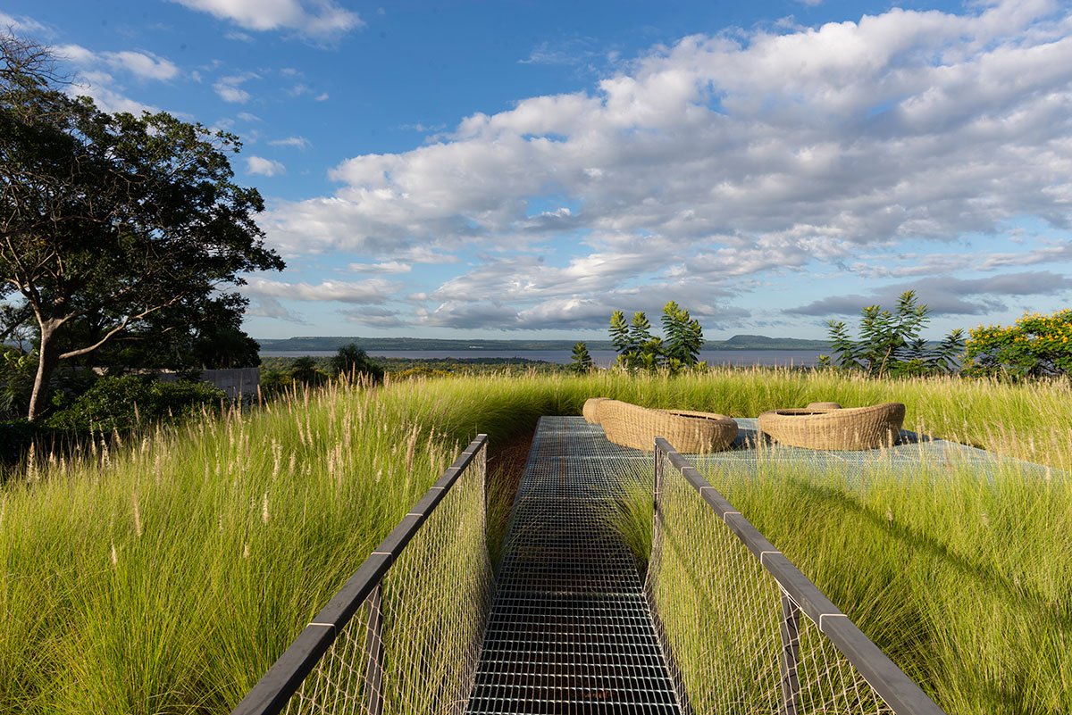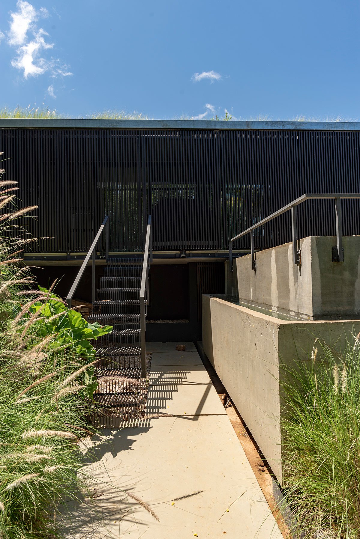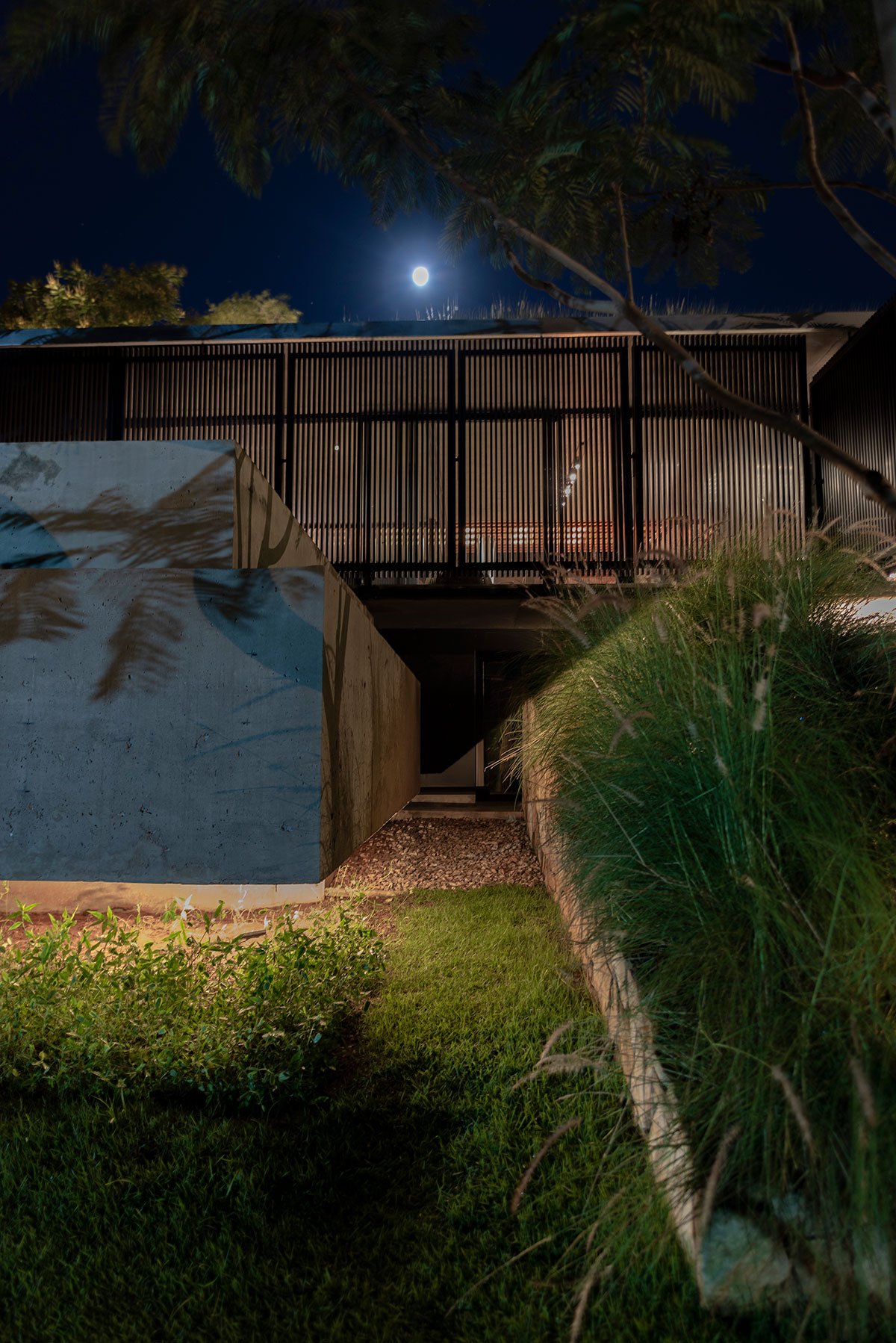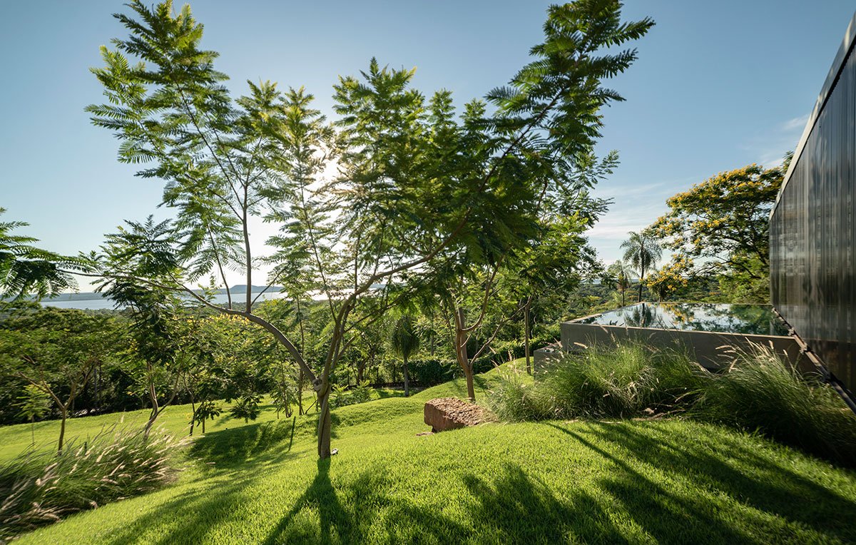 This formation, structured and modulated, is wrapped in vertical planes that allow a space that can be dressed and undressed; a house that shelters, opening and closing towards the outside. A reconceptualization of the 360° gallery, the endearing “jeré” corridor, typical of the Paraguayan culture, a passage that defines the interior-exterior connection through the dimness and intermediate spaces. This composition is topped off with a green coverage that, besides reinforcing the thermal isolation, generates a new space that acts as a lookout, exploiting most of the impotent views that the site offers.