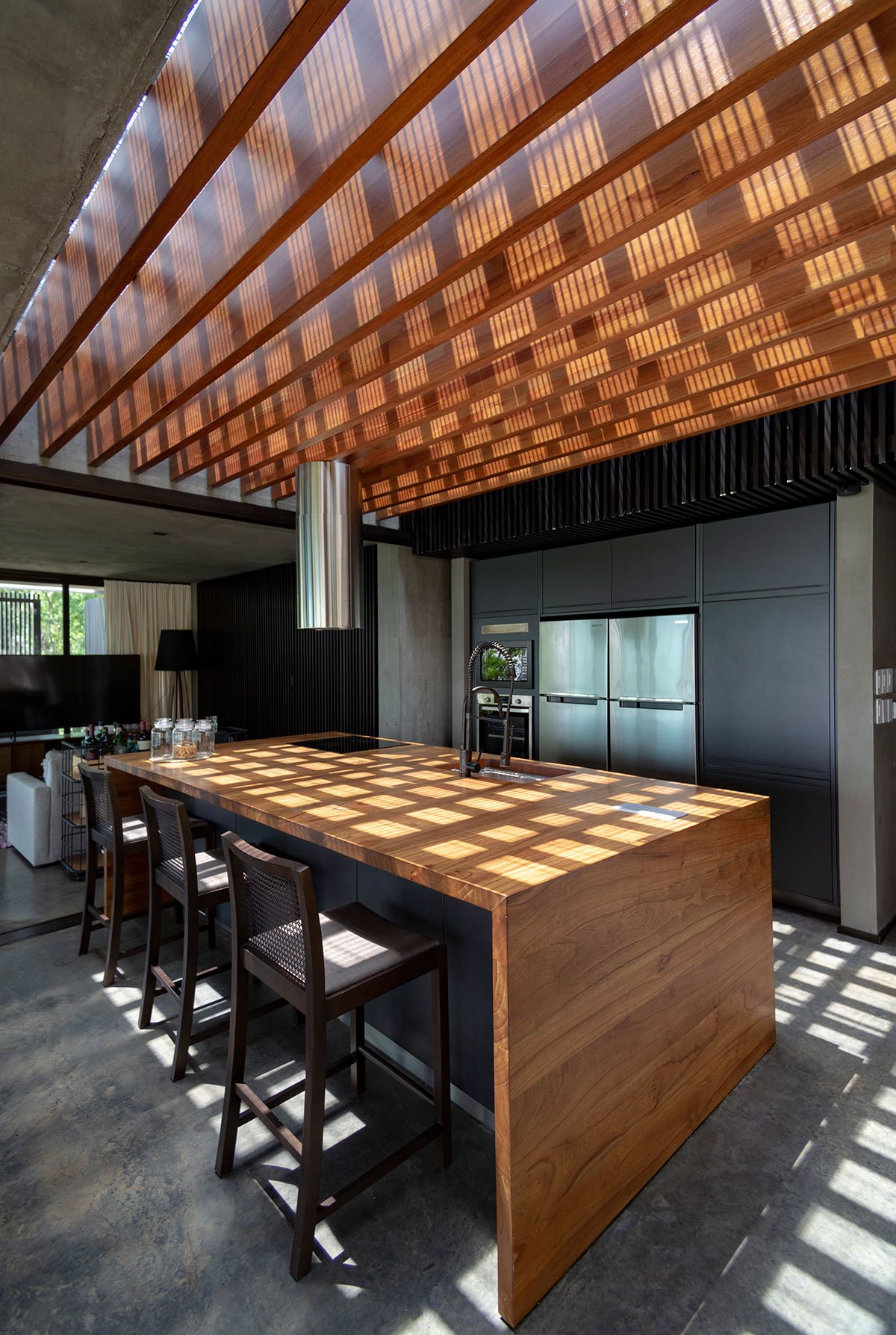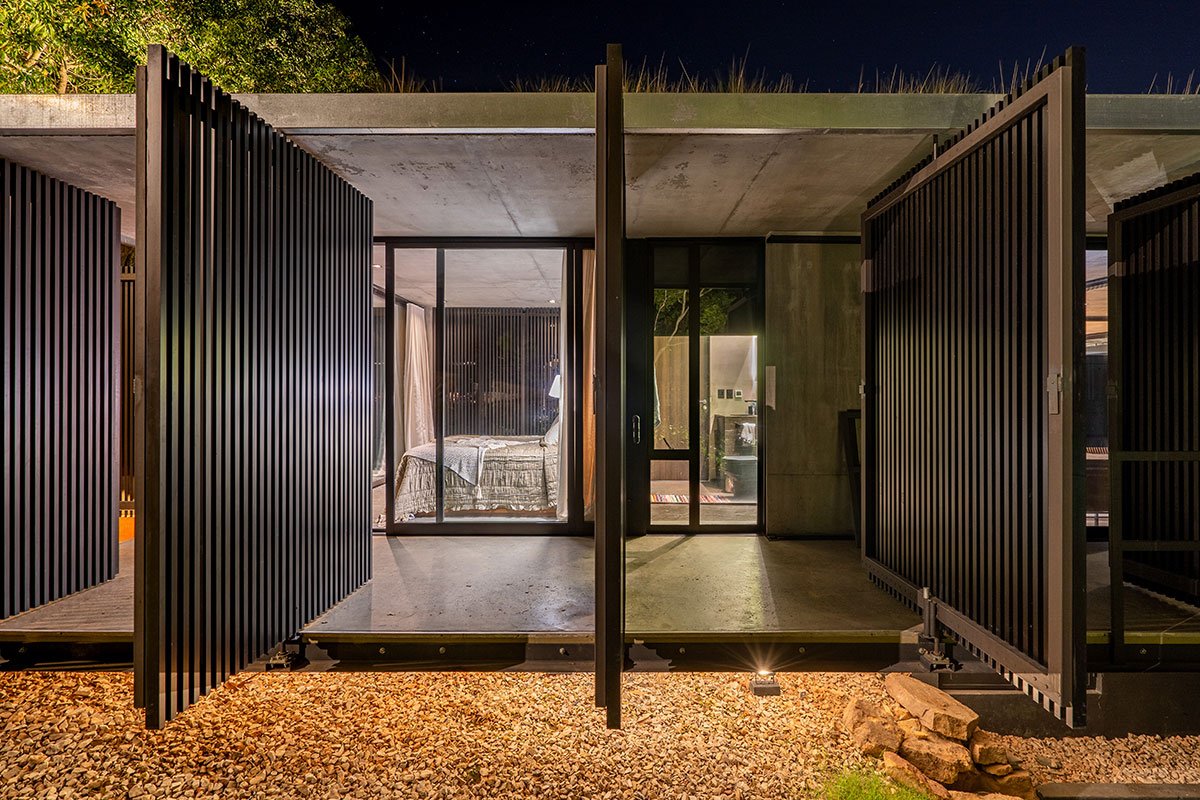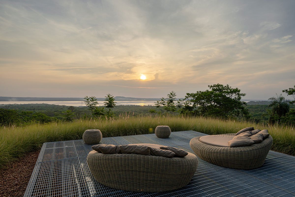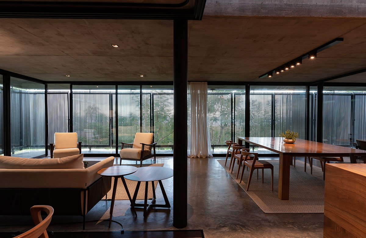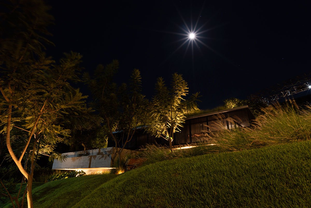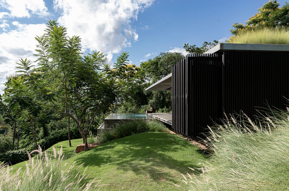 This formation, structured and modulated, is wrapped in vertical planes that allow a space that can be dressed and undressed; a house that shelters, opening and closing towards the outside. A reconceptualization of the 360° gallery, the endearing “jeré” corridor, typical of the Paraguayan culture, a passage that defines the interior-exterior connection through the dimness and intermediate spaces. This composition is topped off with a green coverage that, besides reinforcing the thermal isolation, generates a new space that acts as a lookout, exploiting most of the impotent views that the site offers.