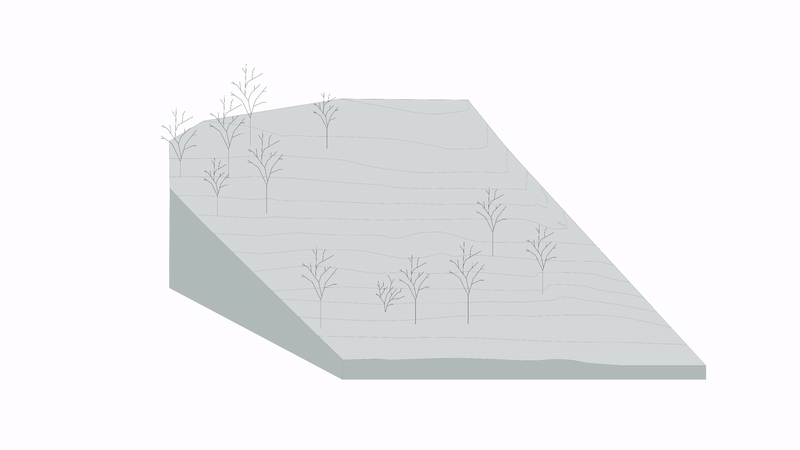 The intention is to intervene in the land the least as possible. The house, made almost entirely of concrete, floats over the ground. The downhill topography of the land goes diagonally so it is dugged in a corner where the house is buried, while the pool is laid in the other corner. This semi-burial of the house allows the perspective of the passerby that walks on the street to be respected, a visual continuity. The view is democratized, it belongs to no one but everyone; we don’t appropriate it, we just admire it together.