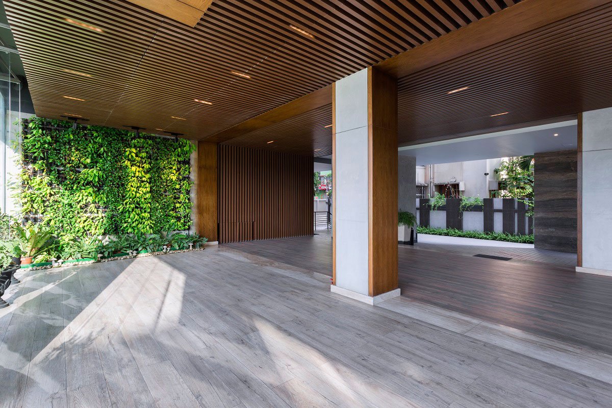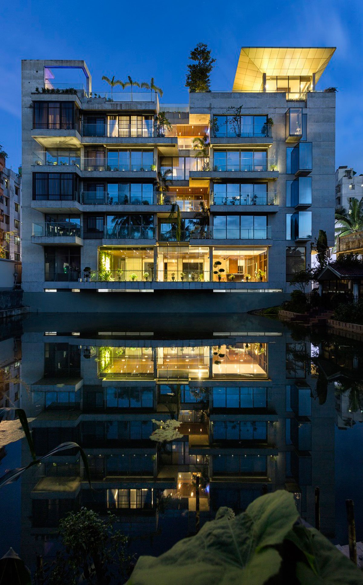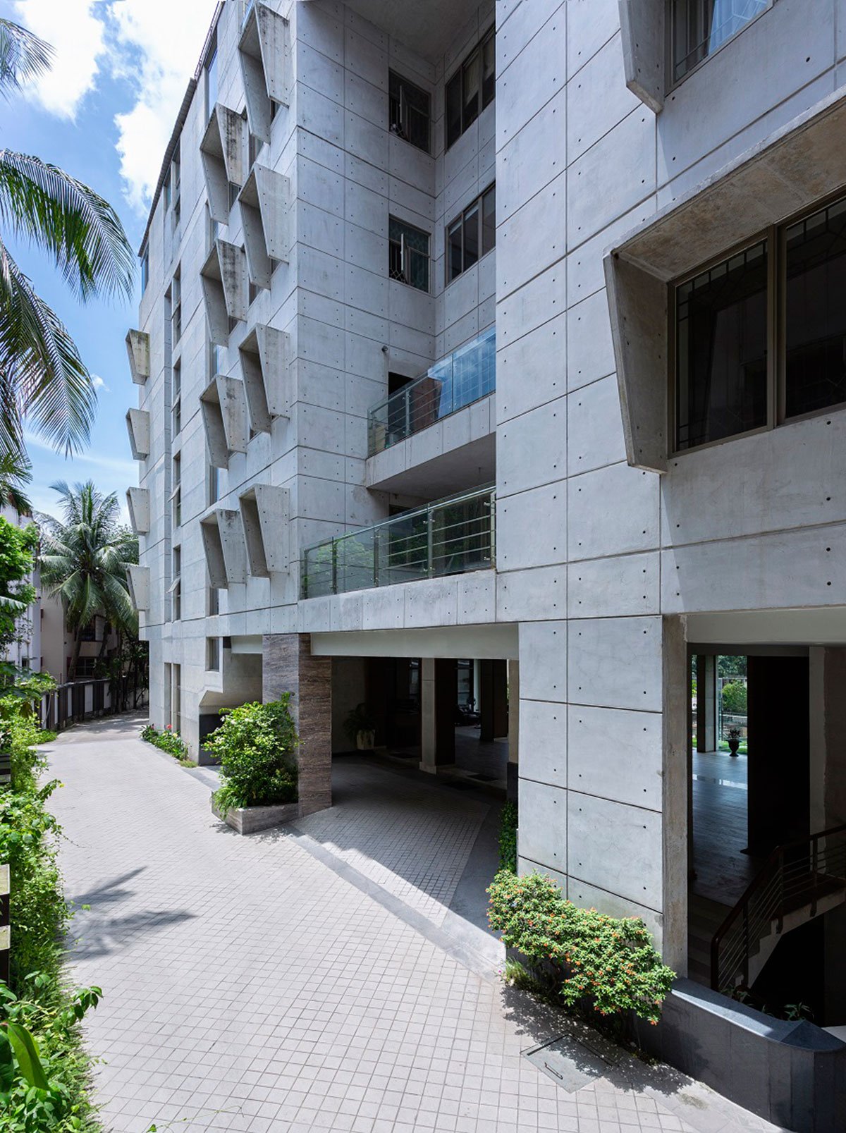Throughout the building there is a beautiful separation and transition of public, semi-public and private spaces starting from ground floor to roof. Also in space quality such as open, semi-open and covered spaces in both building wise and floor wise.