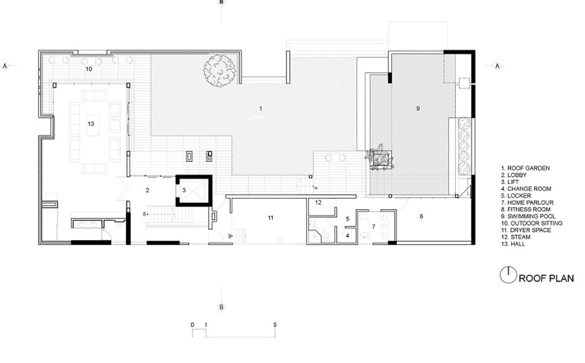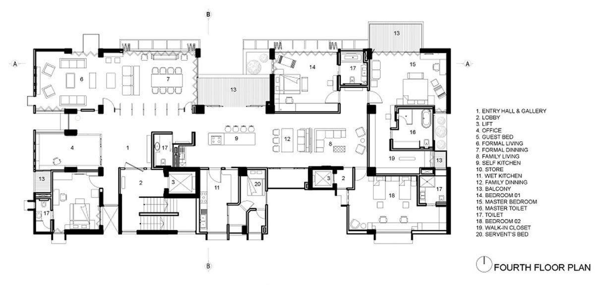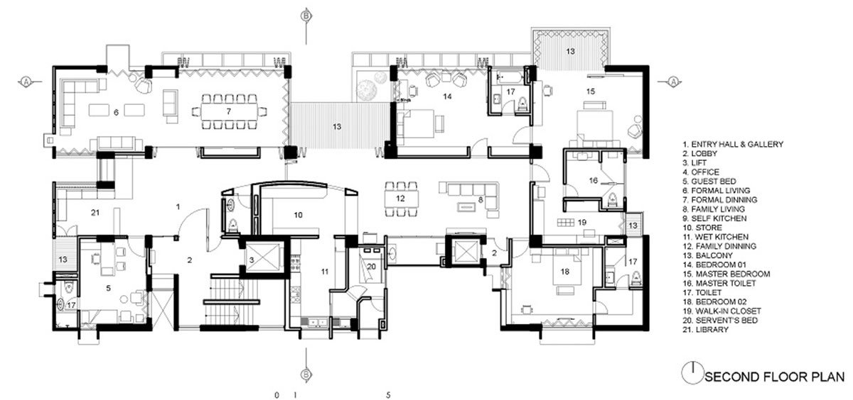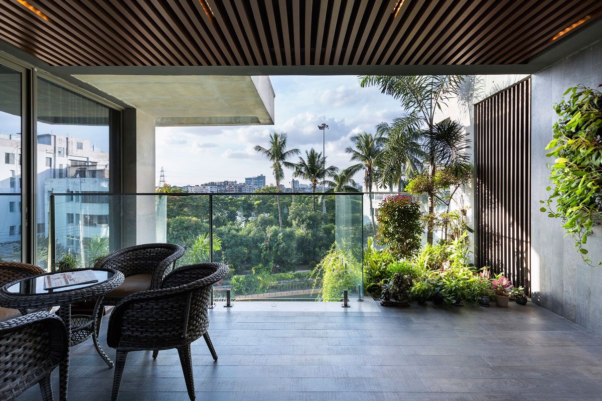 Throughout the building there is a beautiful separation and transition of public, semi-public and private spaces starting from ground floor to roof. Also in space quality such as open, semi-open and covered spaces in both building wise and floor wise.