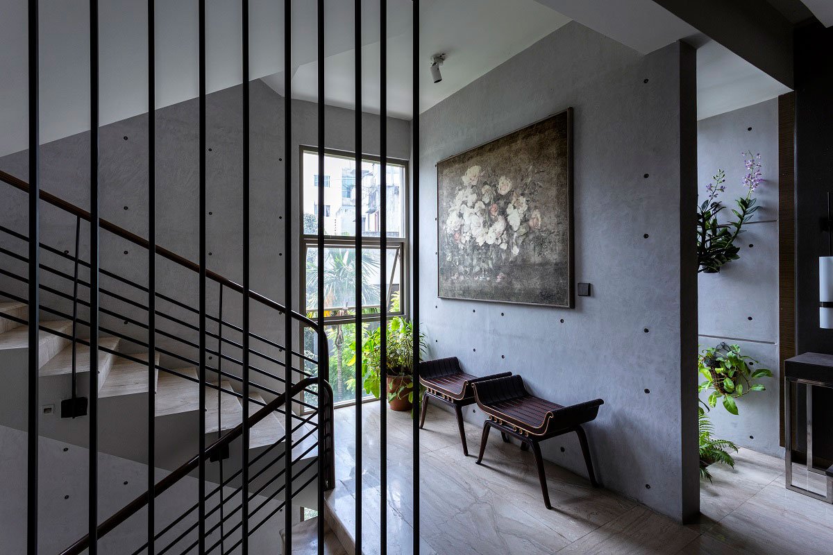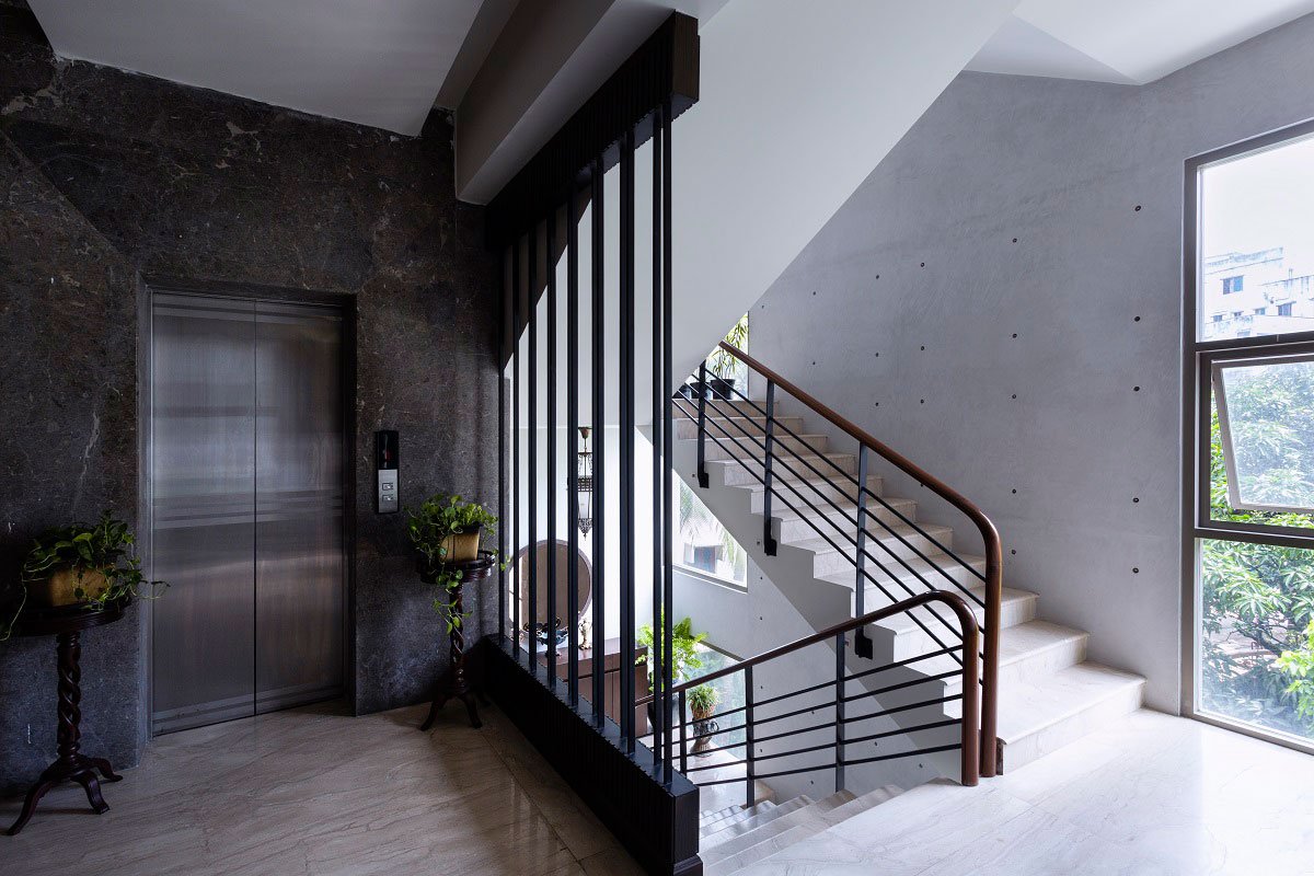 Hosne Aziz Villa is a multi-family dwelling unit containing four separate families of their own generations. Throughout the design process, their basic principle/value and the relationship amongst individual family members inspired us to regenerate the idea of long lasting regional expression mentioned above and to transform it into this building. So basically it’s a vertical impression of the traditional village joint family house format.