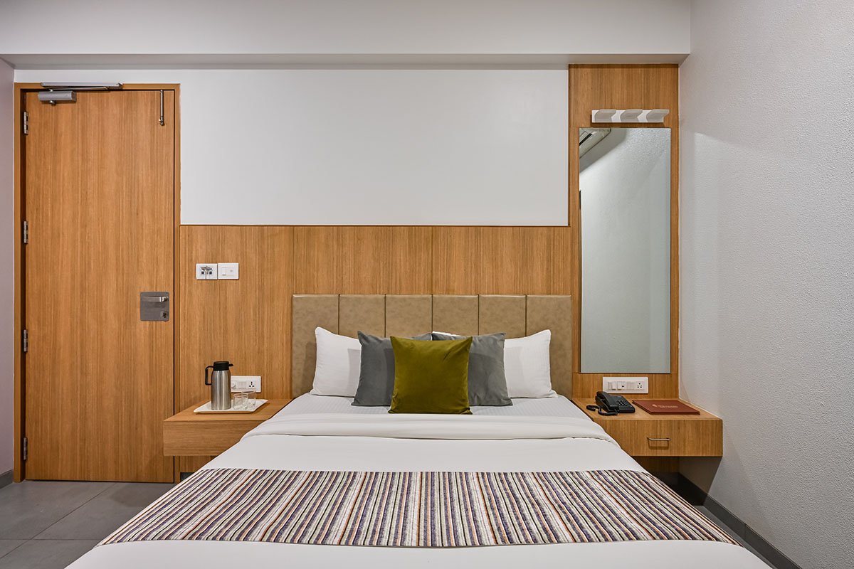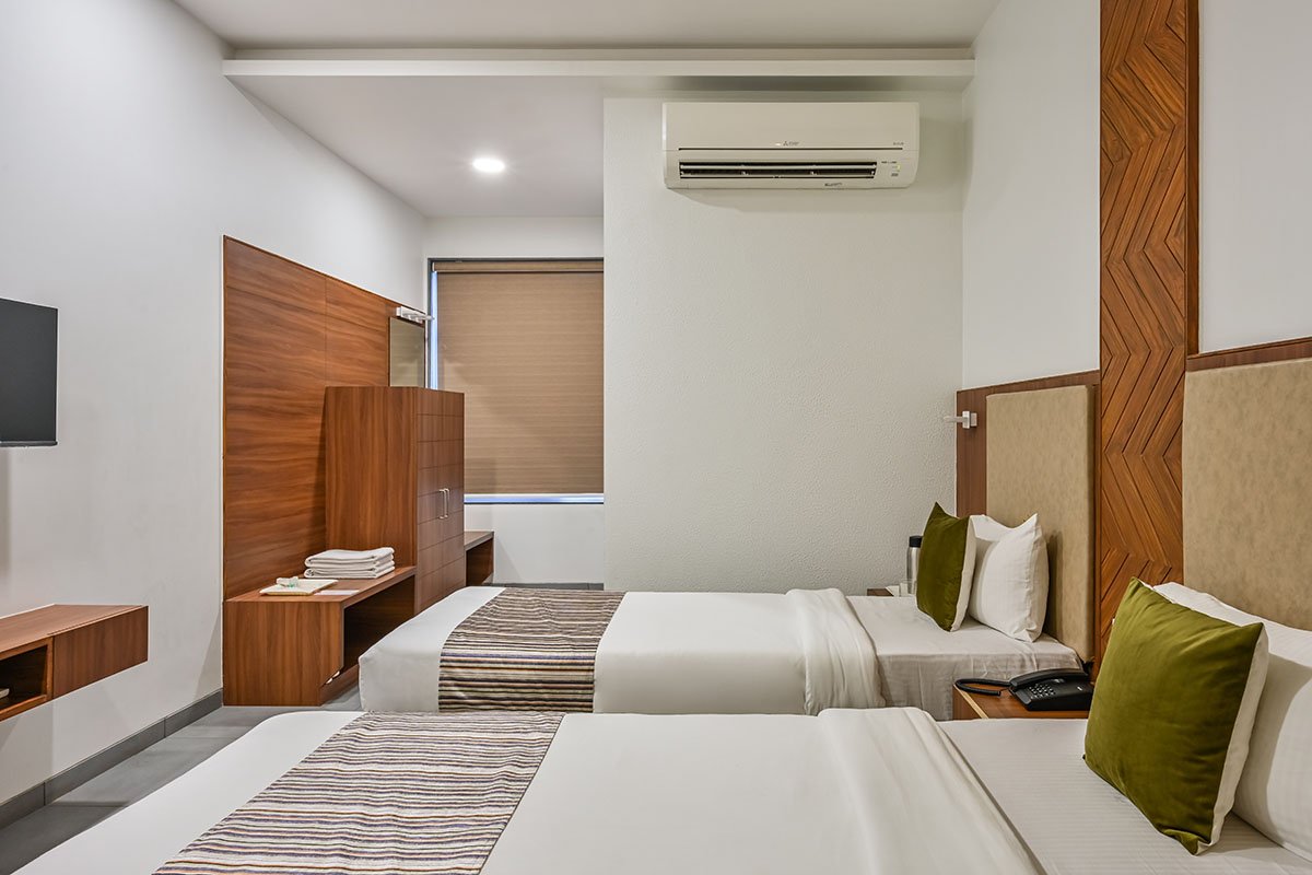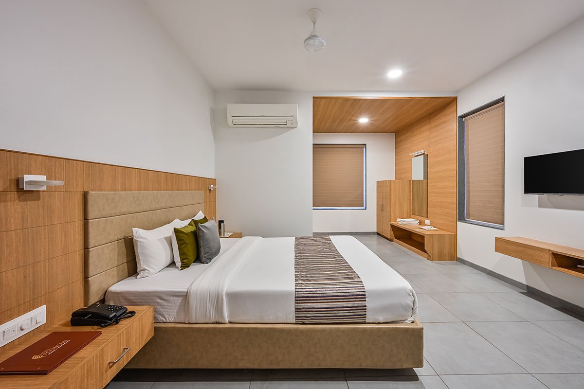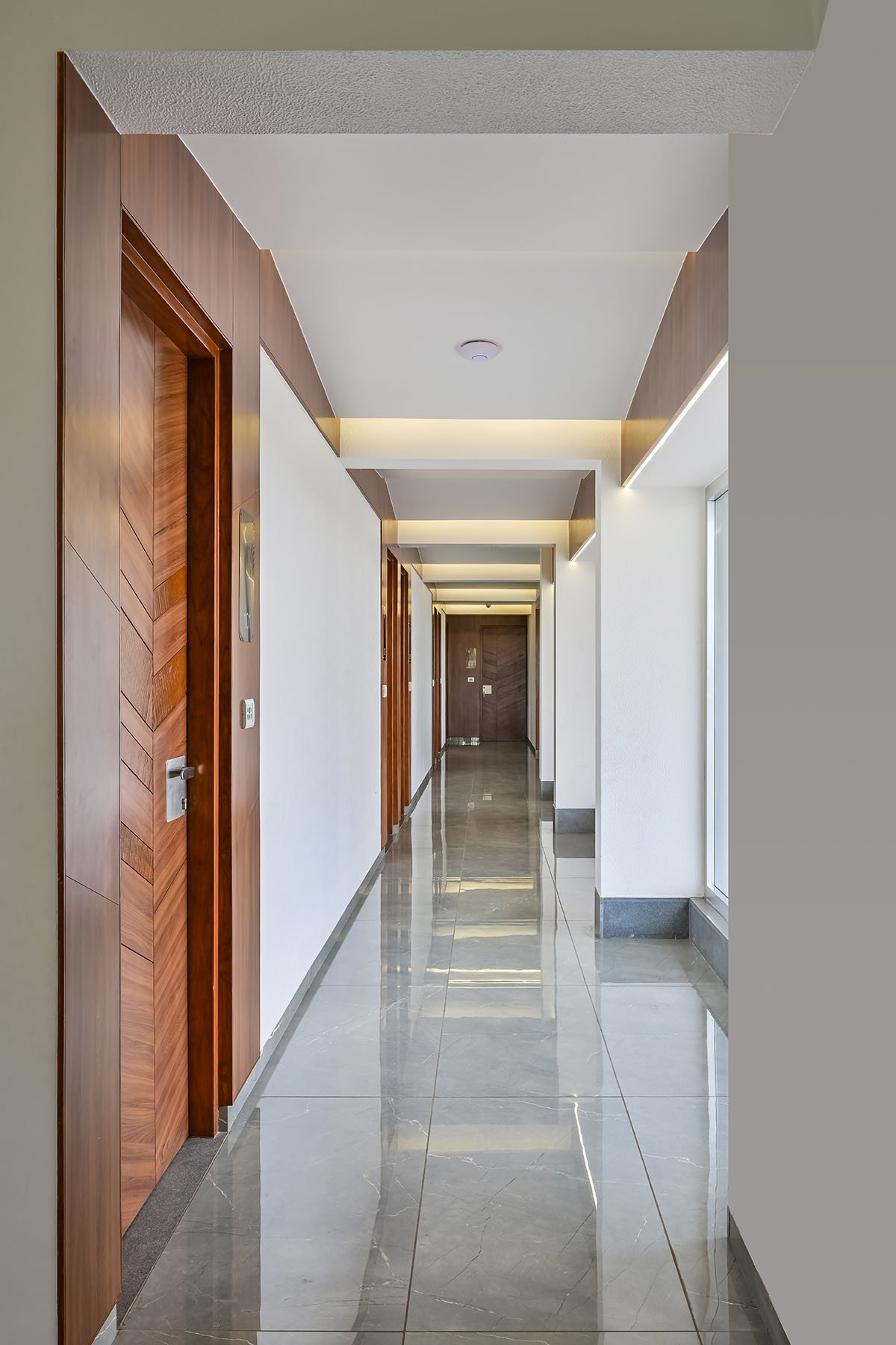 Keeping the user in mind the client wanted to keep it minimal. The rooms are an extension of minimal concept and take it a notch further in terms of usability and practicality. The concept further adds space and the herringbone engineered wood panels and different pops of wood texture in the rooms bring a sense of luxury to the rooms.