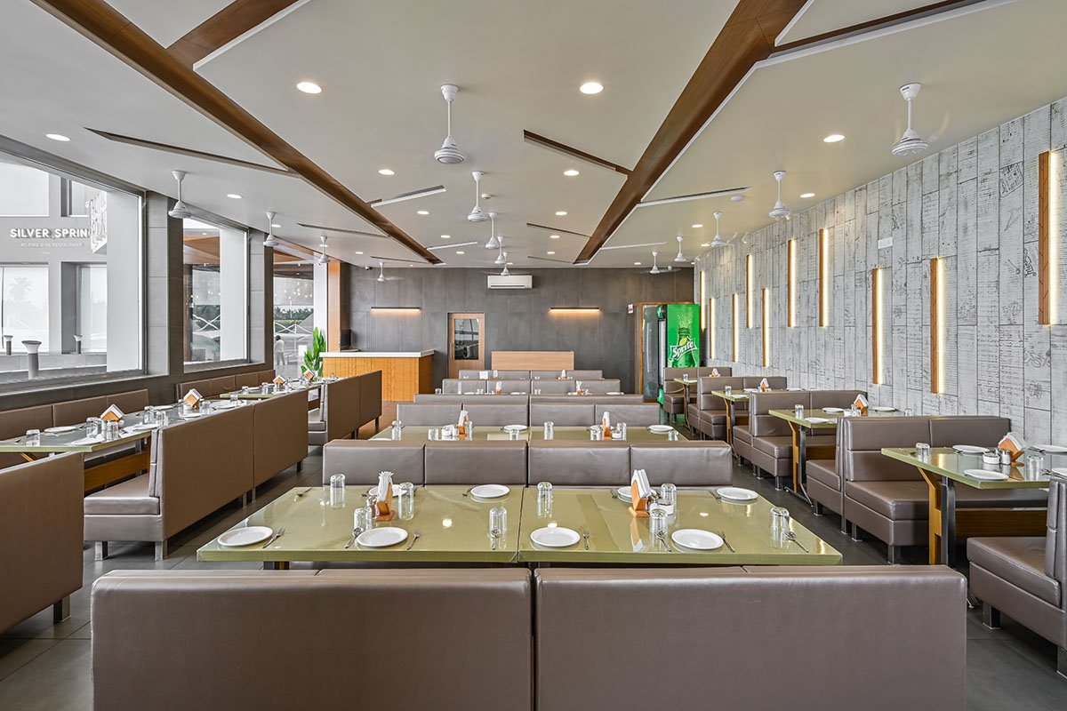 [Text as submitted by architect] Hotel fountain is located near Surat city on Ahmedabad-Mumbai national highway, the central idea governing the restaurant’s design was originated from the legacy of the client that is the cheliya group who is in the hotel business for a long time. The design was intended to meet the requirements of tourists, business meetings, and for a wedding function. So the designer has created an ambiance that reflects a lavish and opulent language yet contemporary arrangements of modern elements.
