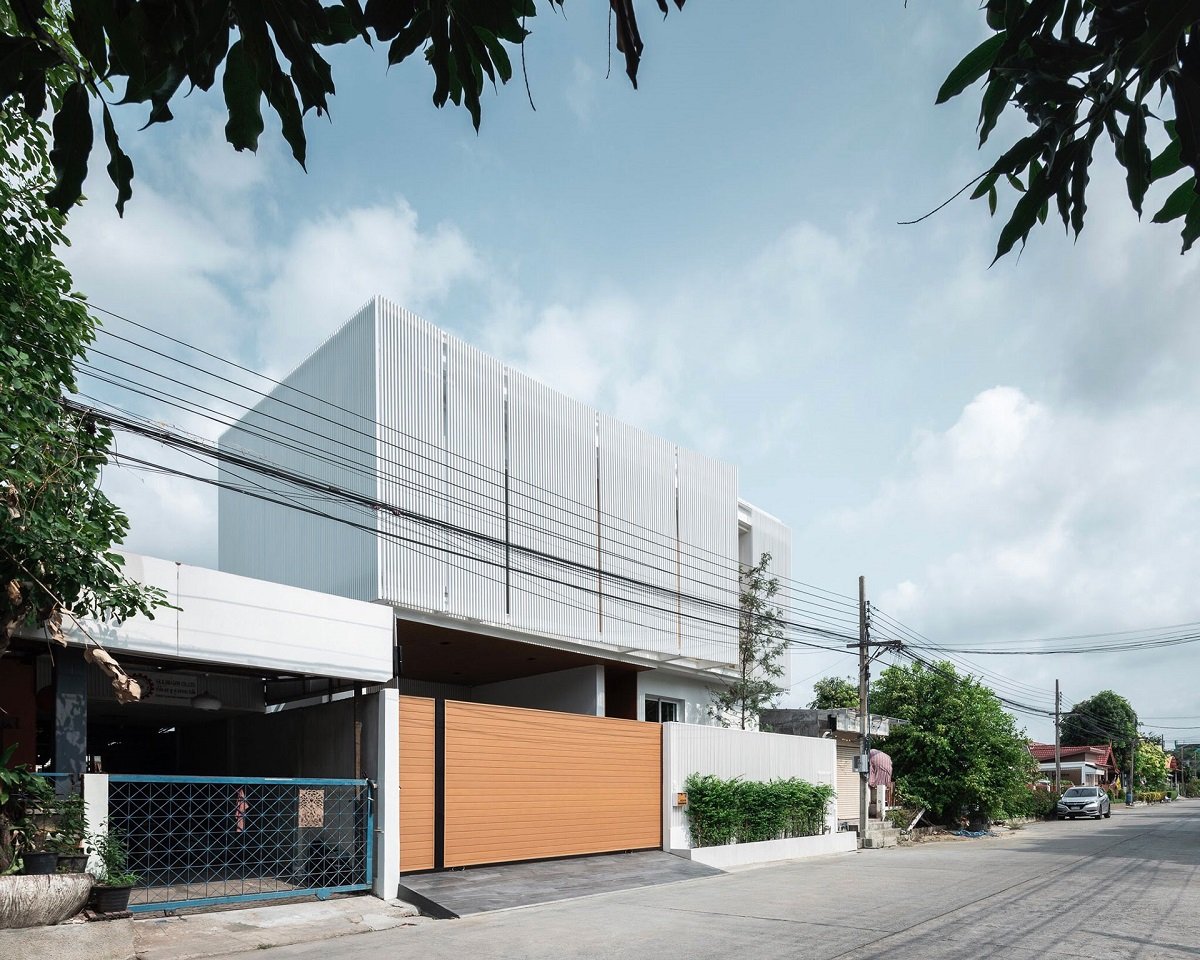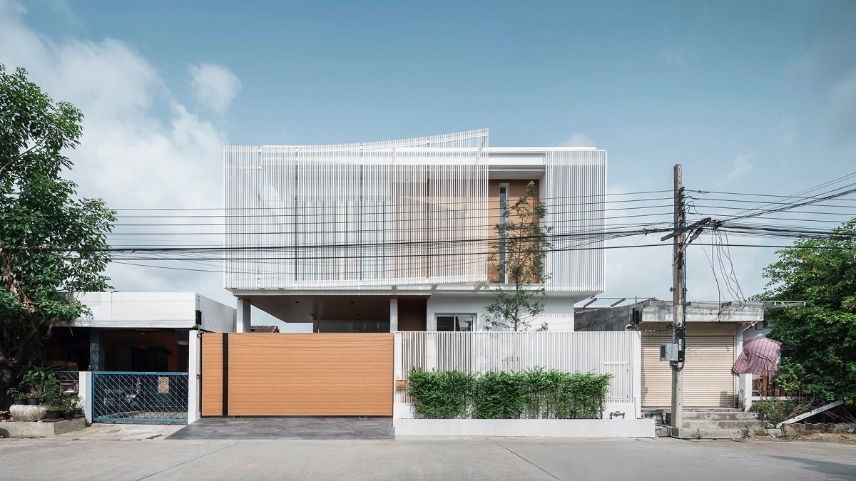 As a further matter, climate concern is another key design for this small house. Heat avoidance elements on two sides are created. The first one is ‘Bending shading device’ which is provided at the front part of the house. It helps reduce heat and create more privacy to the 2nd floor bedroom. Staircase is at the South side, which helps blocking heat for living area. Moreover, the trees are planted along this South side. Durable materials are used such as aluminum trellis together with substituted material which is wood plastic composite (WPC) instead of using an authentic one, in order to lower maintenance.