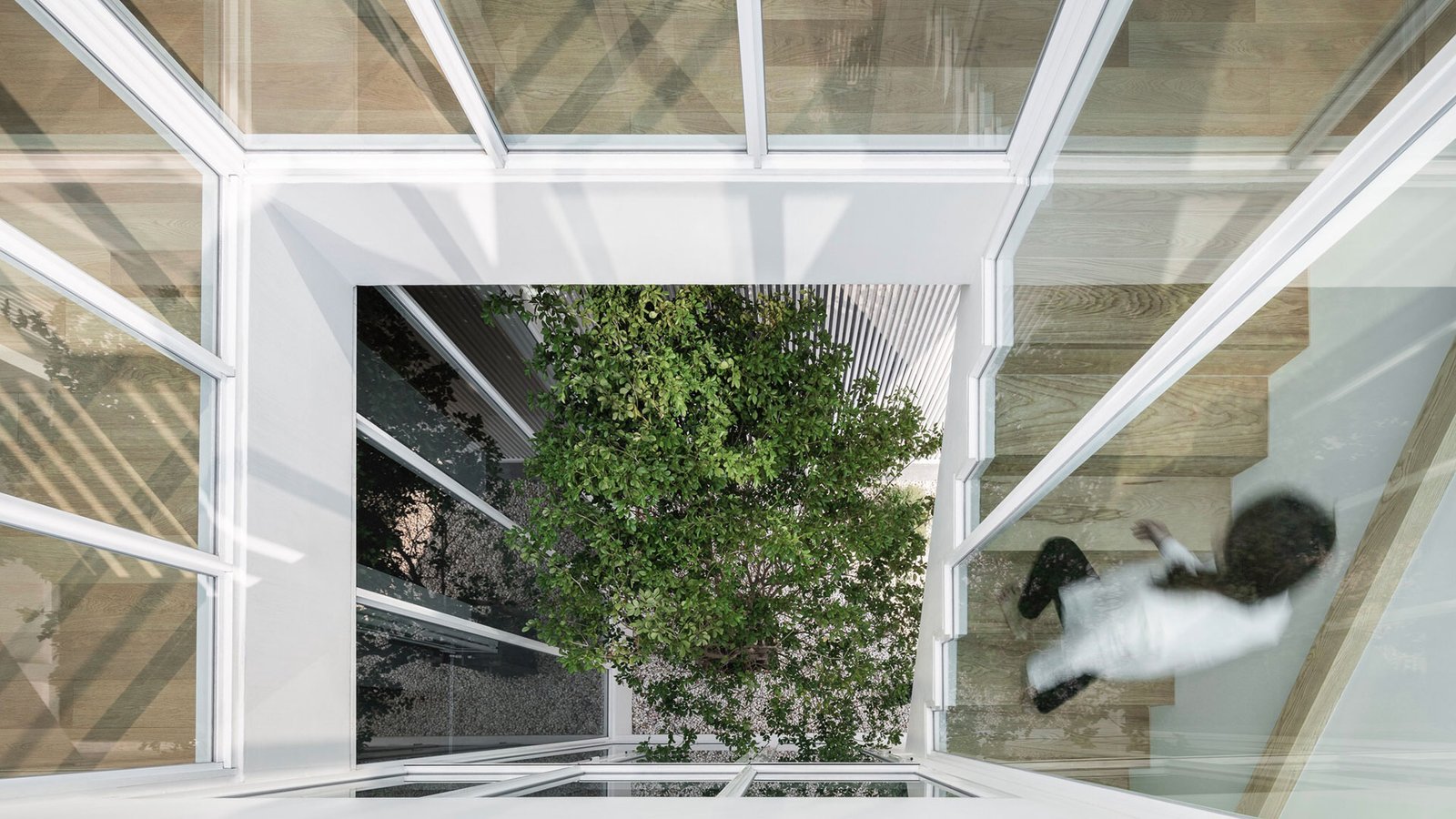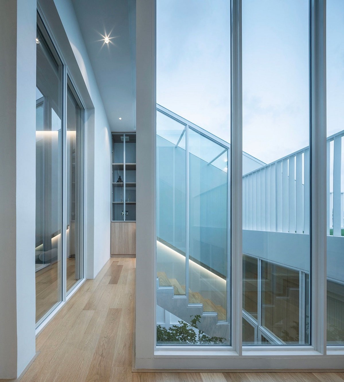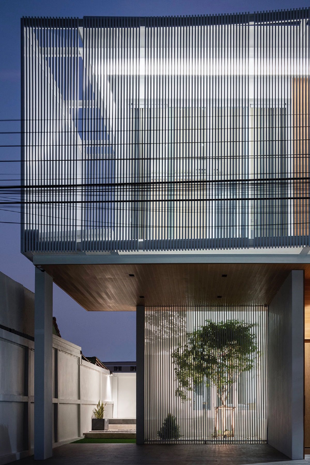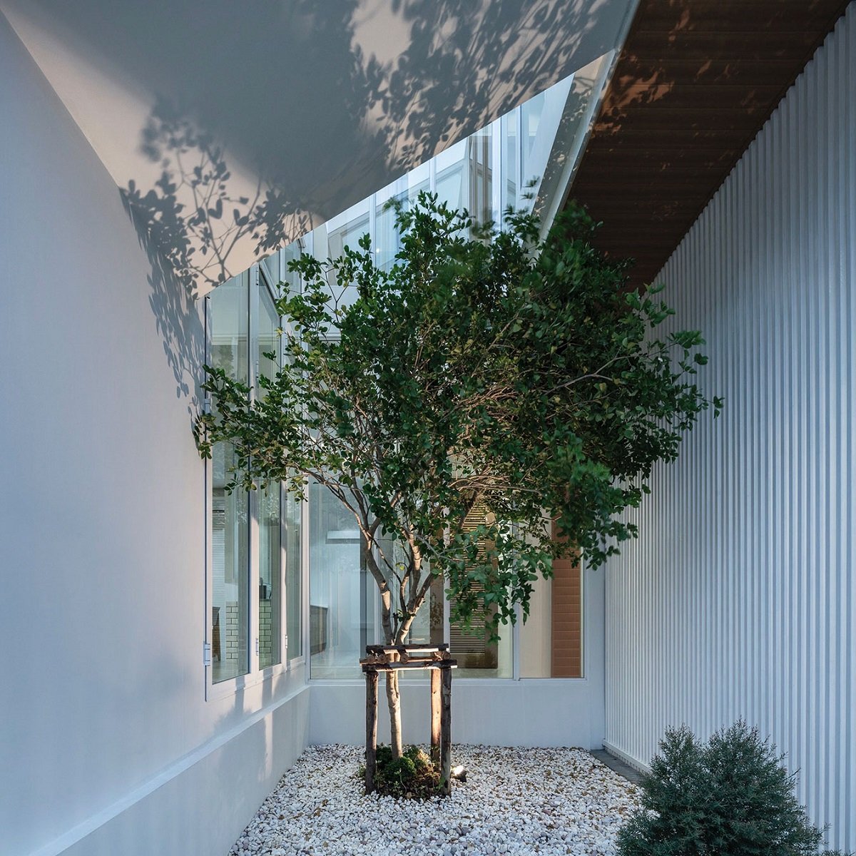 Excerpt: House Enfold, designed by TOUCH Architect, has a bending linear massing to create the most efficient space with less circulation area. In massing design, two l-shape blocks intertwine together; one is stacking up on another. This creates void space between the two used for a green area. In other words, the tree is enfolded by the house.