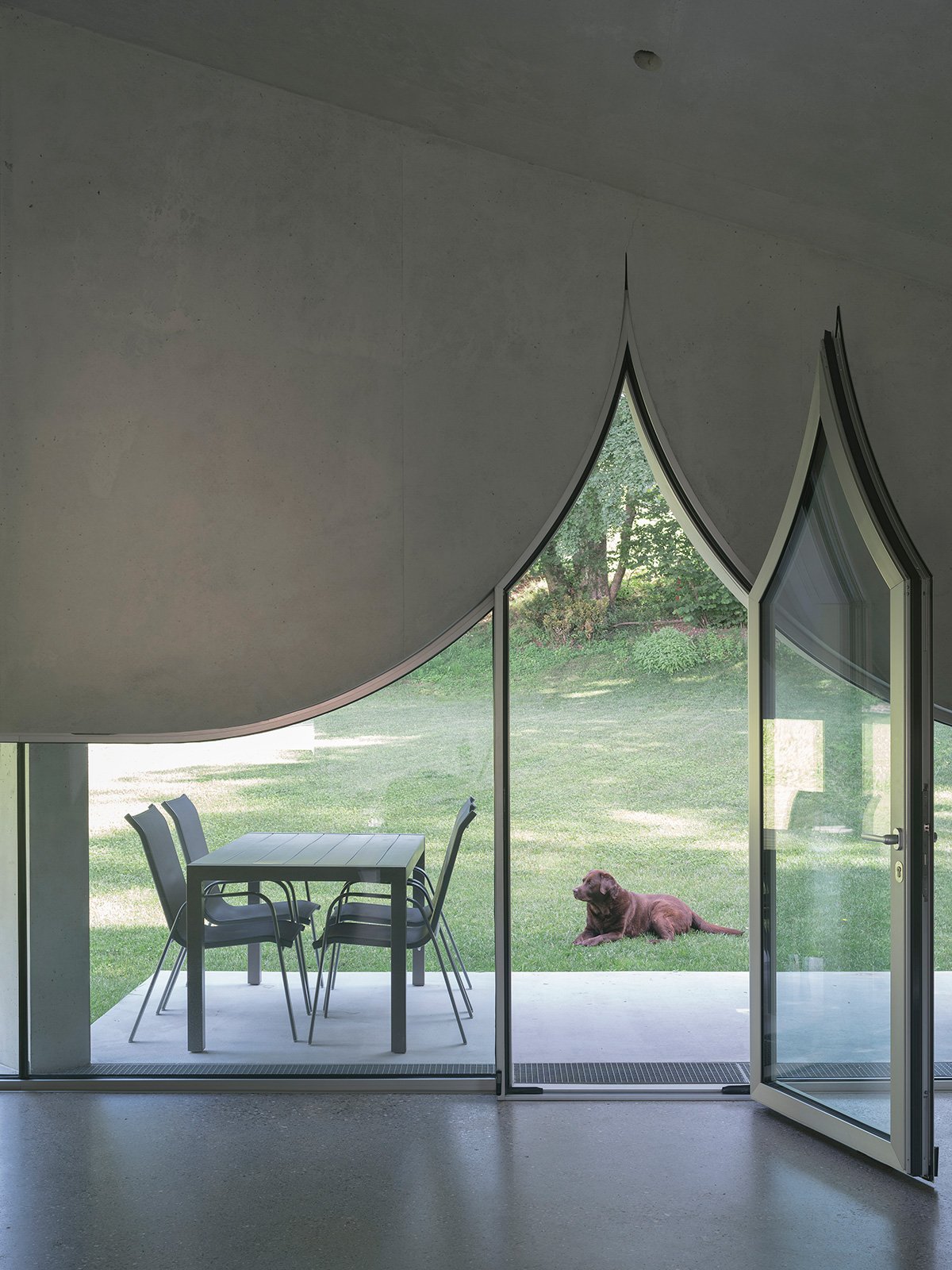 [Text as submitted by architect] In the heart of the Tremona district, in the municipality of Mendrisio, a steep terrain provides the opportunity for a powerful architectural gesture. Here, a single-family home rises like a concrete monolith from the ground, blending in with the natural morphology of the soil.
