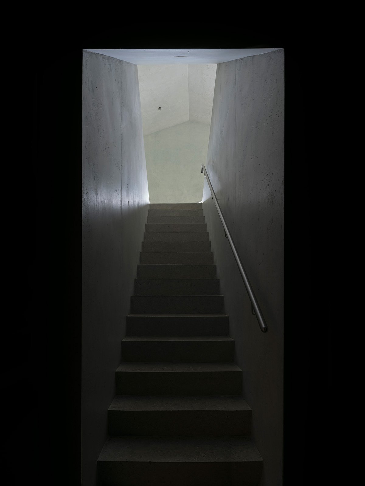 The internal layout is organised around a vertical core: a staircase connecting the three levels which, rather than being a simple functional element, becomes a hinge between depth and lightness, between shadow and light.