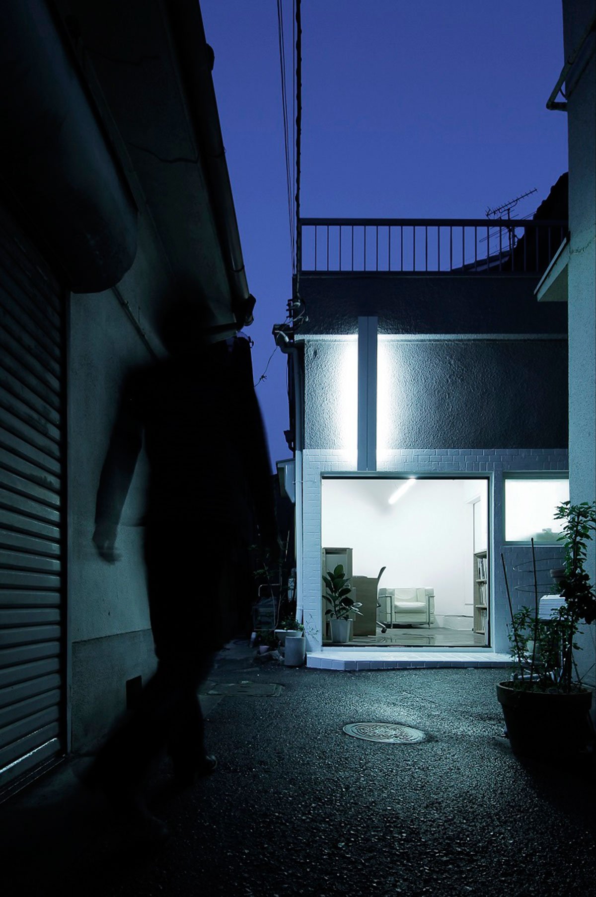 The site is a corner of the back alley leading to the shopping street .This is a renovation project of a wooden house built in 1976. Existing buildings had an office part and residence part. This promiscuous office’ s facade revealed an ugly appearance to the street, furthermore due to the sloppy configuration of the inner rooms, the residence part was showing its age and bad condition.