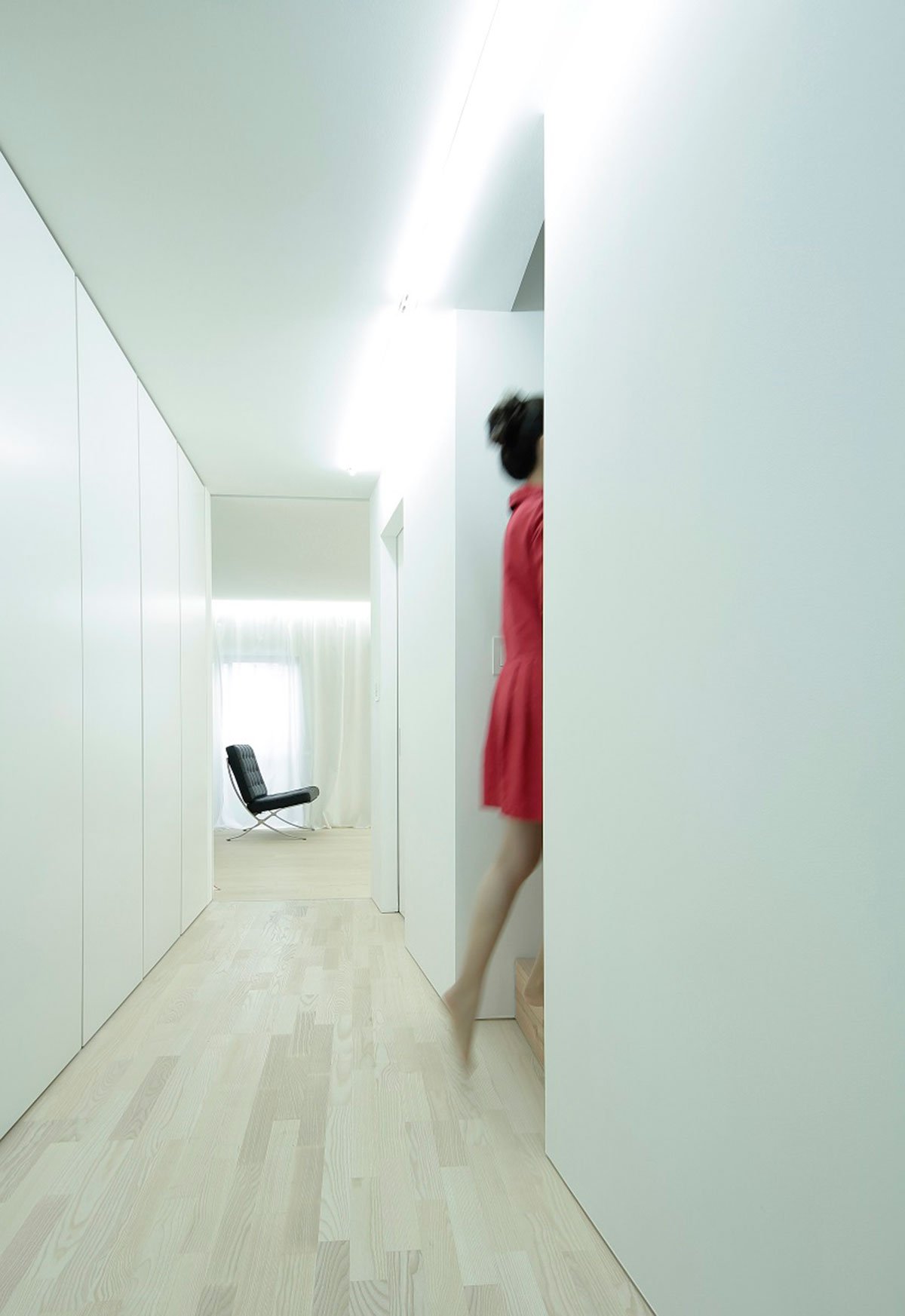Perfection is in the details. The decoration in this House for Installation is a perfect example of Japanese minimalism. Dominant white color, clean forms and an almost poetic symmetry characterize this residence. Yet the trained eye will spot the carefully positioned lighting and beautiful flooring that show style and substance.