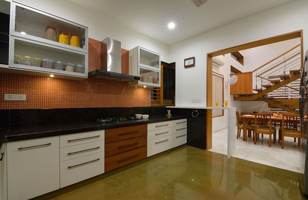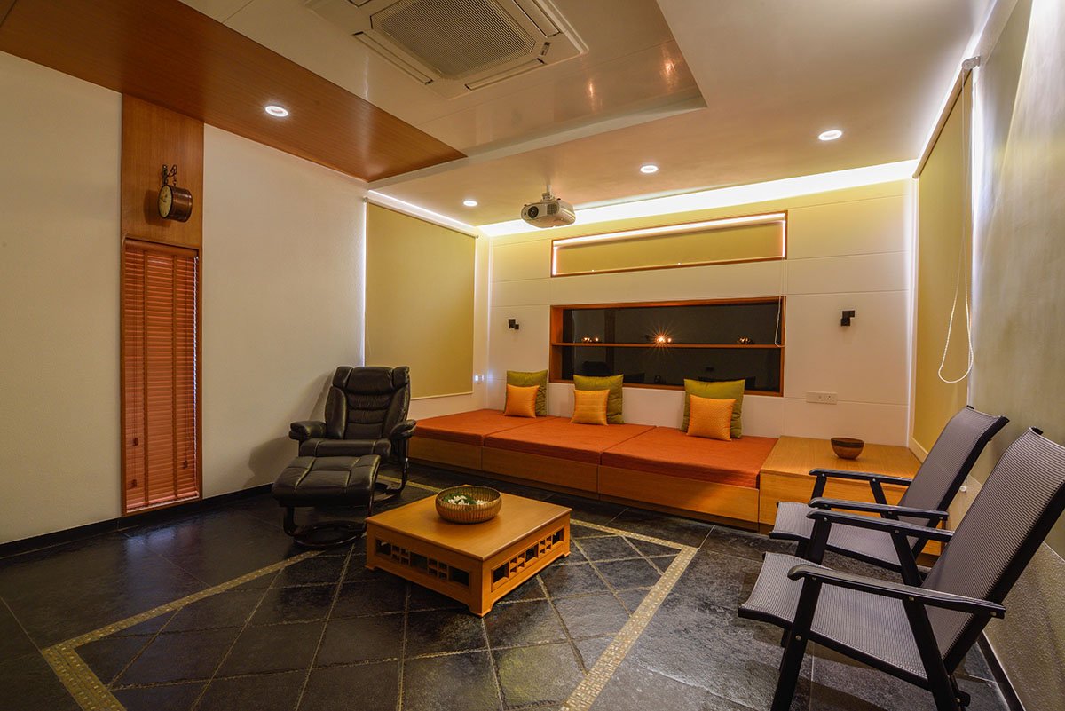 Considering the hot climate of Ahmedabad, the family wanted a structure that could not only withstand the weather but also reduce the heat in some way. For ensuring a cooler climate within the complex, the architects created a cavity wall on the exteriors if the house to trap the warm air within. Keeping this as a focal point of our design we had started designing with the right amount of involvement of vernacular ideologies in the design of the house which as per us can be termed ‘contemporary vernacular’.