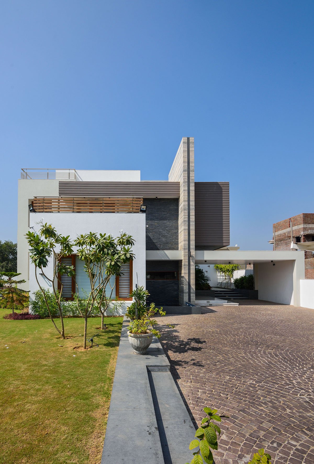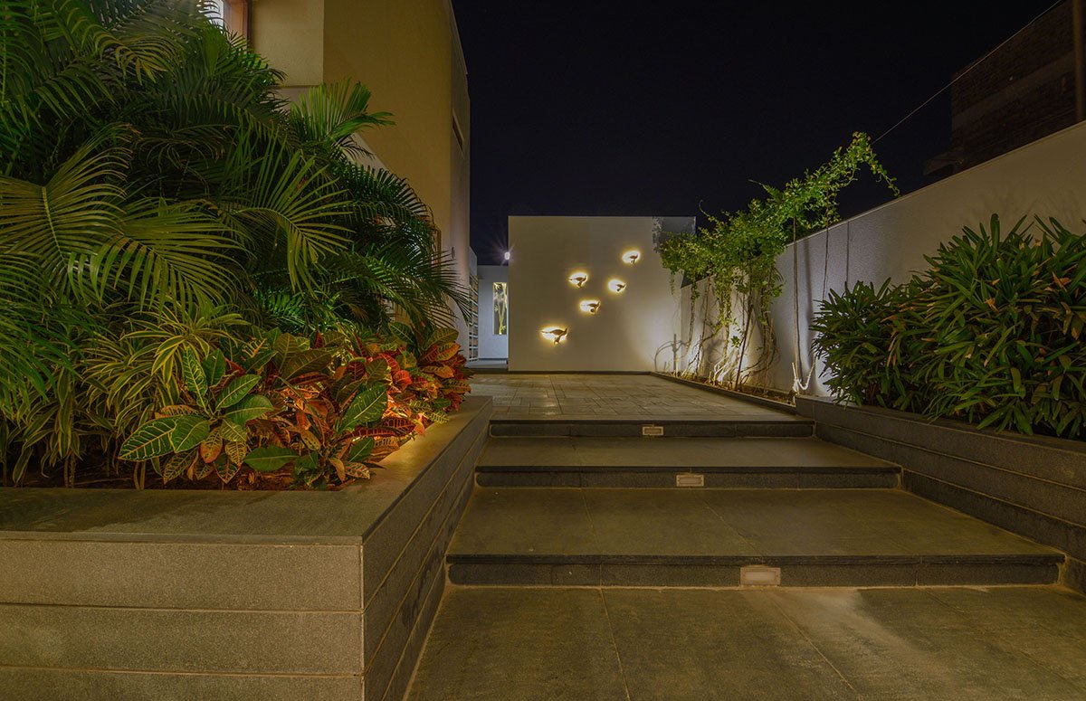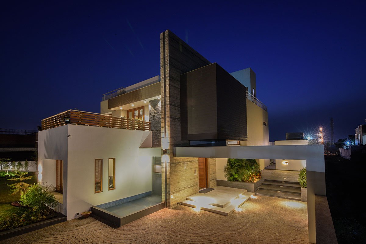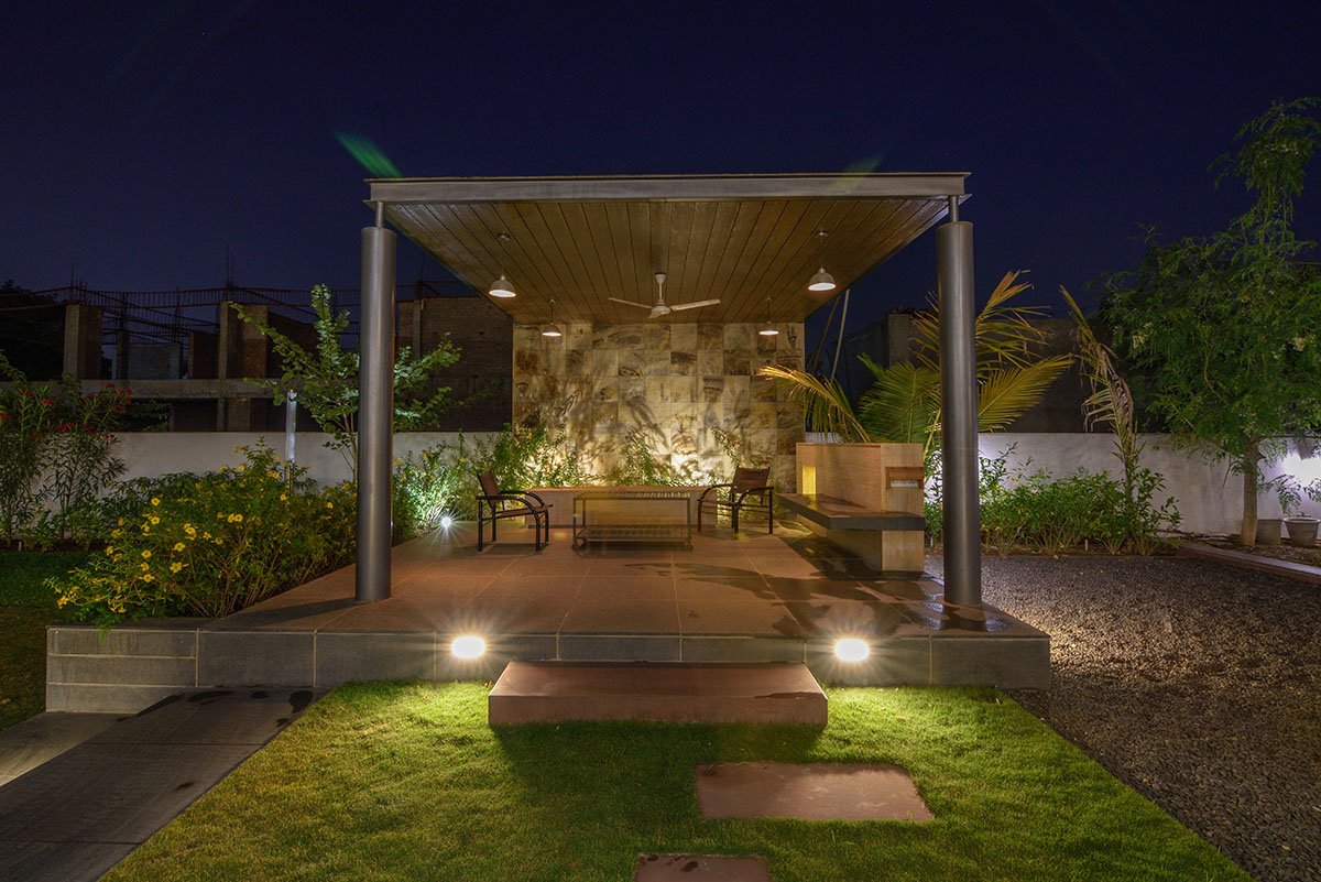 Excerpt: House For Mr. Tejas Patel, designed by Associated Architects Pvt. Ltd., with a key to build the home around nature instead of weaving nature into the home. The owners wanted a home that reflected their spiritual beliefs reflection. One such aspect is the creative intervention of the “swastika” symbol at the vestibule created through lights. The house has been designed with such simple forms, volumes, and masses so that every space within the house creates a story.