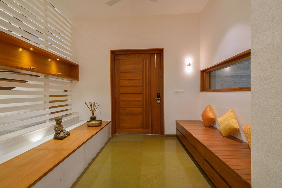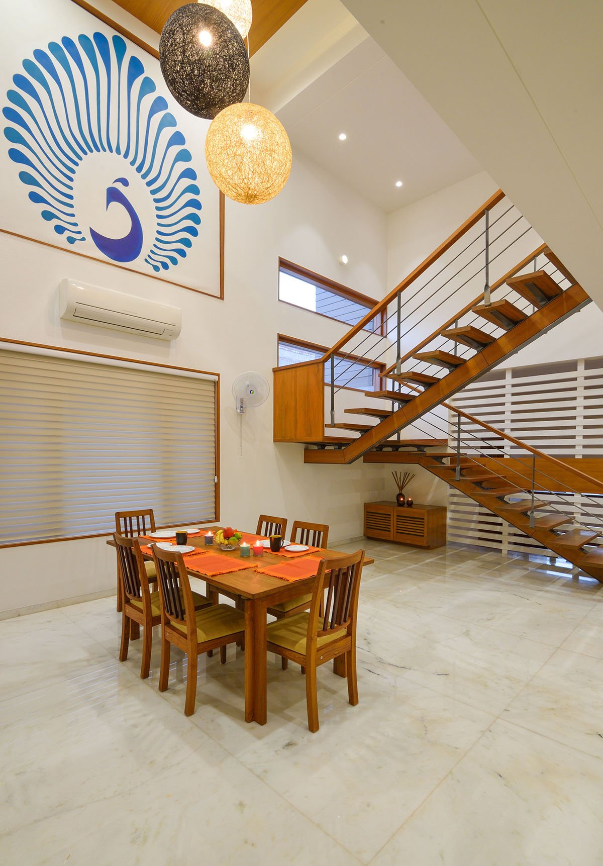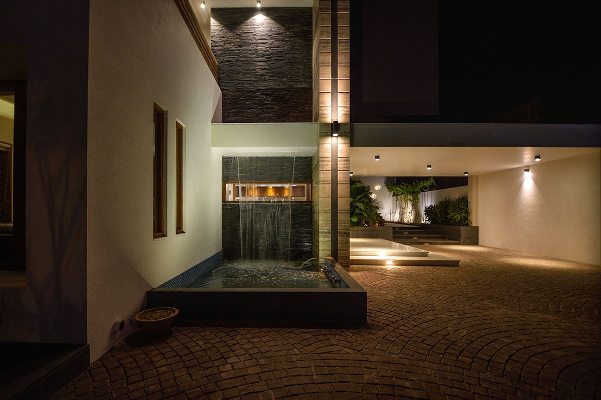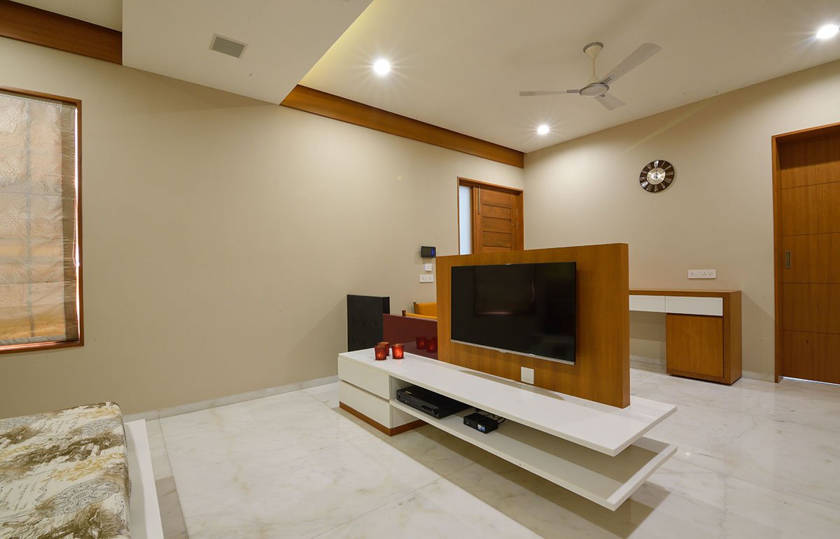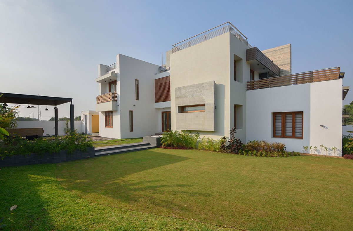 Excerpt: House For Mr. Tejas Patel, designed by Associated Architects Pvt. Ltd., with a key to build the home around nature instead of weaving nature into the home. The owners wanted a home that reflected their spiritual beliefs reflection. One such aspect is the creative intervention of the “swastika” symbol at the vestibule created through lights. The house has been designed with such simple forms, volumes, and masses so that every space within the house creates a story.