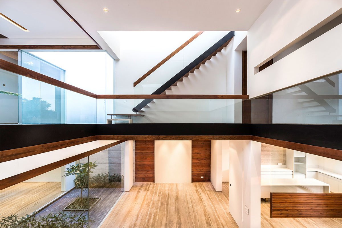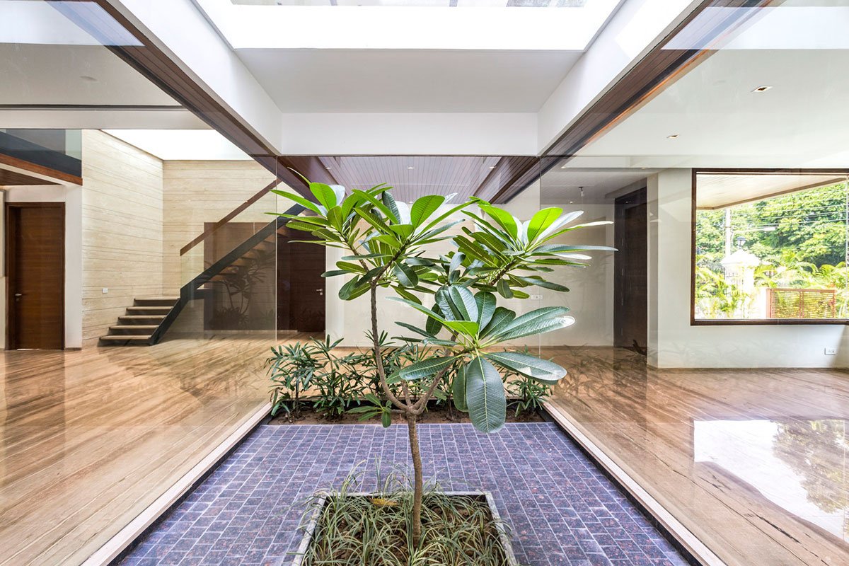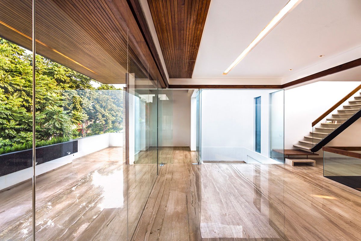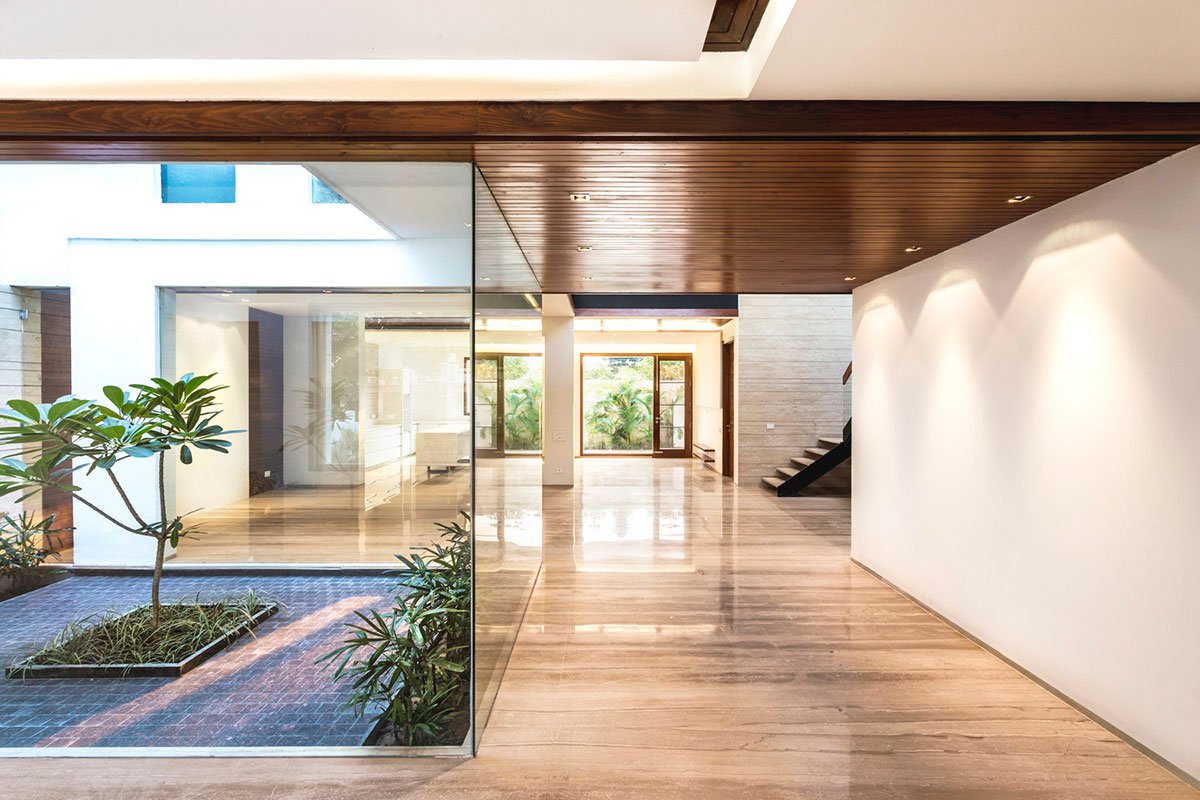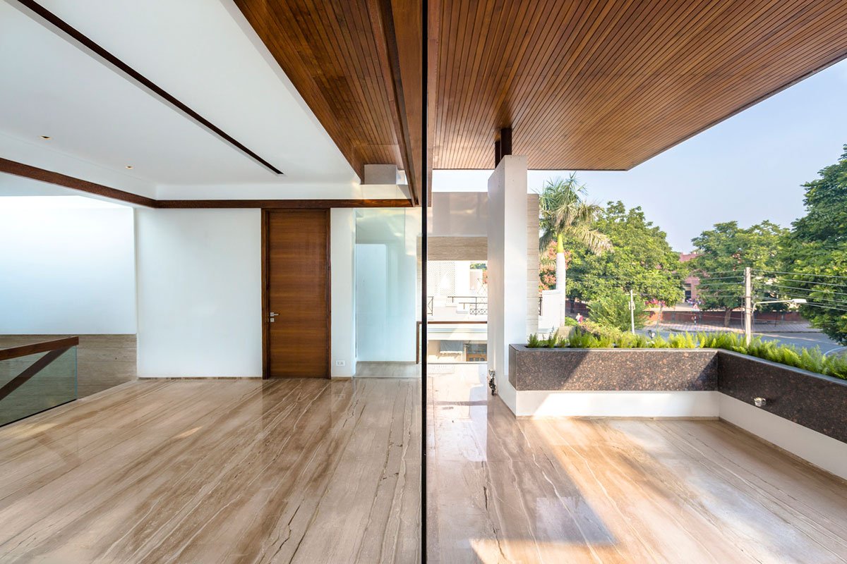 Although, the overall spirit of the space is strongly Indian in character with emphasis on transcendent spaces like the verandahs & covered terraces yet the architectural vocabulary is completely contemporary with a very universal detailing. The interiors were conceived as a space defined by planes turning & intersecting while in some cases carefully sliding over each other.