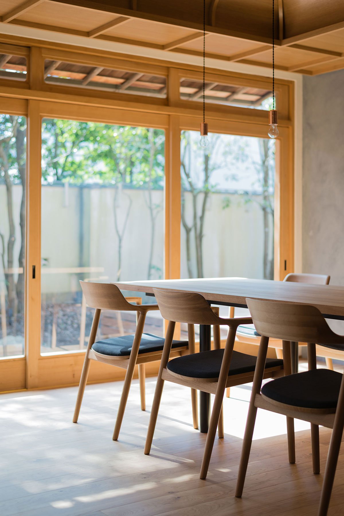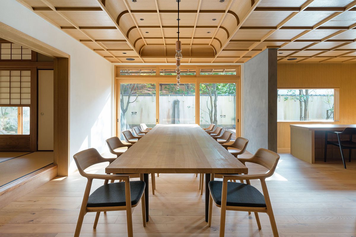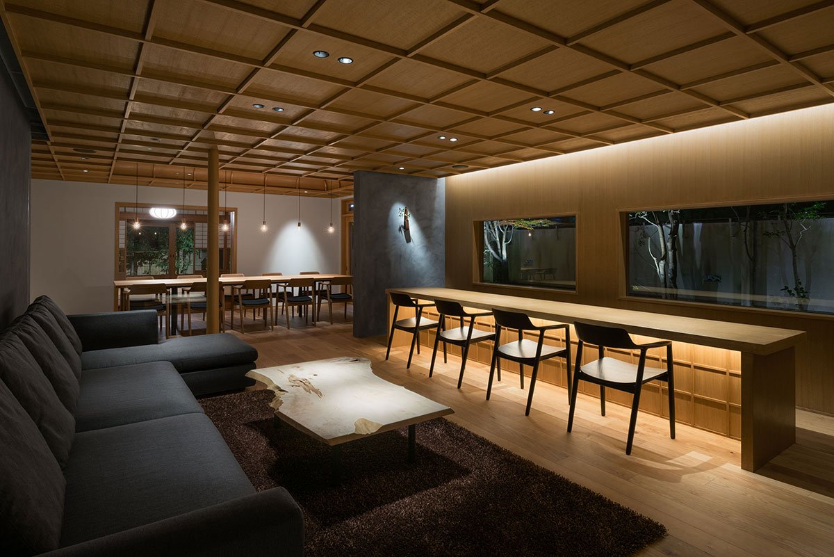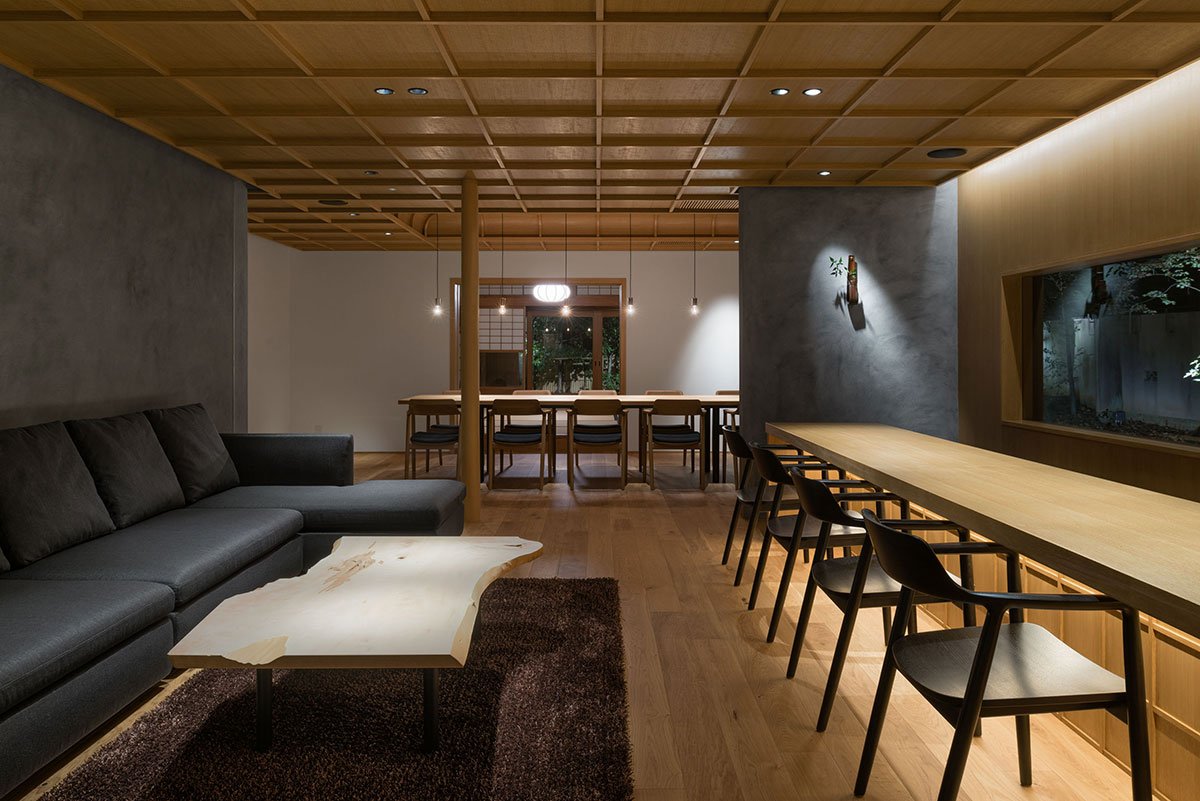 In addition, as requested by the client, the dining room was made to have a big table that can seat ten people, as well as installing counter seats for communication, a sofa space for relaxation, and a terrace for dining in the garden, all of which were designed to welcome geishas and guests. On the second floor, the corridor leading to the master bedroom and the guest room were covered with tatami mats, and from the top of the stairs, one could get a sense of privacy. The aim of this project was to take over the good form of the Japanese house built by the ancestors and give it a form suitable for modern life.