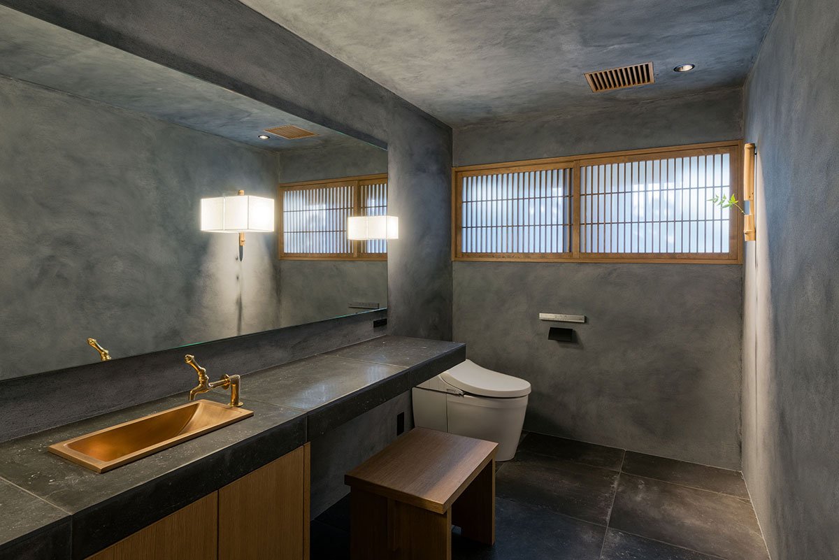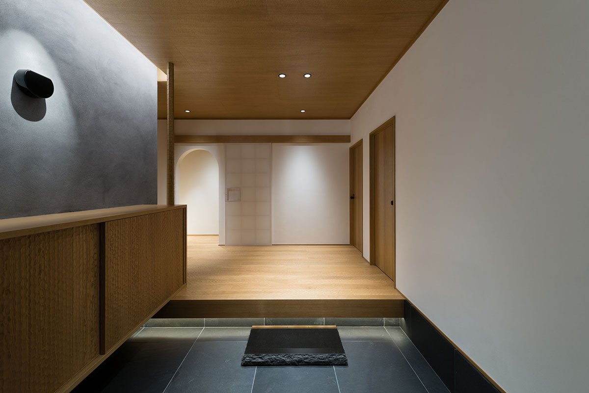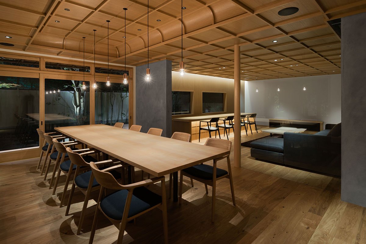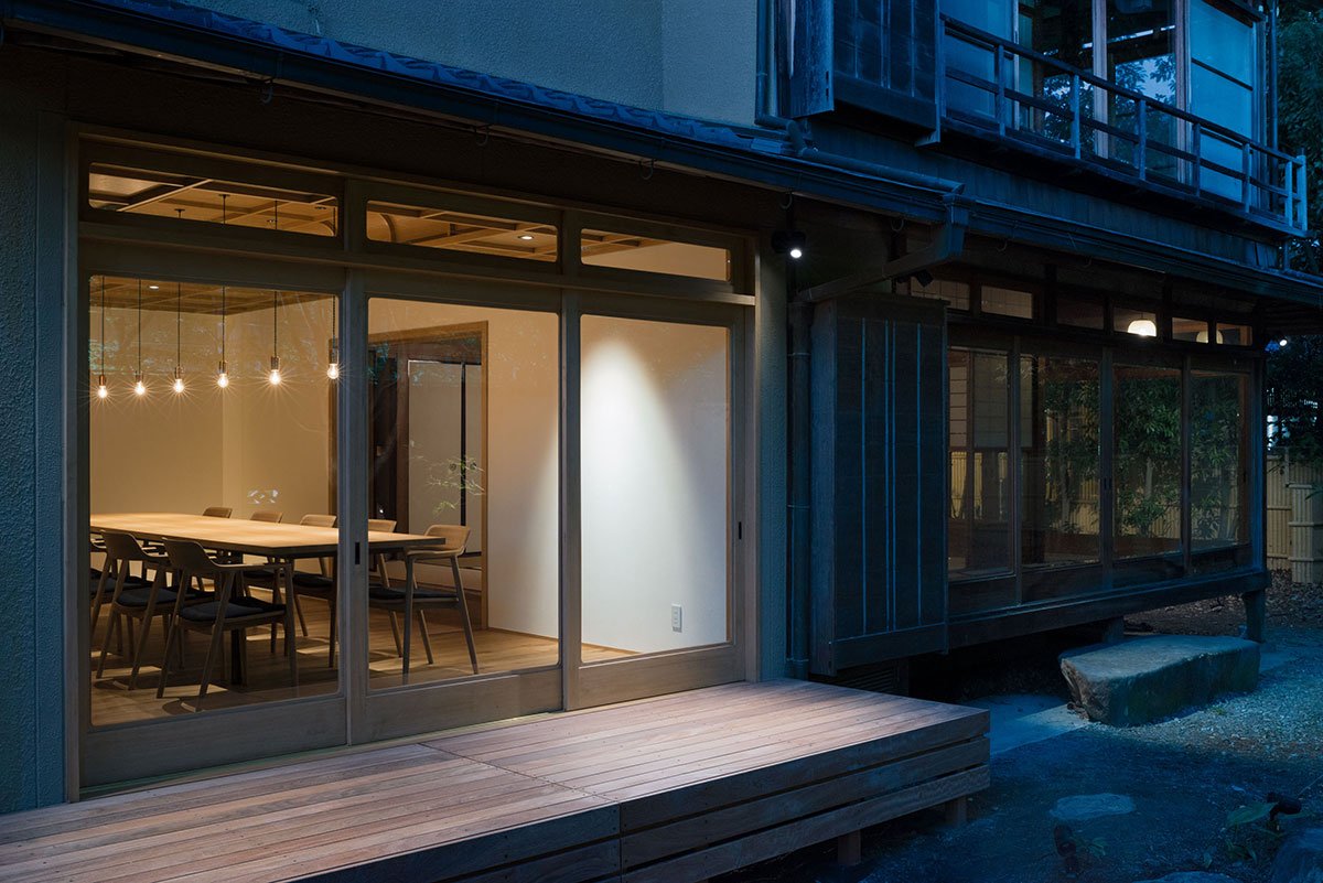 In addition, as requested by the client, the dining room was made to have a big table that can seat ten people, as well as installing counter seats for communication, a sofa space for relaxation, and a terrace for dining in the garden, all of which were designed to welcome geishas and guests. On the second floor, the corridor leading to the master bedroom and the guest room were covered with tatami mats, and from the top of the stairs, one could get a sense of privacy. The aim of this project was to take over the good form of the Japanese house built by the ancestors and give it a form suitable for modern life.