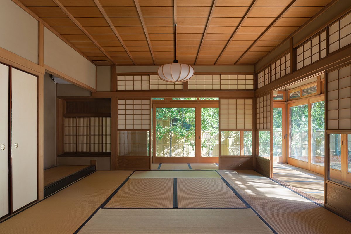 [Text as submitted by architect] This was a project to renovate an old Japanese-style house for weekend residence. The planned site was a quiet residential area where many temples such as Nanzenji in Kyoto have been built and the Shirakawa River flowing nearby. There was a long approach to the site that made use of flagpole land, and after passing through the main and middle gates, there was the old Japanese-style house and a vast garden in the back. As the owner of the house and the times changed, some rooms incorporated the Western-style, which were scattered throughout the house.
