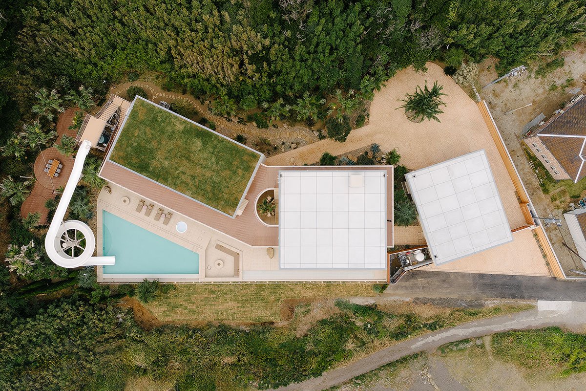 The building is designed as an extension of the ocean and white sand of the beach created by Mother Nature, and is positioned to make the oceanfront seem like a private beach. As a weekend home, the building concept is based on the feel of a villa, with a main building, multipurpose annex and garage provided for different purposes. The separated buildings are connected by a floating plate with attached eaves.