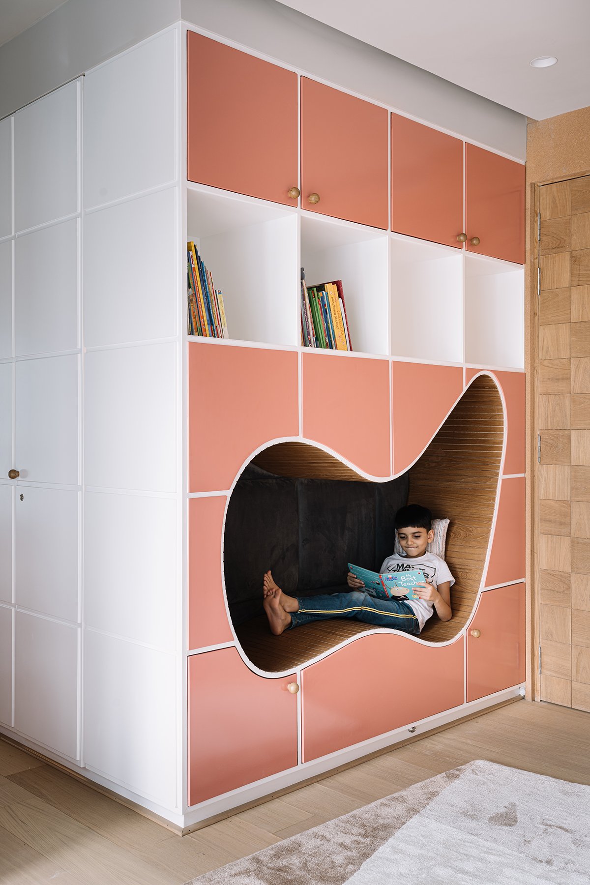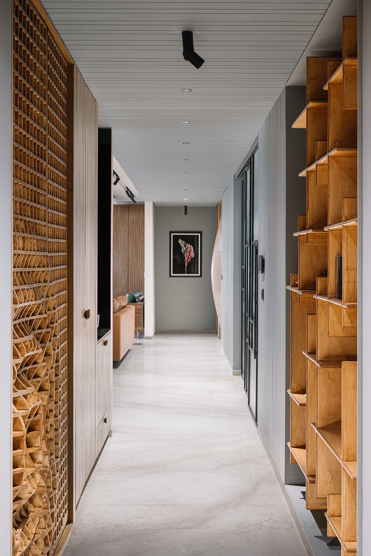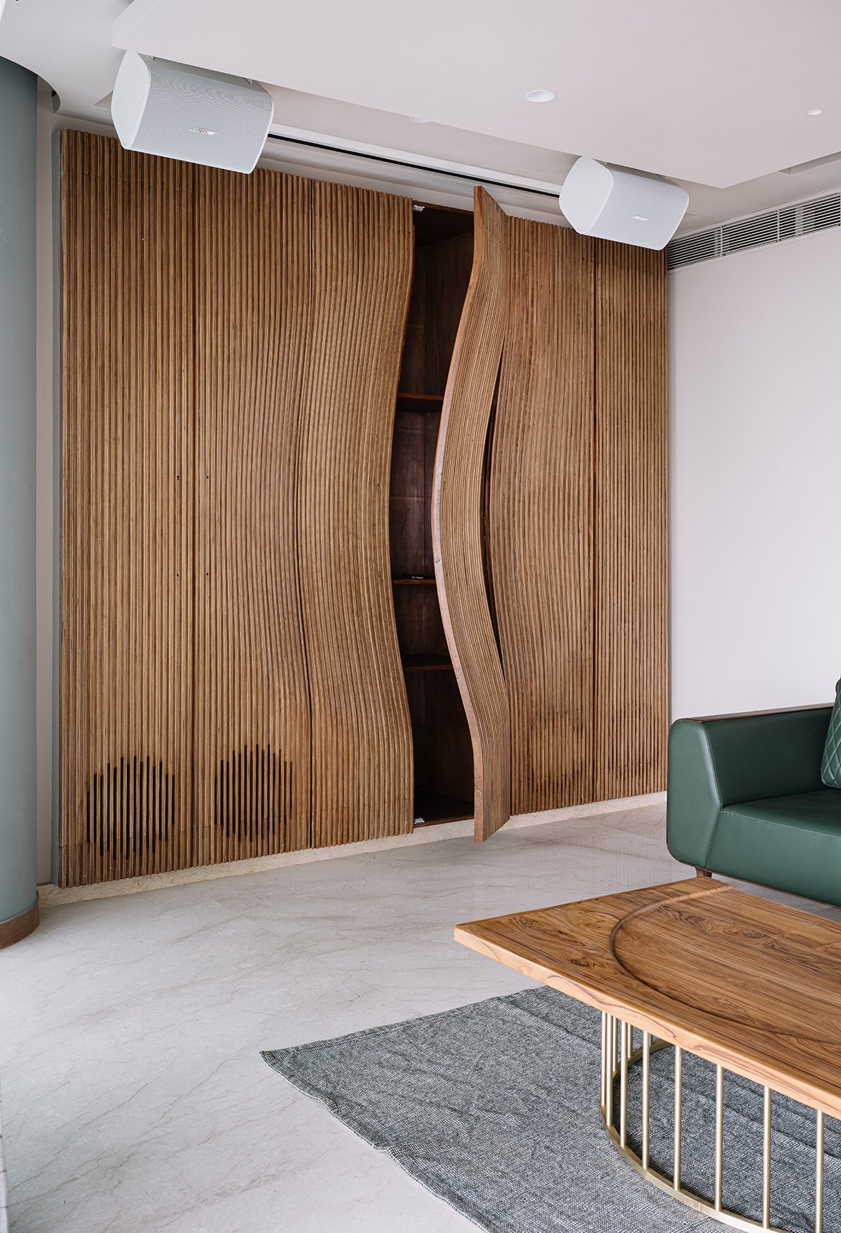 [Text as submitted by architect] Located in Ahmedabad, ‘House of Curves’ is a three bedroom apartment designed to cater to the needs of the family. The client’s requirement was to design an abode that would be an amalgamation of modern and fluid design. Clean lines and geometric shapes as used to add aesthetic appeal and provide efficient yet functional spaces.