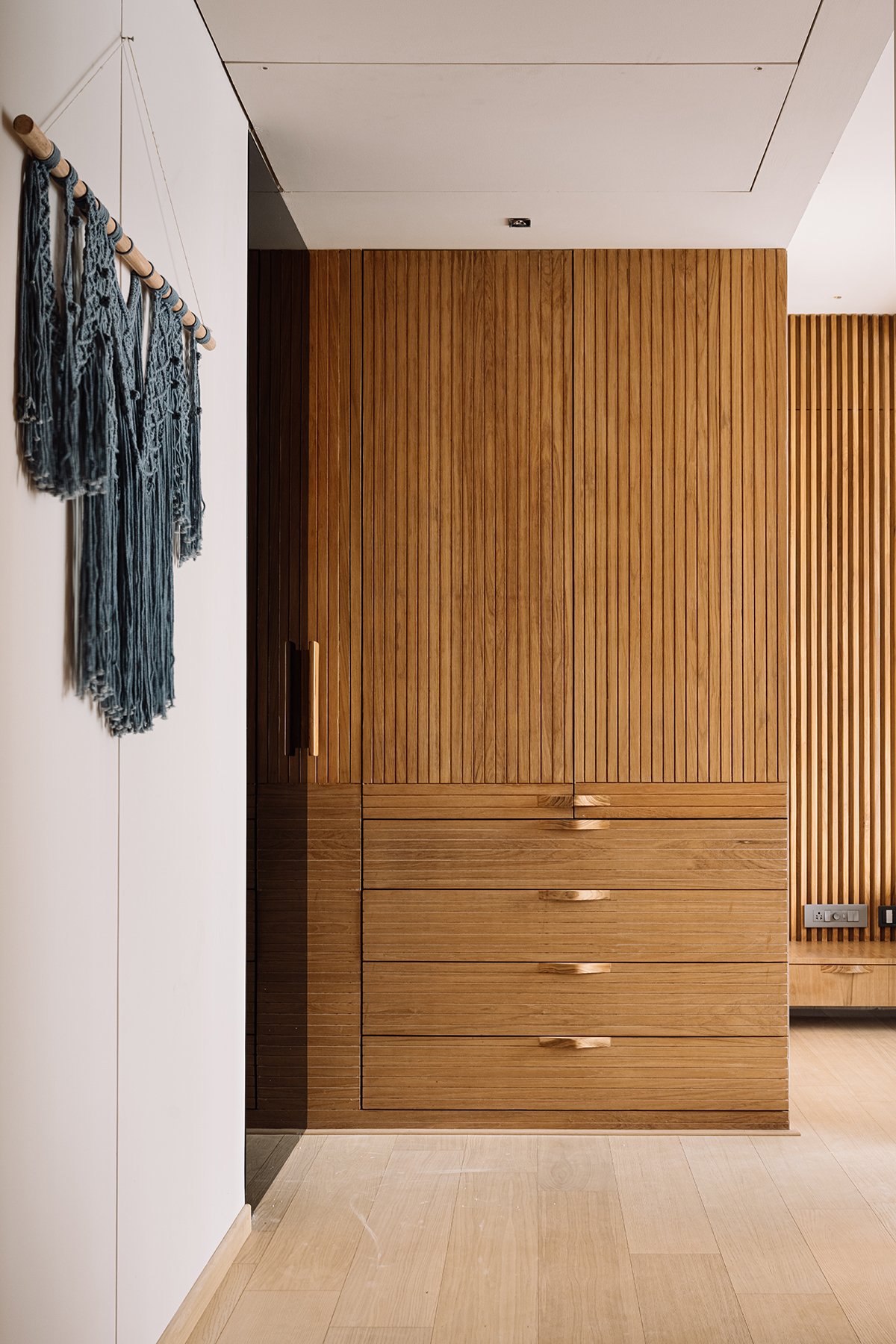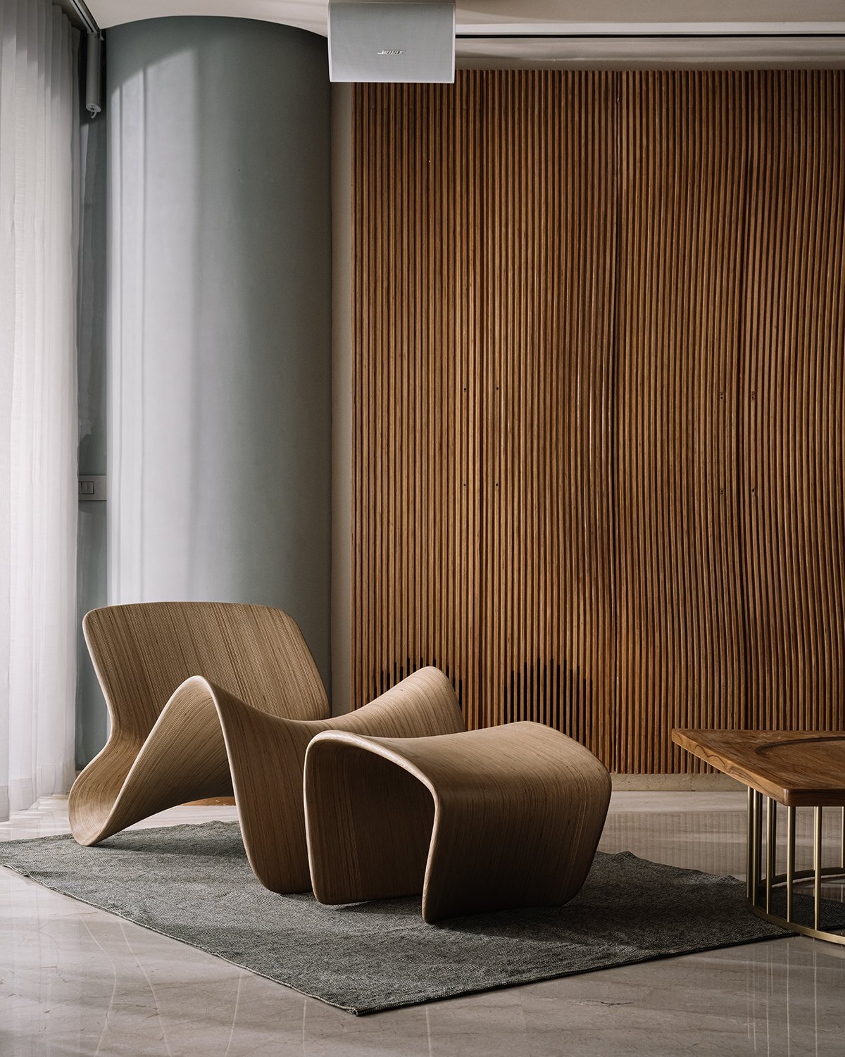 This three-bedroom apartment is designed to embody warmth, fluidity, and contemporary elegance. The client sought a home that balanced modern aesthetics with a sense of softness and flow. The design responds with curvilinear forms that shape the architecture and furniture, blurring the lines between structure and sculpture. Clean geometries ground the space, while a restrained palette of wood, metal, and textured surfaces enhances tactility. Every element is intentional, crafted to elevate everyday living.