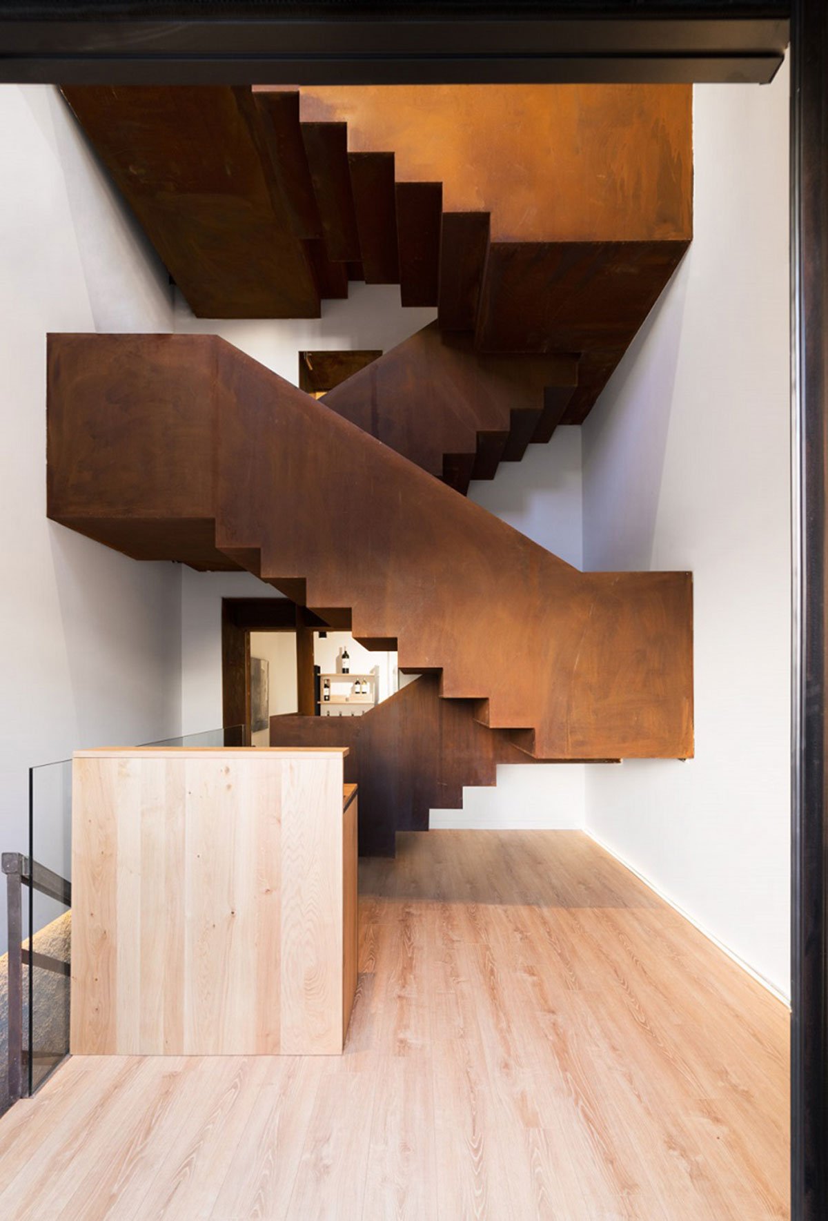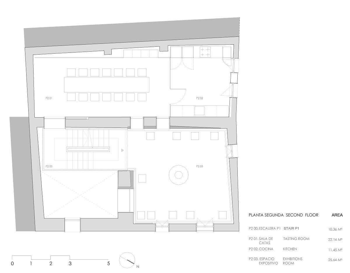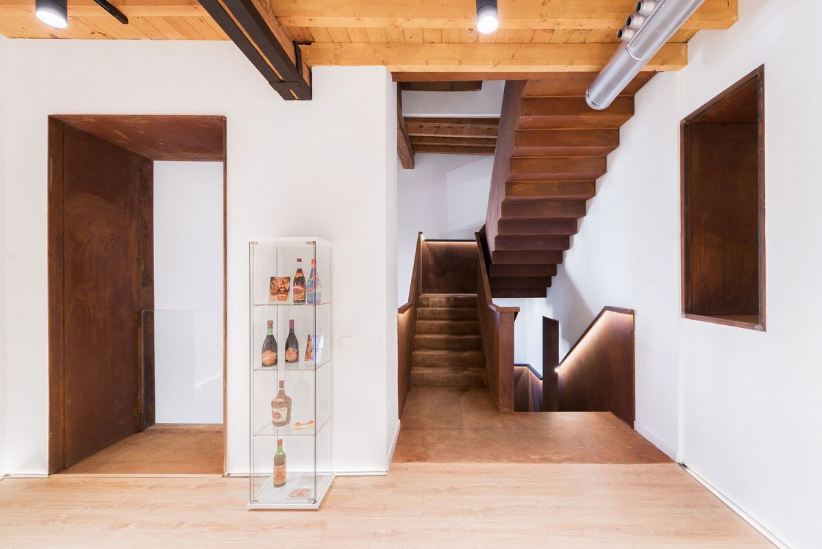In reality, the project consists of a singular Staircase, a sculpture of corten Steel that spans the equivalent of four altitudes and succeeds in connecting up to eight different levels (all of which correspond to the different functions in the plan). It initiates in the Cave and reaches, in order, the Hall, the Artisanal Winery, the Store, the Tasting Room, the Exhibit, the Meeting Room and finally the Technical area.