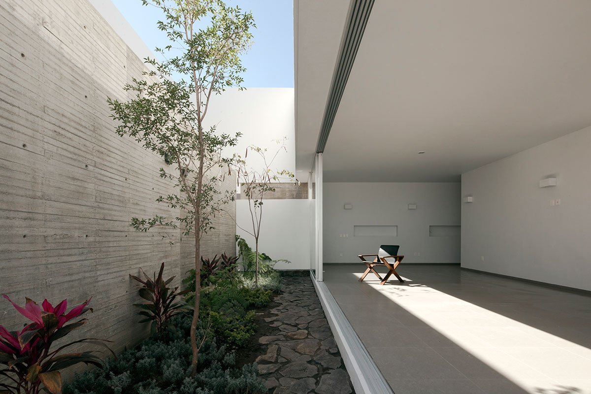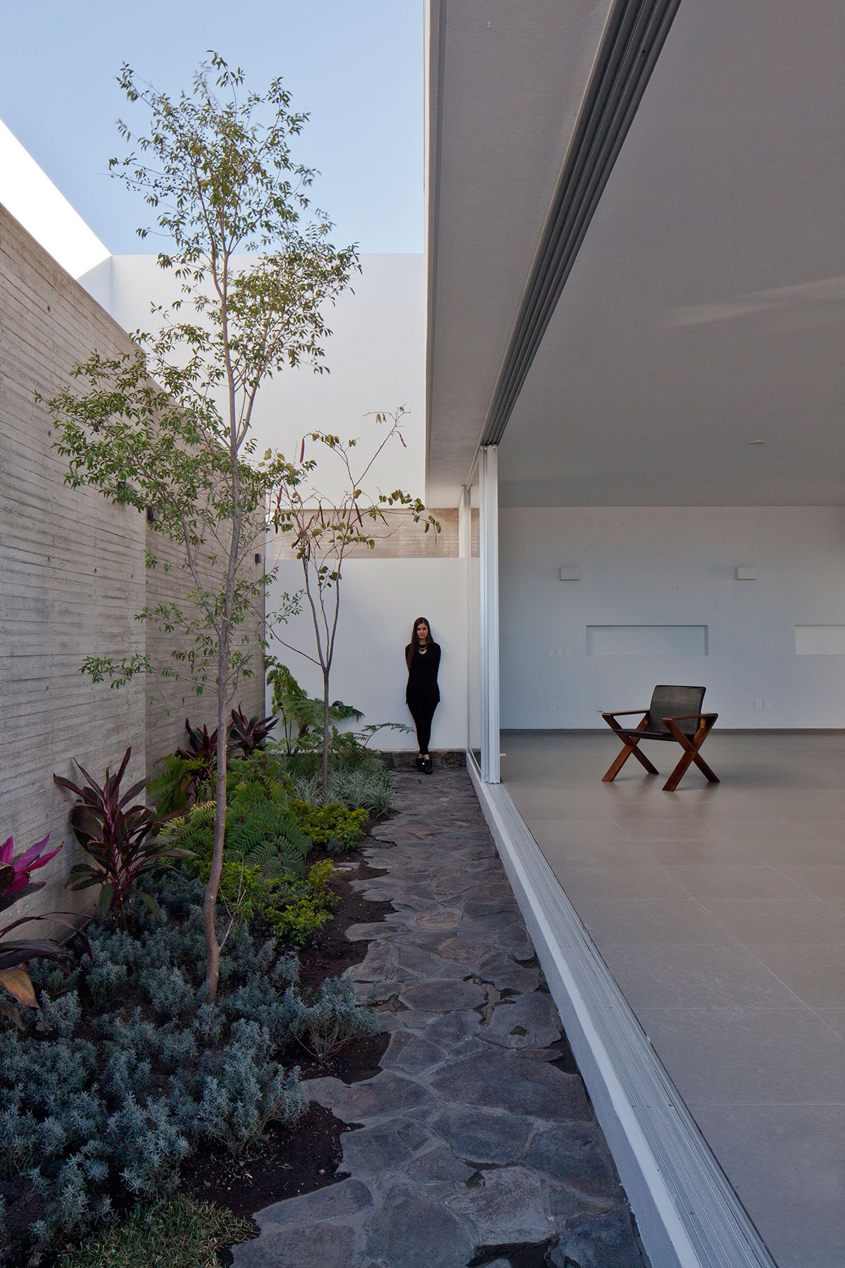 The project is an evolution of the concept of the screen wall, an idea arising from the exercise of homes in gated communities, where the search for privacy and wealth of interior space, causes a mechanism of introspection. The site, between party walls, is located in the foothills of the spring forest in the city of Guadalajara Mexico. The distribution reflects the direction of the terrain: west-east.