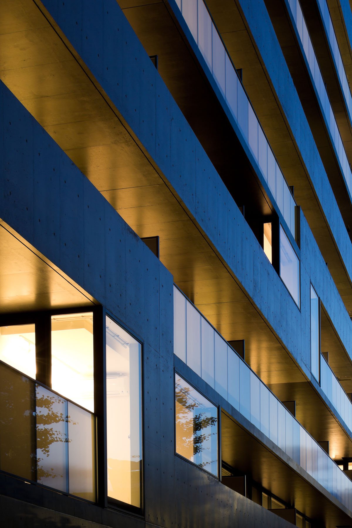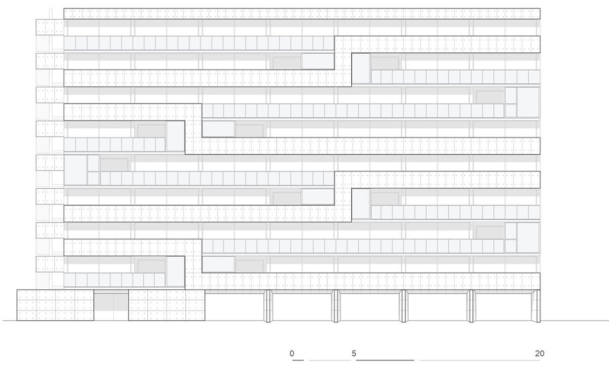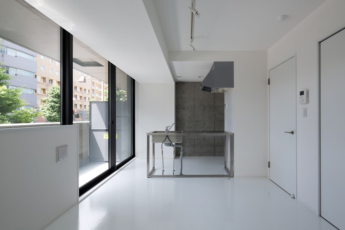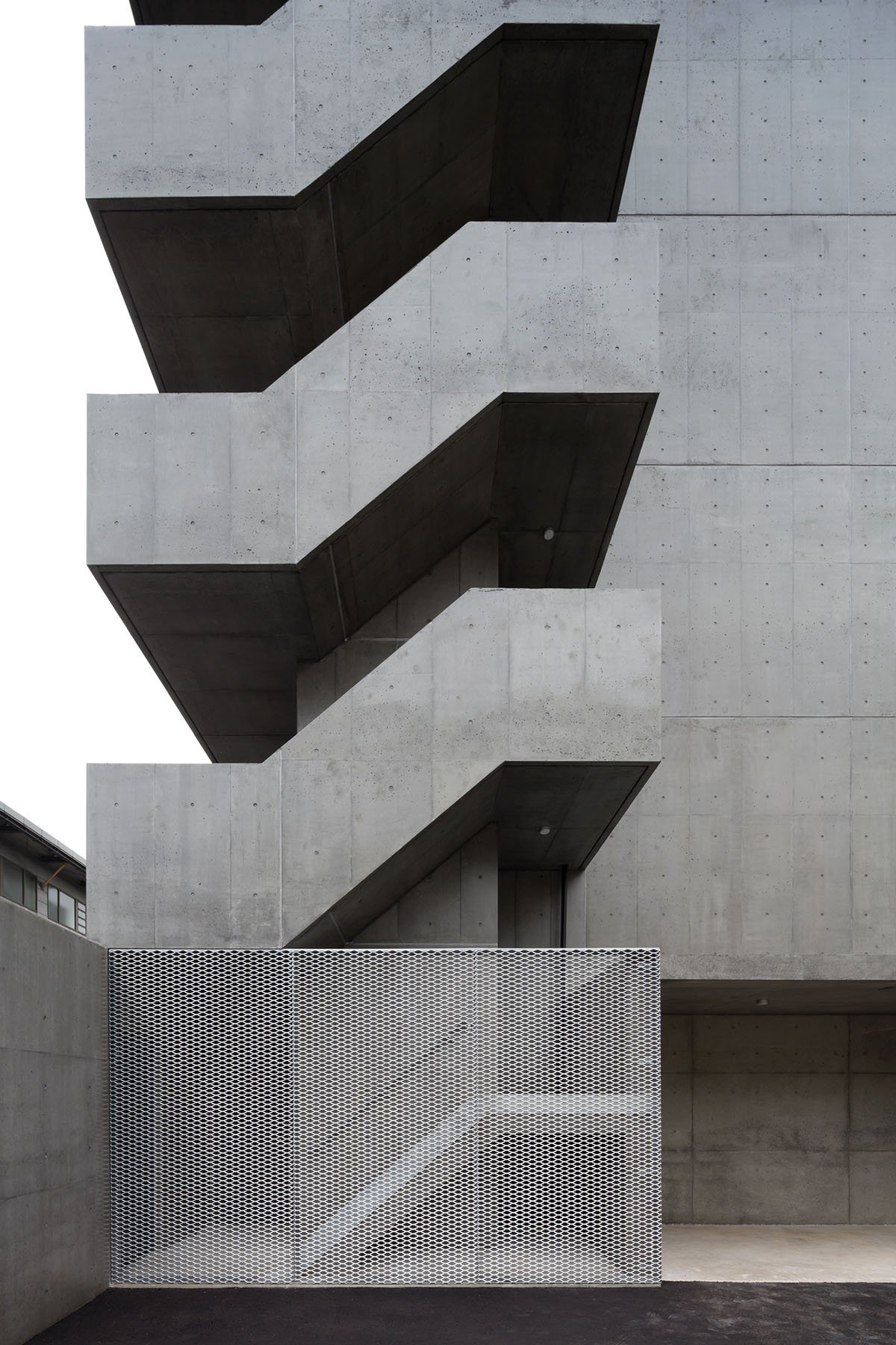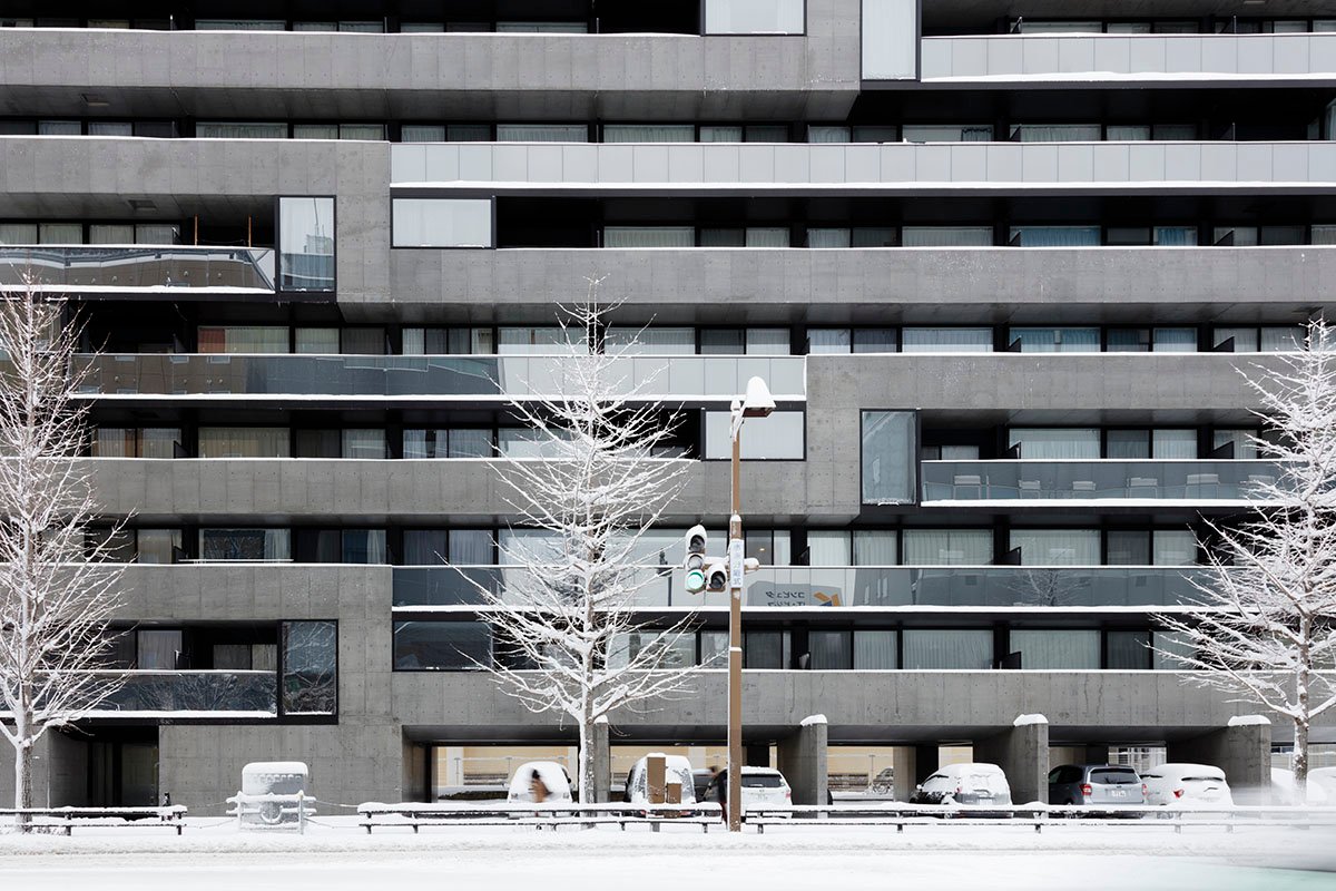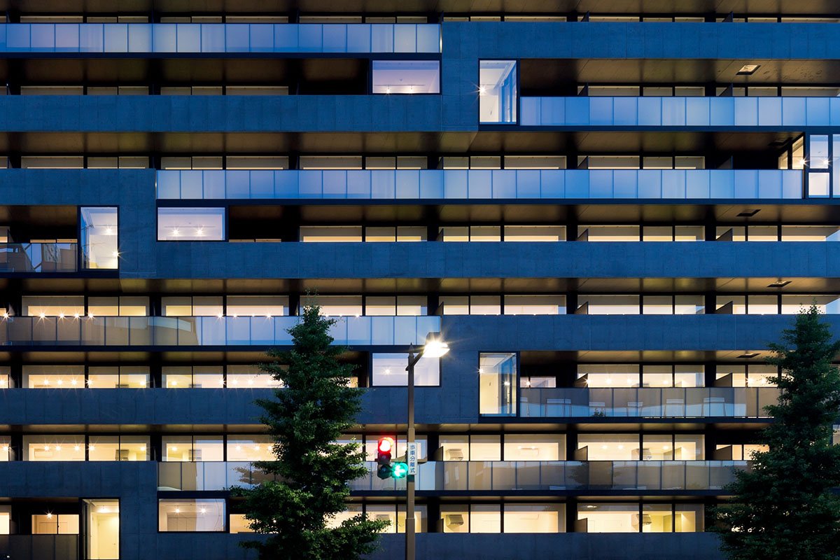This is a 56 dwelling housing complex located in Niigata, Japan. It sits along a main road, close to the central station and at the end of a busy T-junction. Due to its scale Niigata is a typical motorized society. It lacks a metro system and therefore private vehicles are a prevalent mode of transport. In response, we utilised piloti as a means to maximise the number of parking spaces. The piloti serve a dual purpose; not only adopted by the architectural plan they also contribute to the structural stability of the building.
