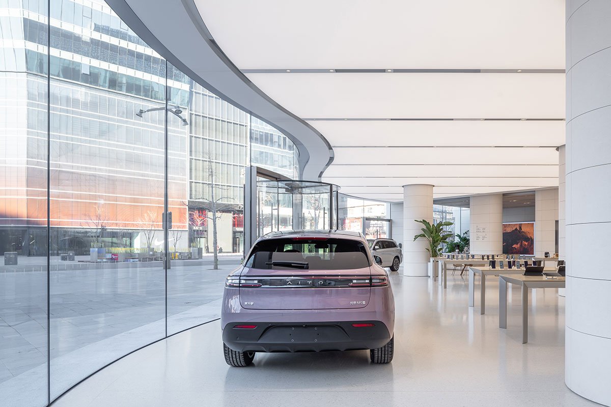 The design aims to welcome visitors without being overly elaborate or decorative and is focused on creating an optimized space for Huawei, fostering, and appreciating the digital ecosystem, in the center of Beijing.