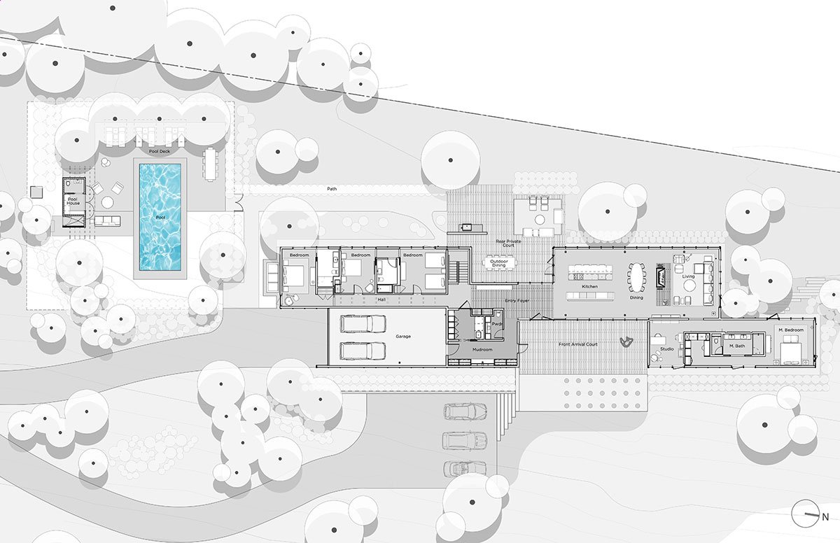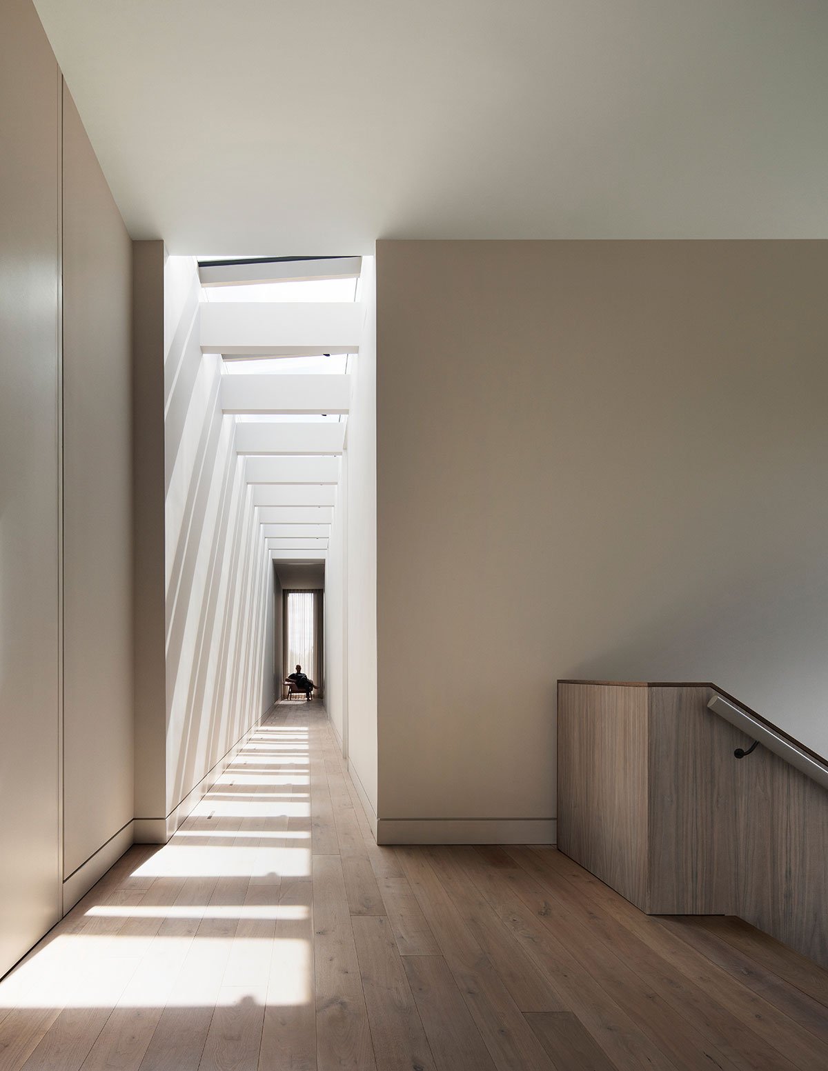 Daylight casts shadows throughout the home, creating natural separations and boundaries that provide a sense of privacy in the smartly designed spaces. Privacy is created by distance, and every step of that distance presents a unique moment, whether it be a view, a piece of art, or a ray of light projecting onto a wall.