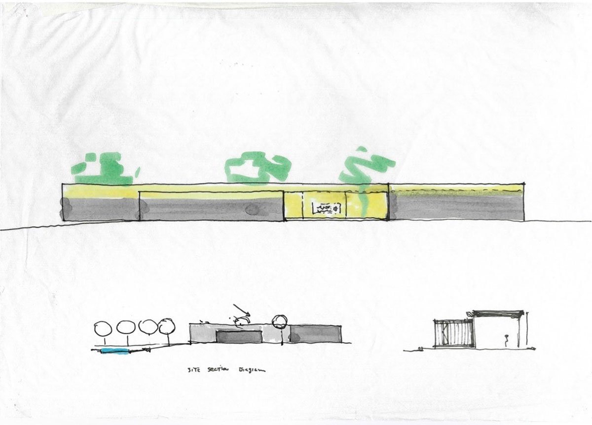 The house meets the sky in a very minimal way, while remaining lightly seated on the ground. It’s a predictable system that flows like a piece of music, with subtle tone-on-tone interactions with the elements that bring the colors and material palette to life throughout the day.