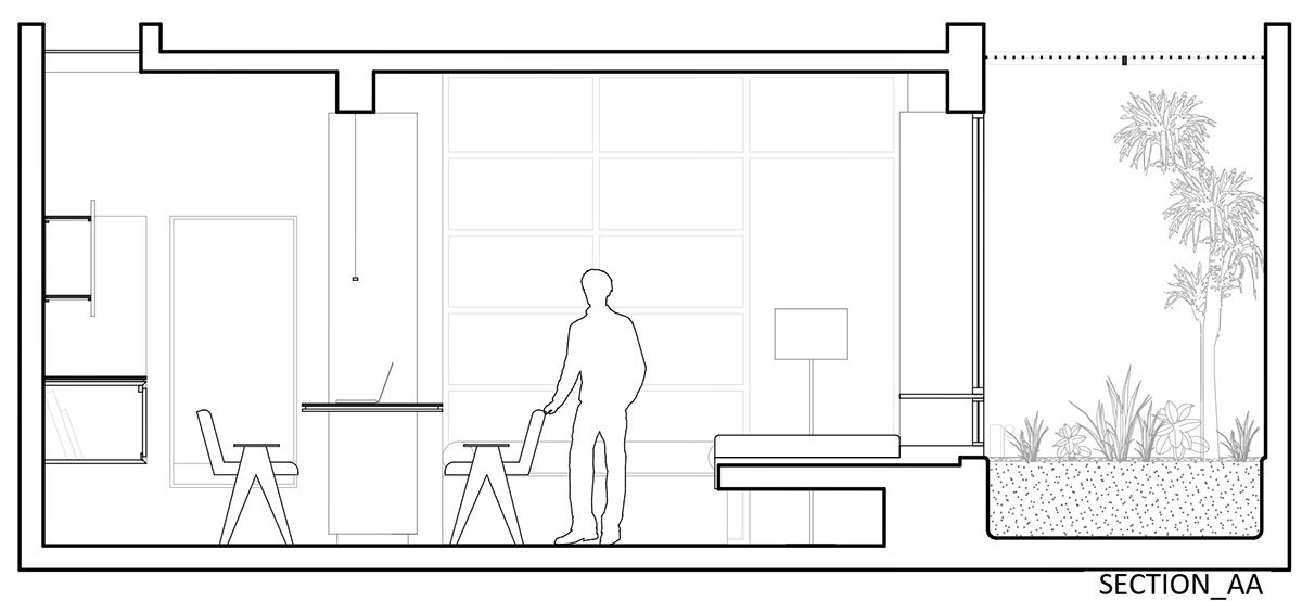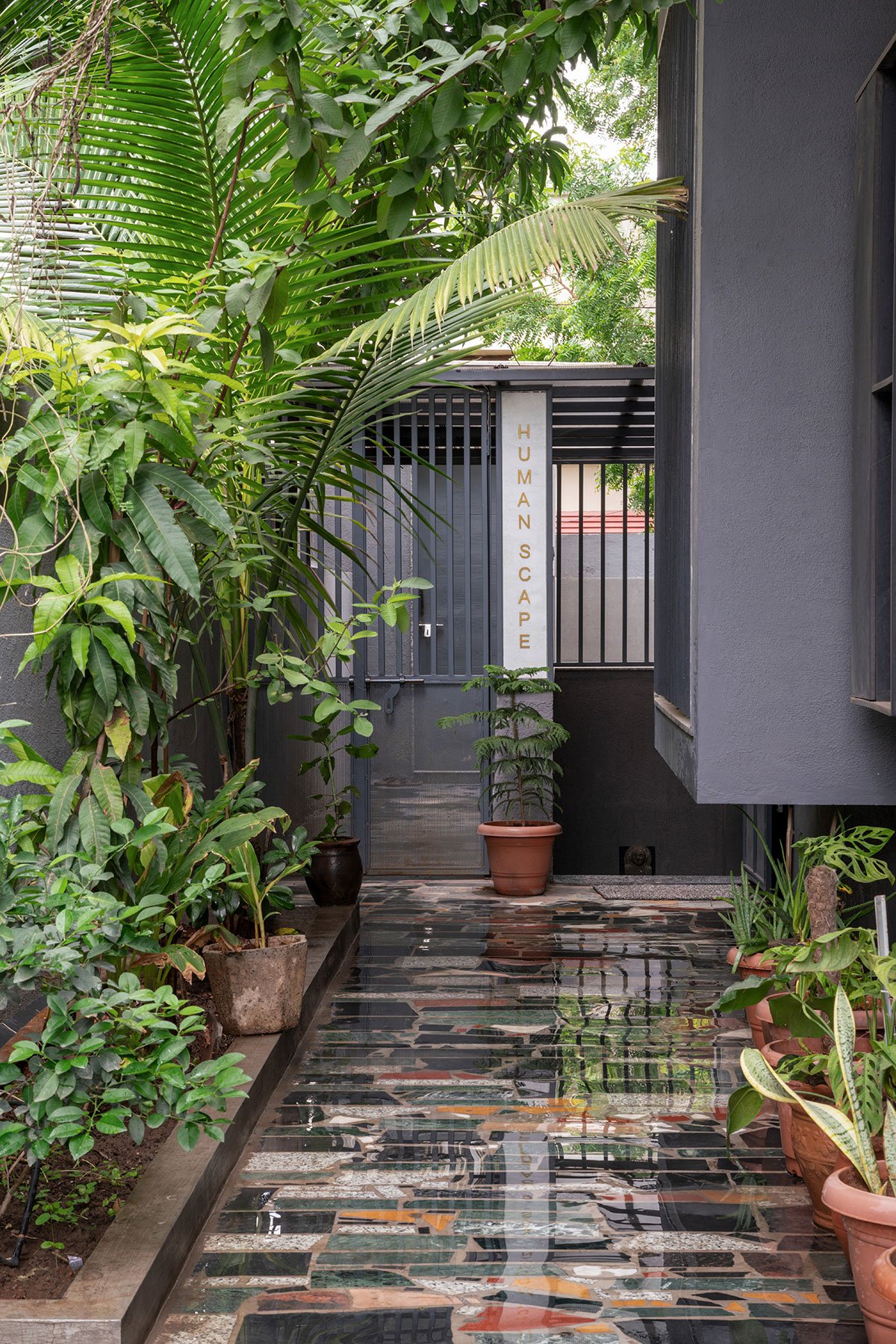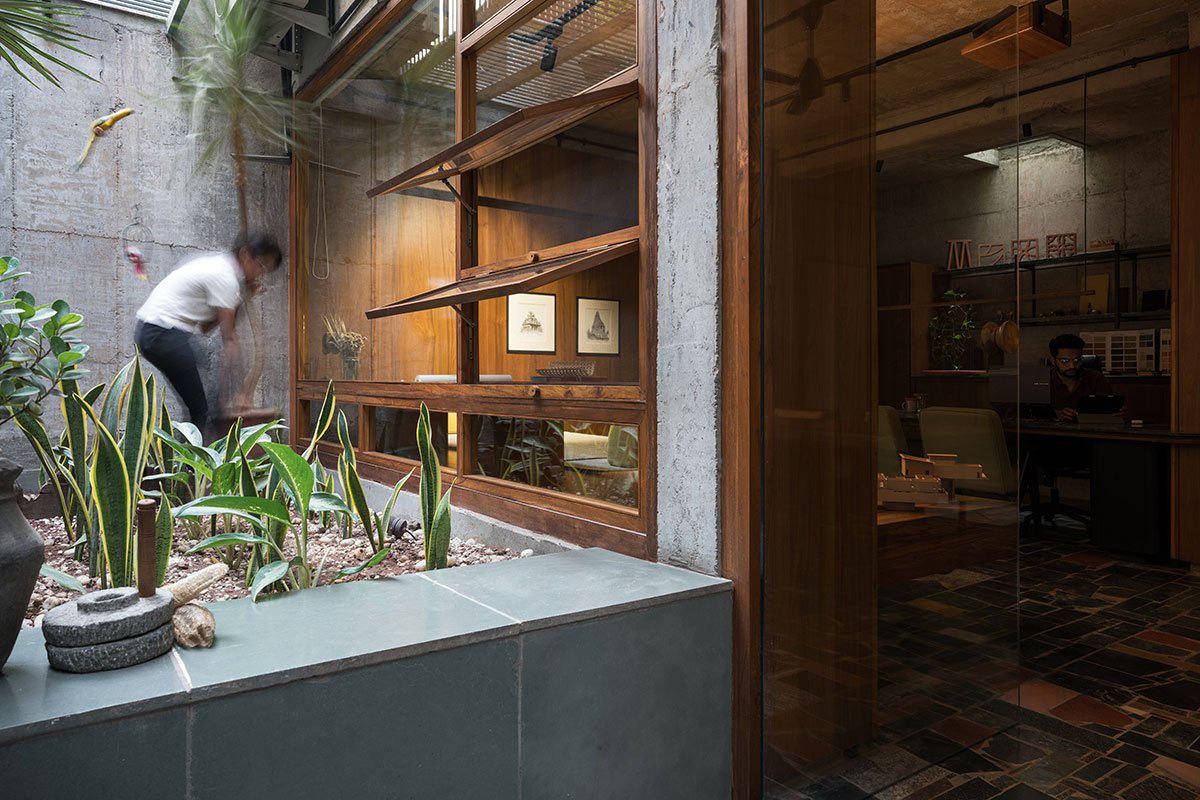 Excerpt: Humanscape Design Studio by Humanscape is an architecture project blending the warmth of reclaimed wood with the strength and beauty of metal. ‘Humanscape’ was developed by carving a basement into a residential site, resulting in light wells, access points, and walls shared with underground water tanks. The studio, a concrete shell with light, shadows, sky, greens, and garden, serves as a retreat for introspection and idea expression.