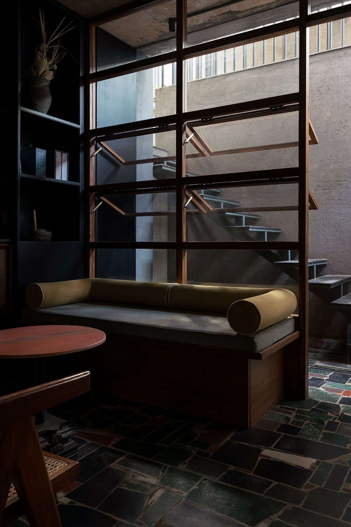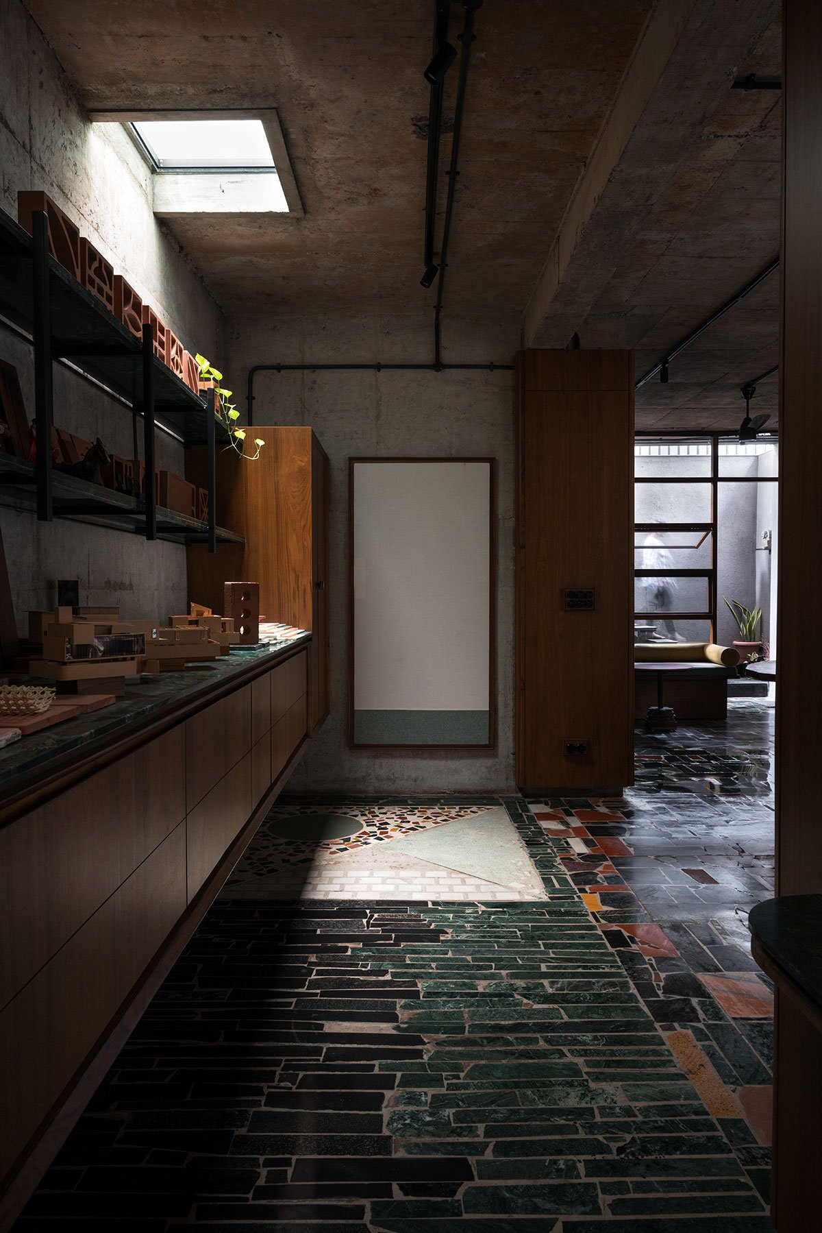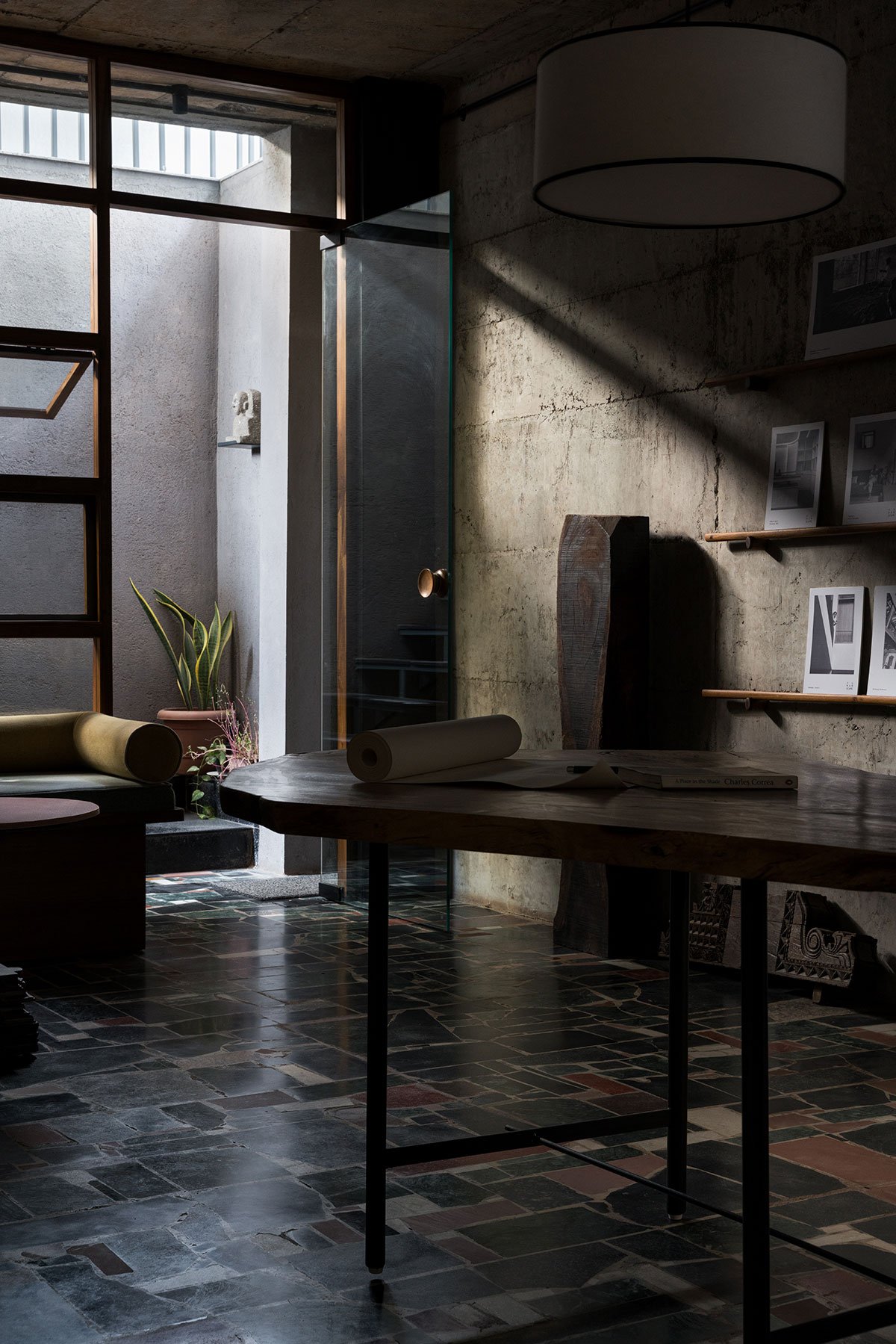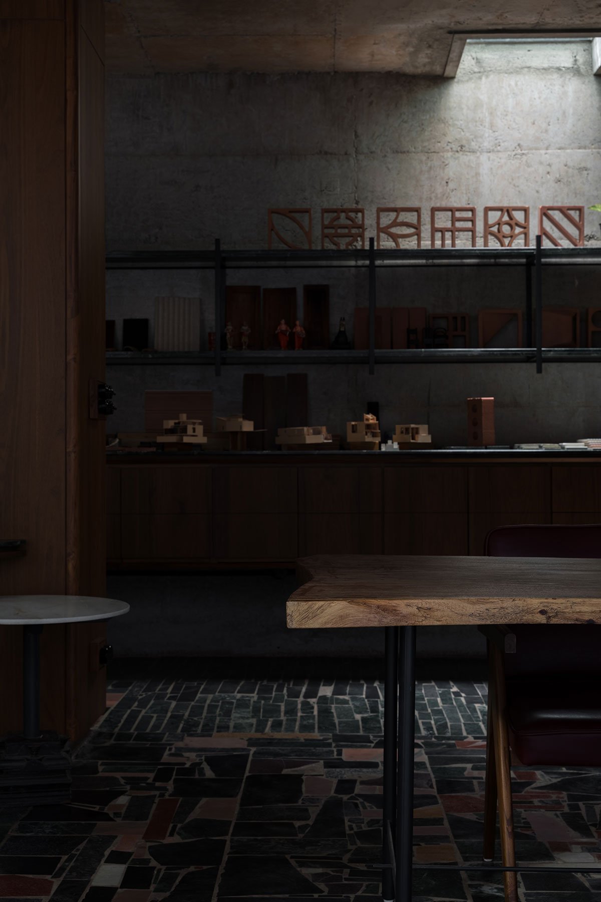 The free plan of the studio became a canvas for experimentation—today a presentation room, tomorrow a library, a movie club on Saturdays, pottery workshop or even a venue for traveling exhibitions.