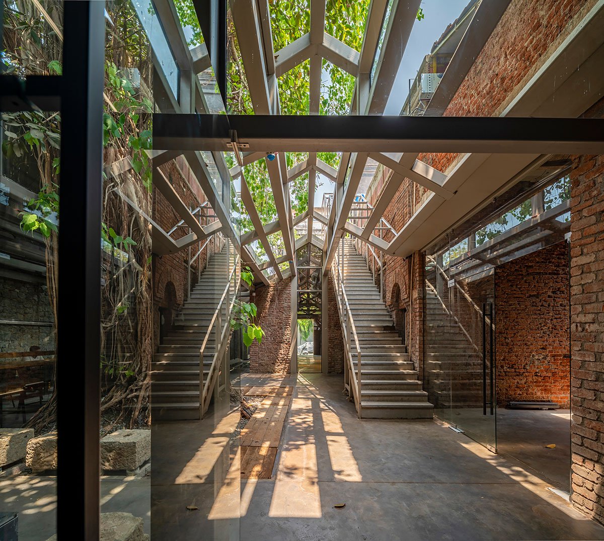 The recovery of the courtyard, restoring safety and clarity to the existing structure, revealing the organisational and physical anatomy, allowing the Banyan tree to breathe and finding a way to shelter the new/additional spaces through a dialogue with the original structures was critical. There is no need to search for a new language, the triggers lie within the existing architecture.