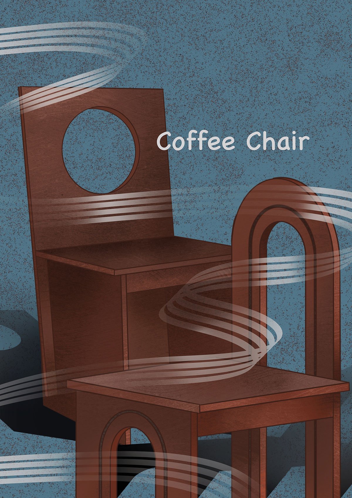 The varying shades of coffee-colored wooden boards interlock with each other, akin to the emphasis on flat surfaces in Bauhaus design. The self-designed chairs draw inspiration from the letter “A” in the Bauhaus font, featuring distinct geometric shapes that highlight geometric composition and form.