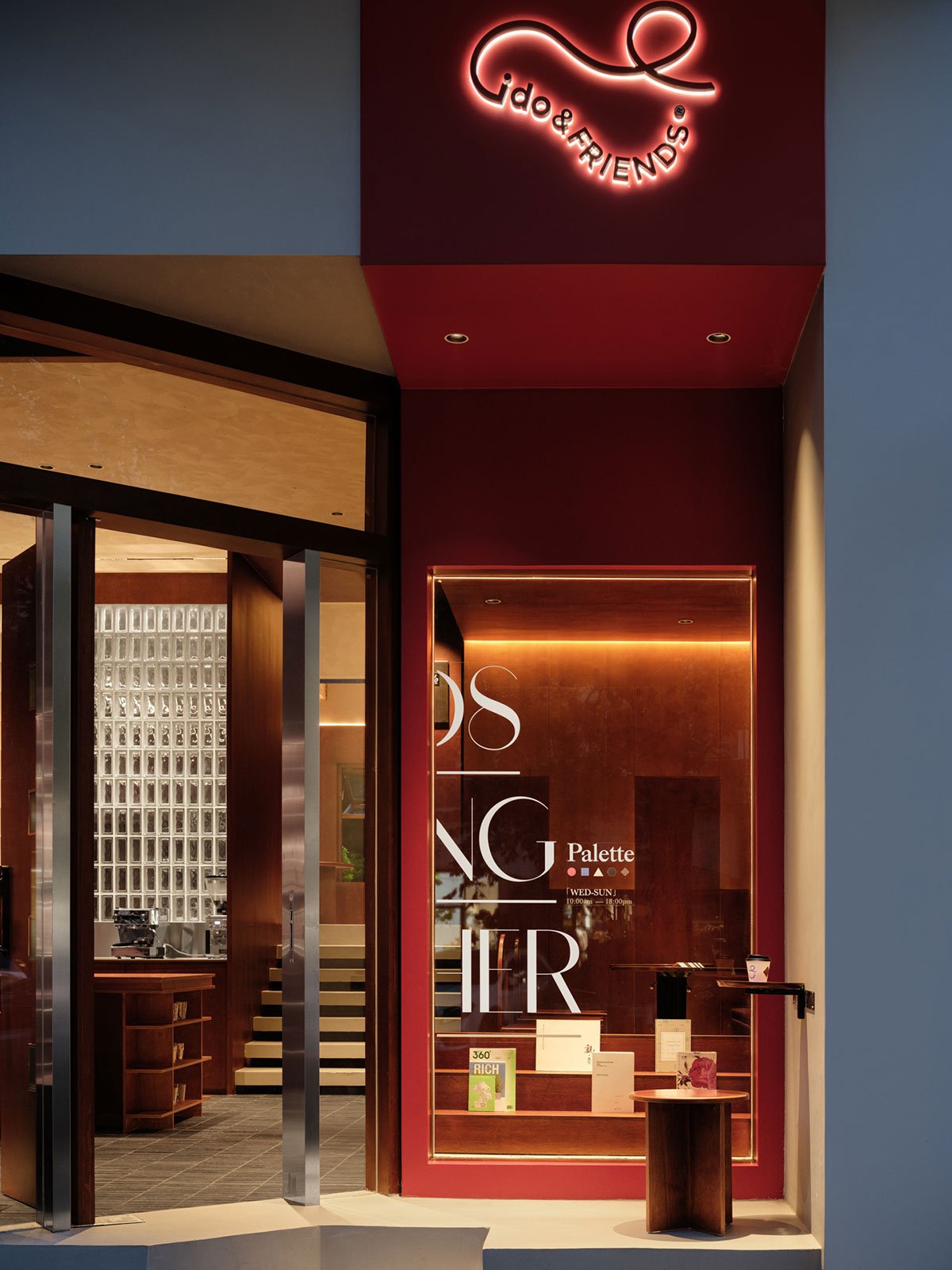 The glass brick wall gently divides the space. On the outer side, there’s an area for guests to savor specialty coffee, while on the inner side, there’s a workspace for digital nomads. The designer’s intention is for people to not only enjoy delicious coffee at ido&Friends but also embark on a creative journey together, inspiring countless individuals through friendly interactions.