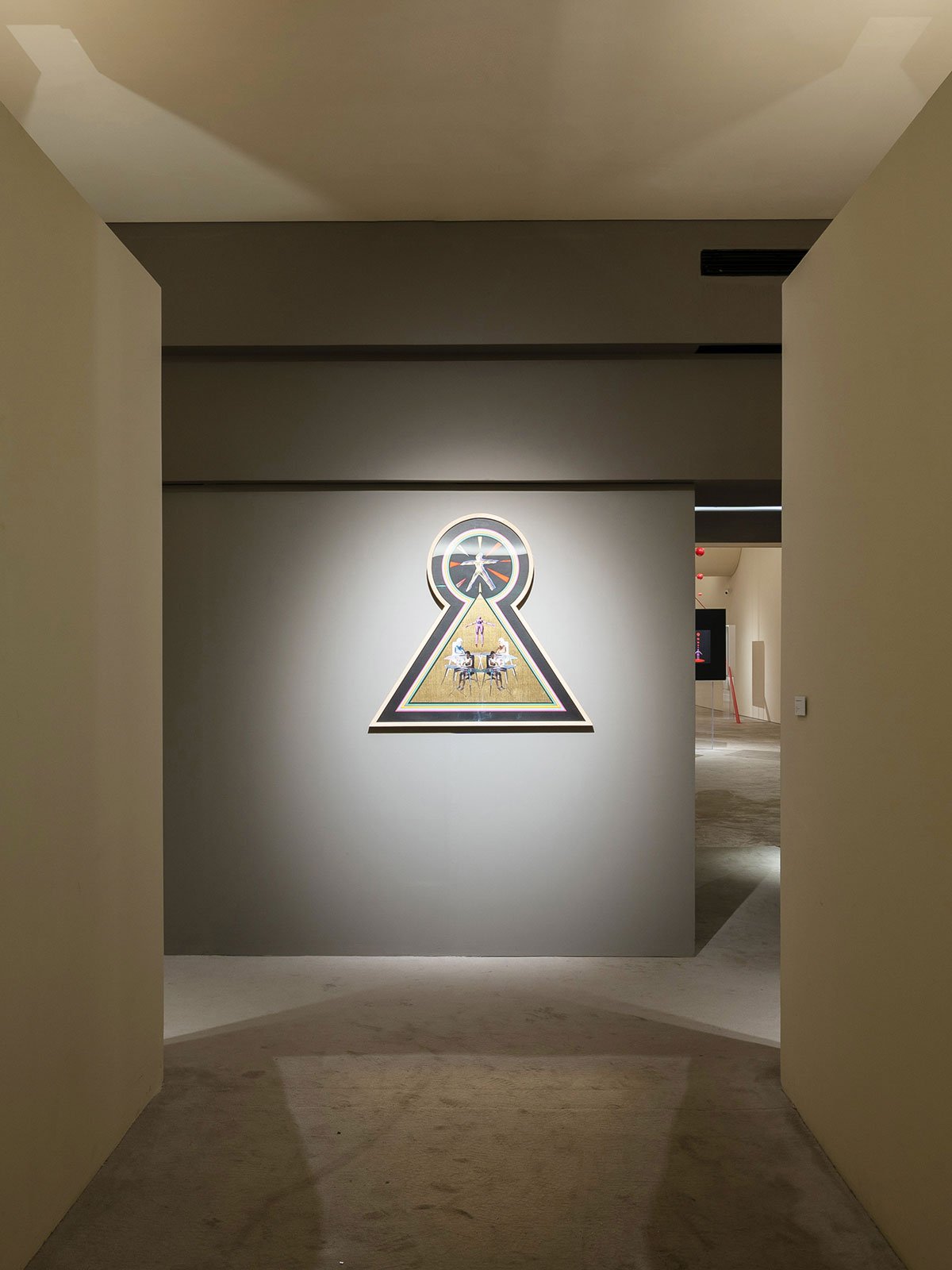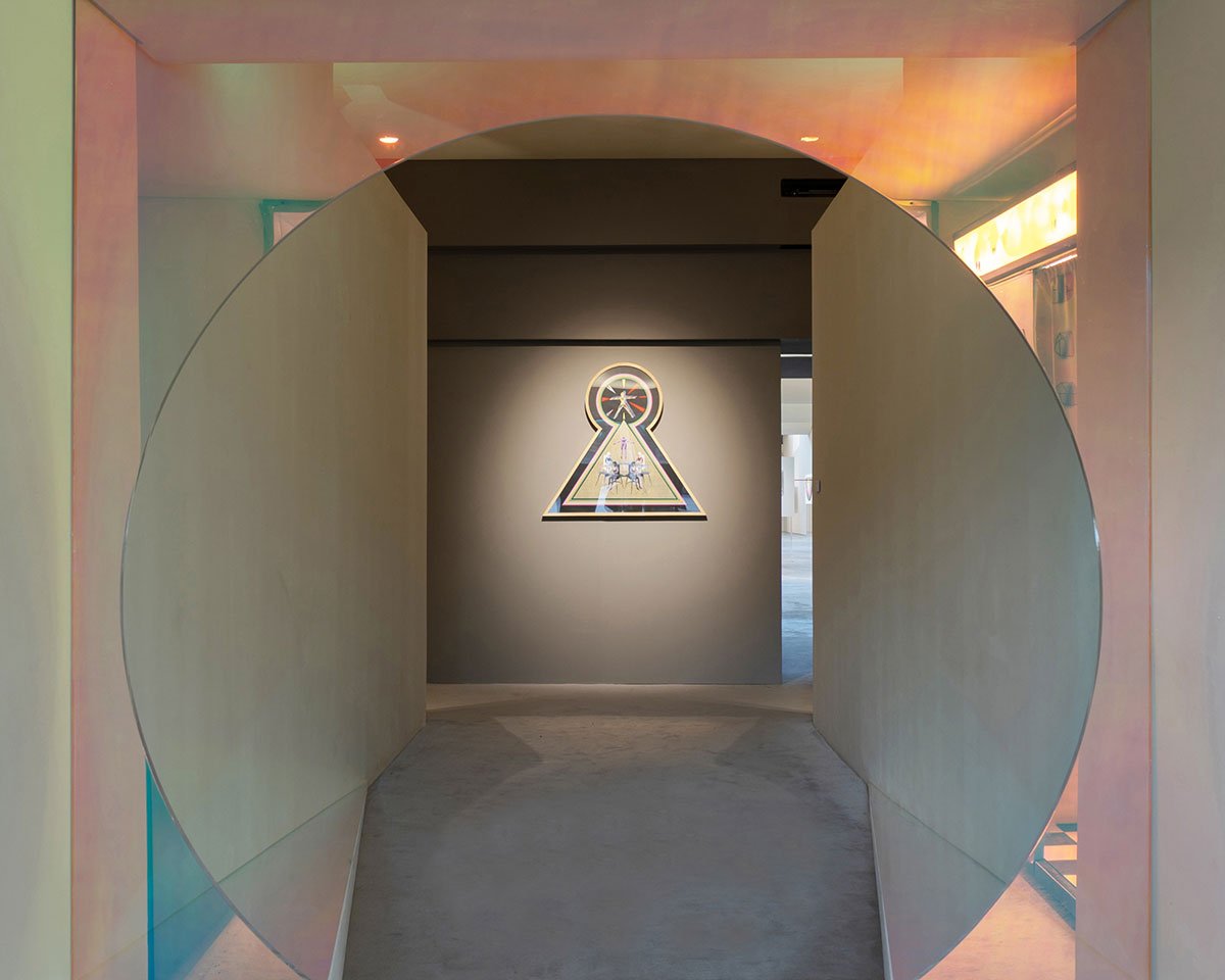 [Text as submitted by architect] Artist Tan Zhuo opened her first solo exhibition, INACTUEL, with more than 20 works expressing profound insights into life and technology, past and future, and individual existence. KiKi ARCHi starts from the philosophical point of view of the artist, taking the content of the work as an opportunity and using the elements of the painting to connect the exhibition’s moving line, theme, and display form. Inspired by the three-dimensional space-time, the design team reshapes the framework of viewing the exhibition and presents a rich sensory experience.