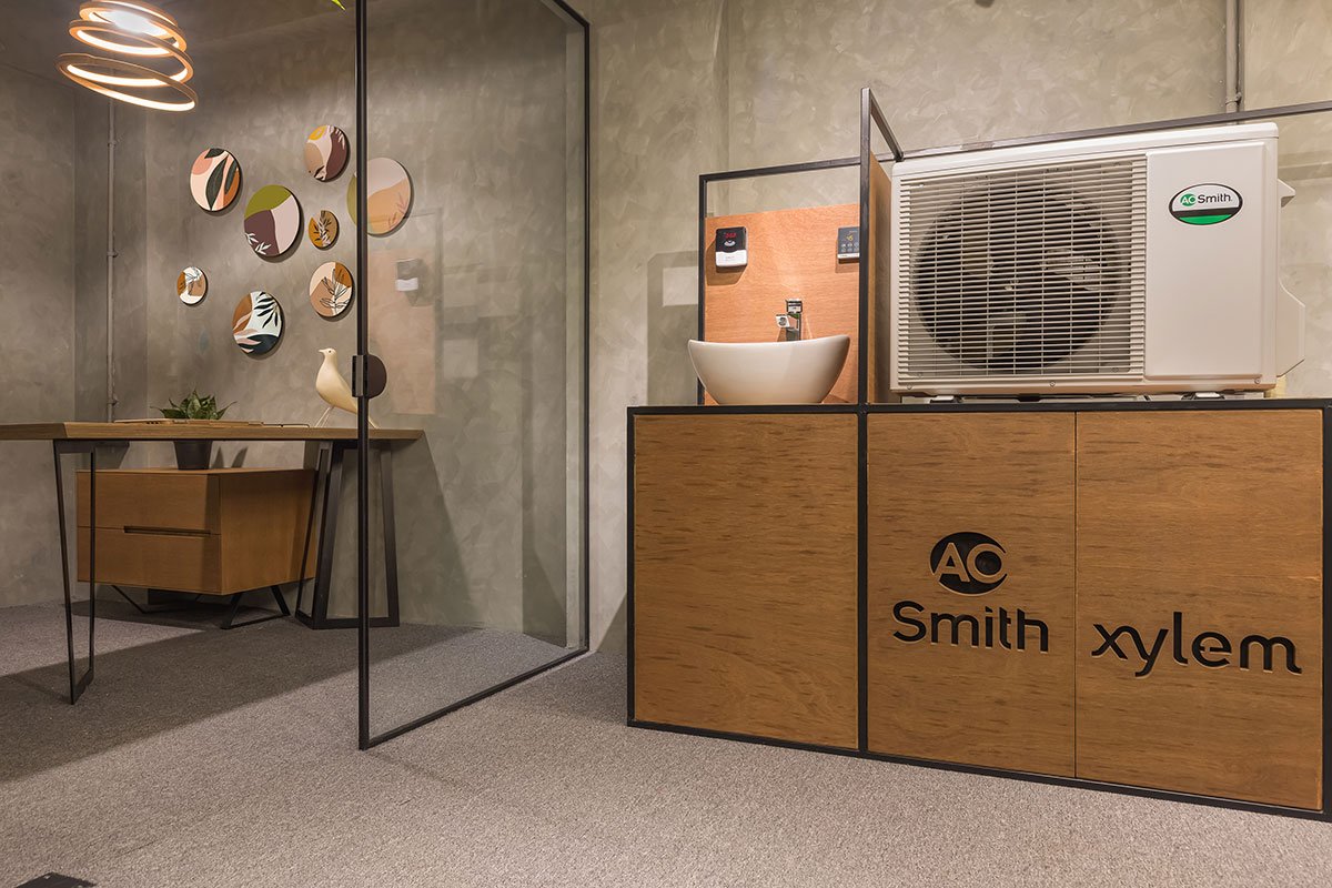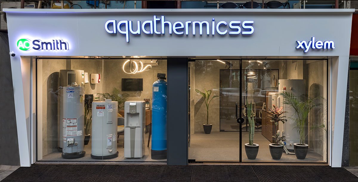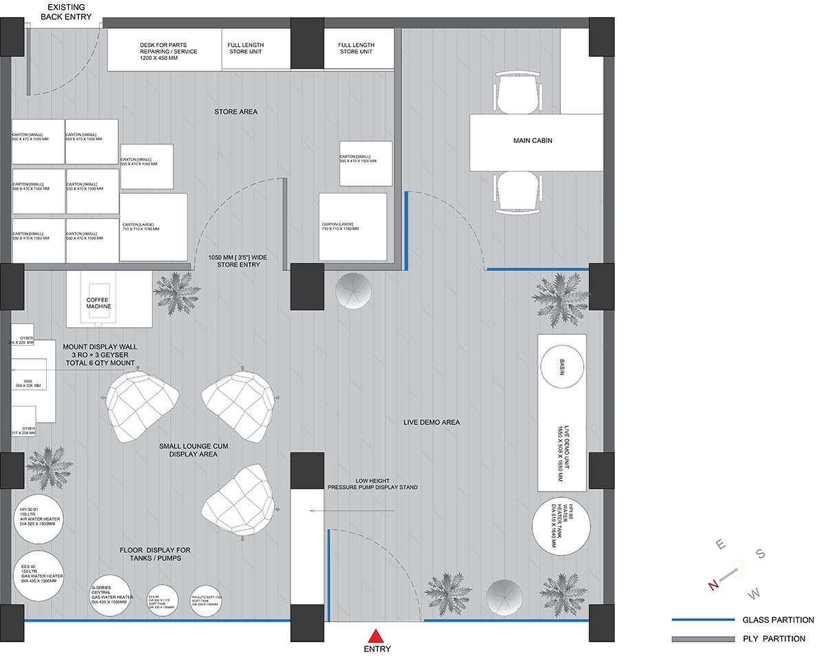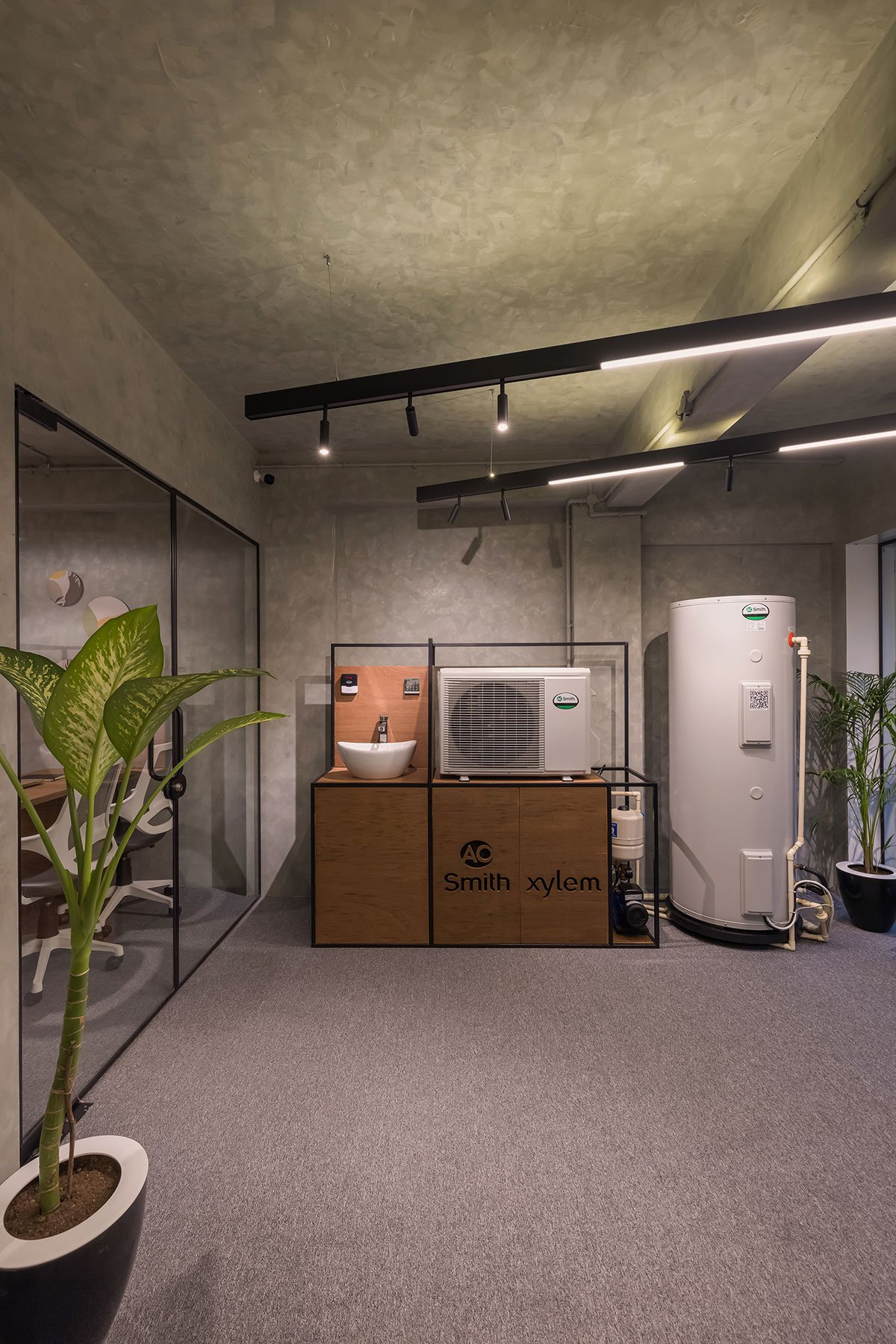 [Text as submitted by architect] Gujarat’s first premium showroom of Geyser and Ro water solution. In the rapidly expanding business metropolis of Surat, Gujarat has its first premium showroom for gas water heaters and RO plants including international products from Ao Smith and Xylem.