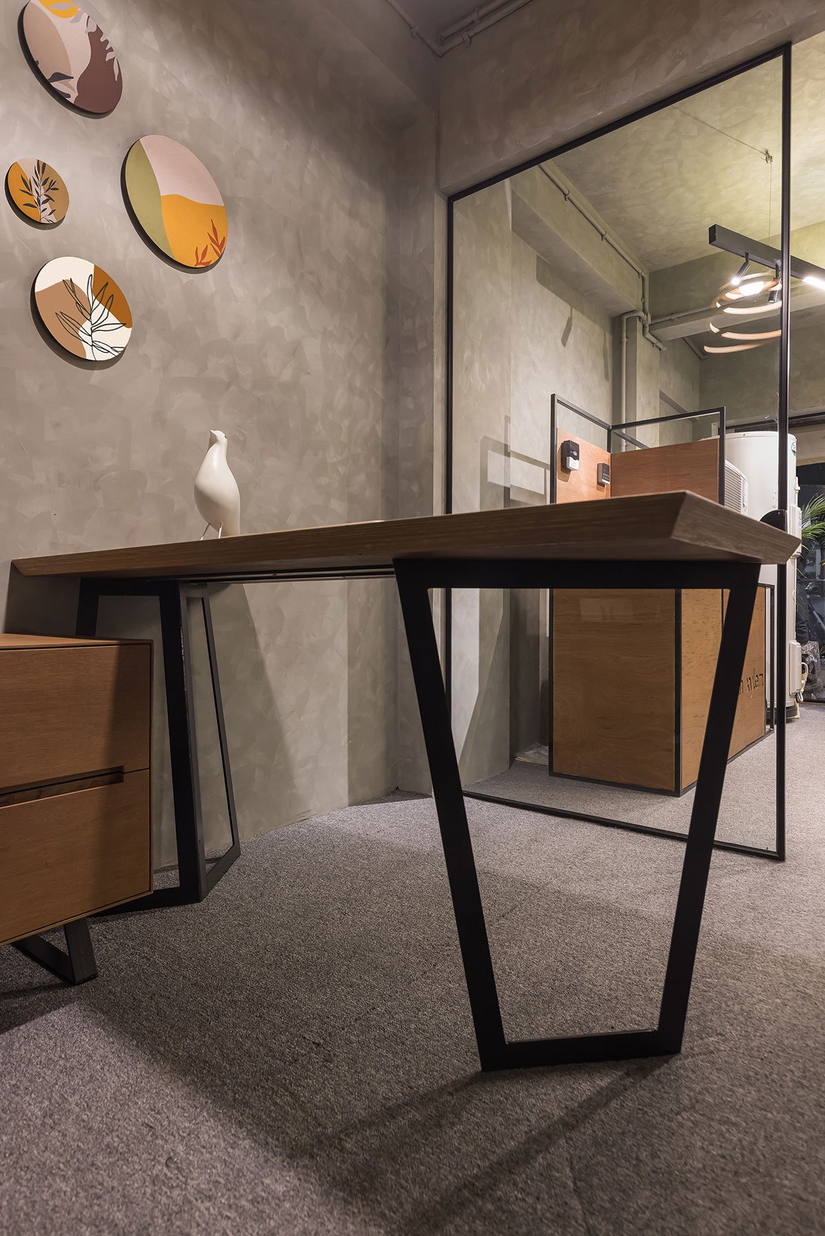 1. All designed furniture elements are crafted with powder-coated metal and exposed ply finish.