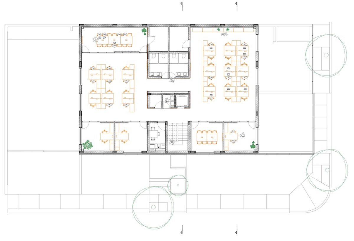 Considering that one of the biggest challenges to be solved in institutional buildings is the difficult equation of the different flows that coexist within it on a daily basis. It was necessary to establish and manage within a spatial order the different intensities, frequencies and characteristics (public, collective and private). In this case, it was necessary to completely redefine the spatiality inside the existing building to meet the new program and all the functional aspects of the company. Downstairs are public and collective order programs; the first and second floor were allocated to staff areas; the third floor houses the presidency and large meetings. Finally, the roof was transformed into a solarium to receive the leisure and decompression area.