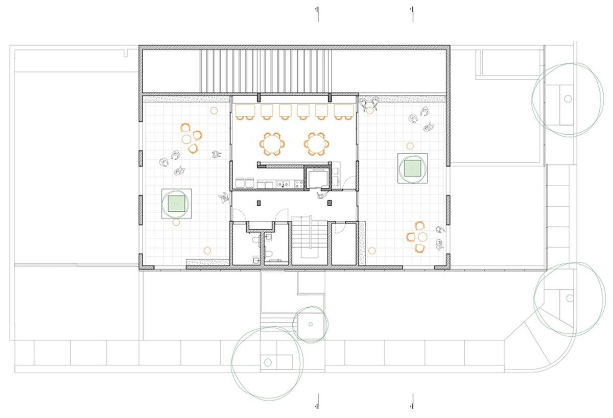 The privileged location of the property, as it is located on a busy corner, results in a series of benefits that can be incorporated into the new IQA headquarters. With this bias in mind, the projective strategy consists of opening the building by removing all existing walls, making the street more friendly for the residents of the neighborhood. In parallel to this, in order to solve a question of quotas between interior and exterior and also to give more prominence to the building, a generous arrival plaza was created that raised in relation to the street forms a kind of podium for the new headquarters of the Institute.