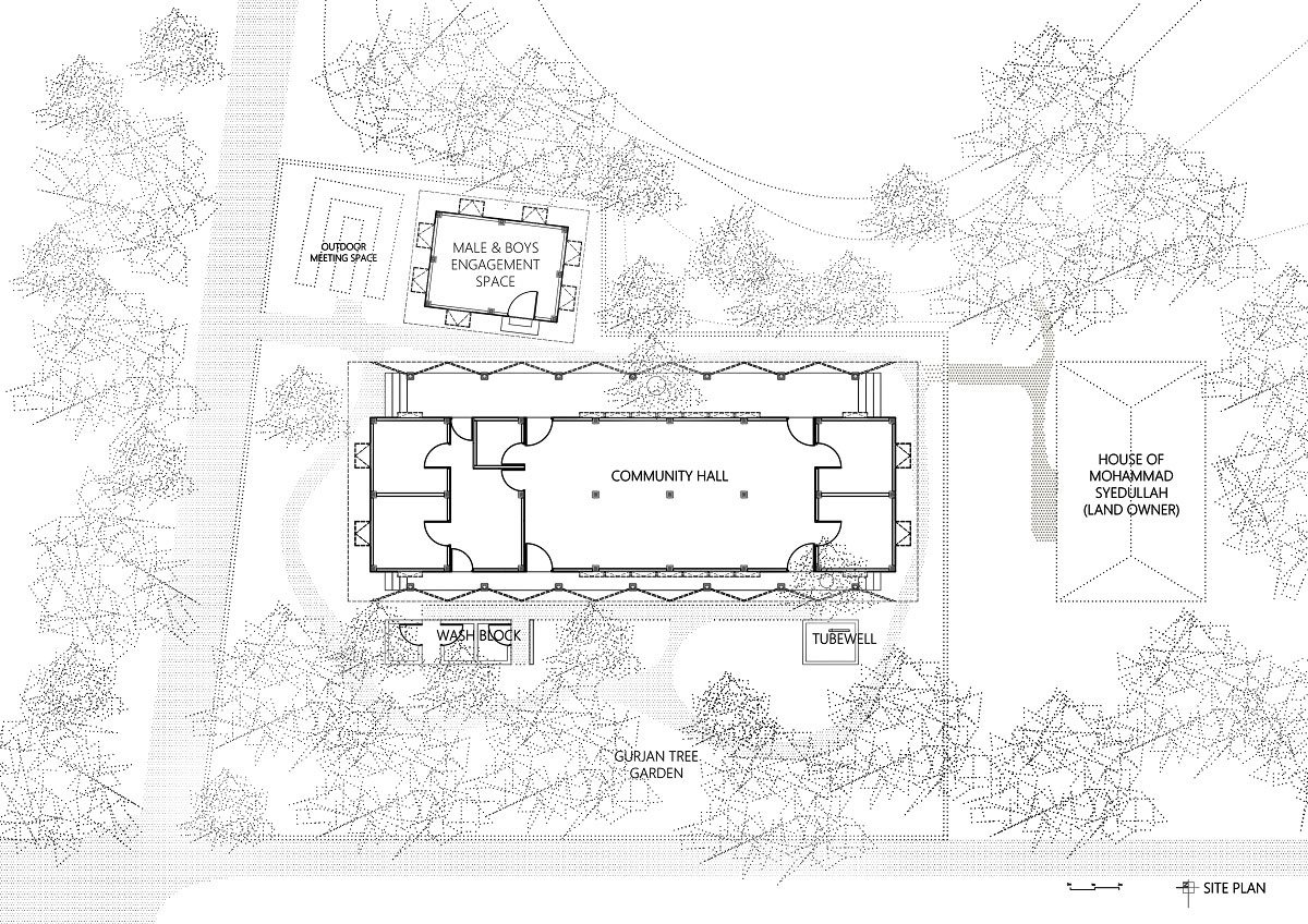 [Text submitted by the Architect] Hindupara community is the minority group among Rohingya refugees who are now living in the world’s largest refugee camp in Kutupalong. Host communities in Bangladesh have been sharing their resources, land & everyday life for more than two years now. As the host communities are very nearby, Hindupara Integrated Community Center was designed to build a sharing platform that will try to create aspiration for the surrounding, and be a catalyst for better communication between refugees and host community as well as majority and minority groups.