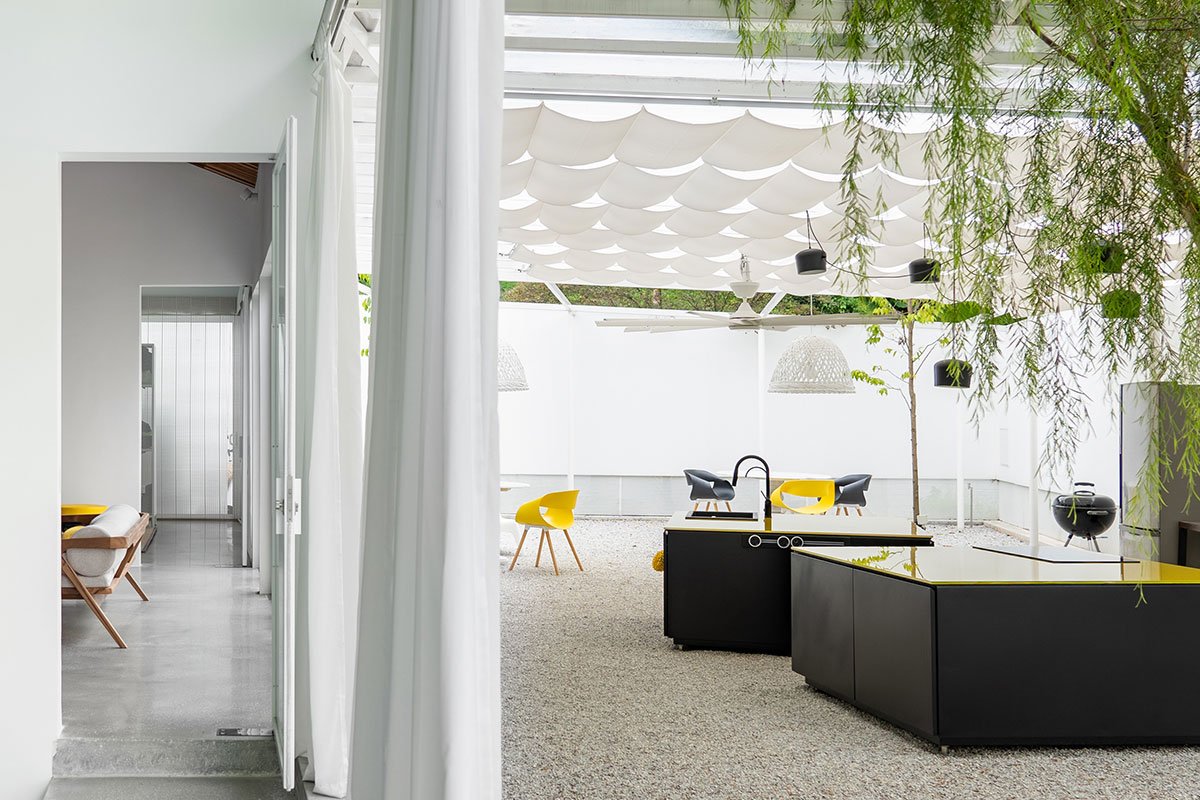From this context, Introverse House emerged, questioning societal standards and embracing a more introspective lifestyle. It is a renovated home for the architect, his wife, who is a contemporary art gallerist and collector, and their four-year-old son. After being diagnosed with vocal cord cancer in 2019, the architect learned to accept and embrace his introverted nature, which influenced this project. The transformation of their 1970s single-storey semi-detached house began in 2020 and continued over the two years of the pandemic.