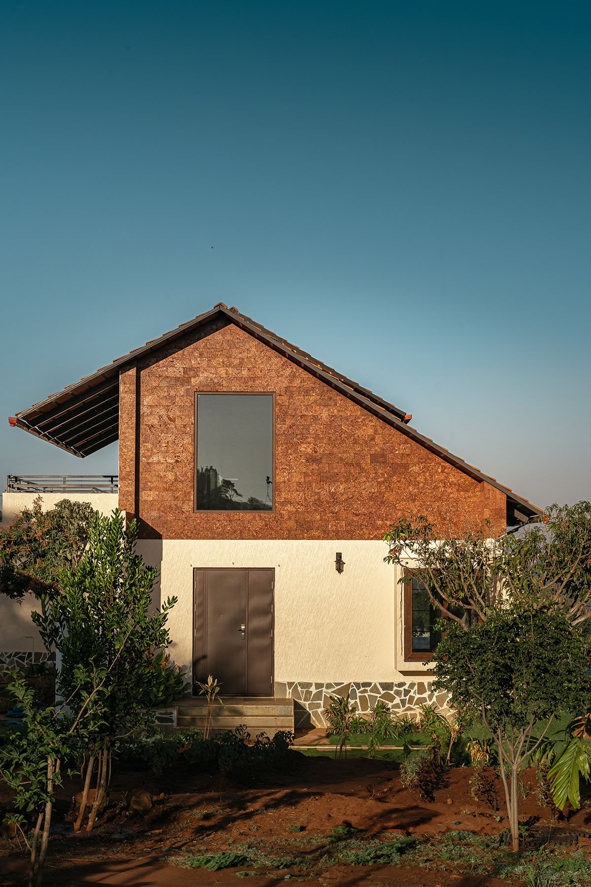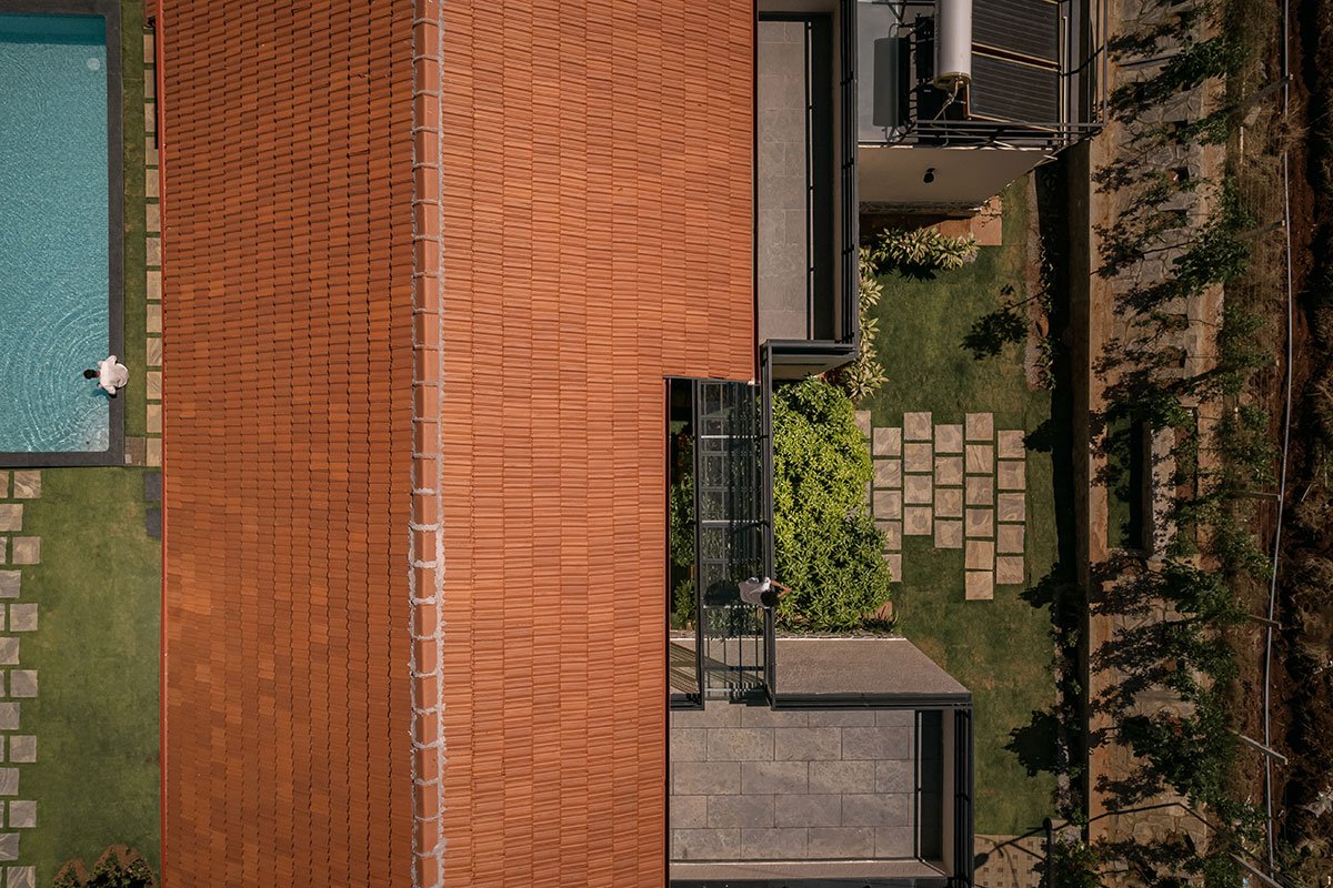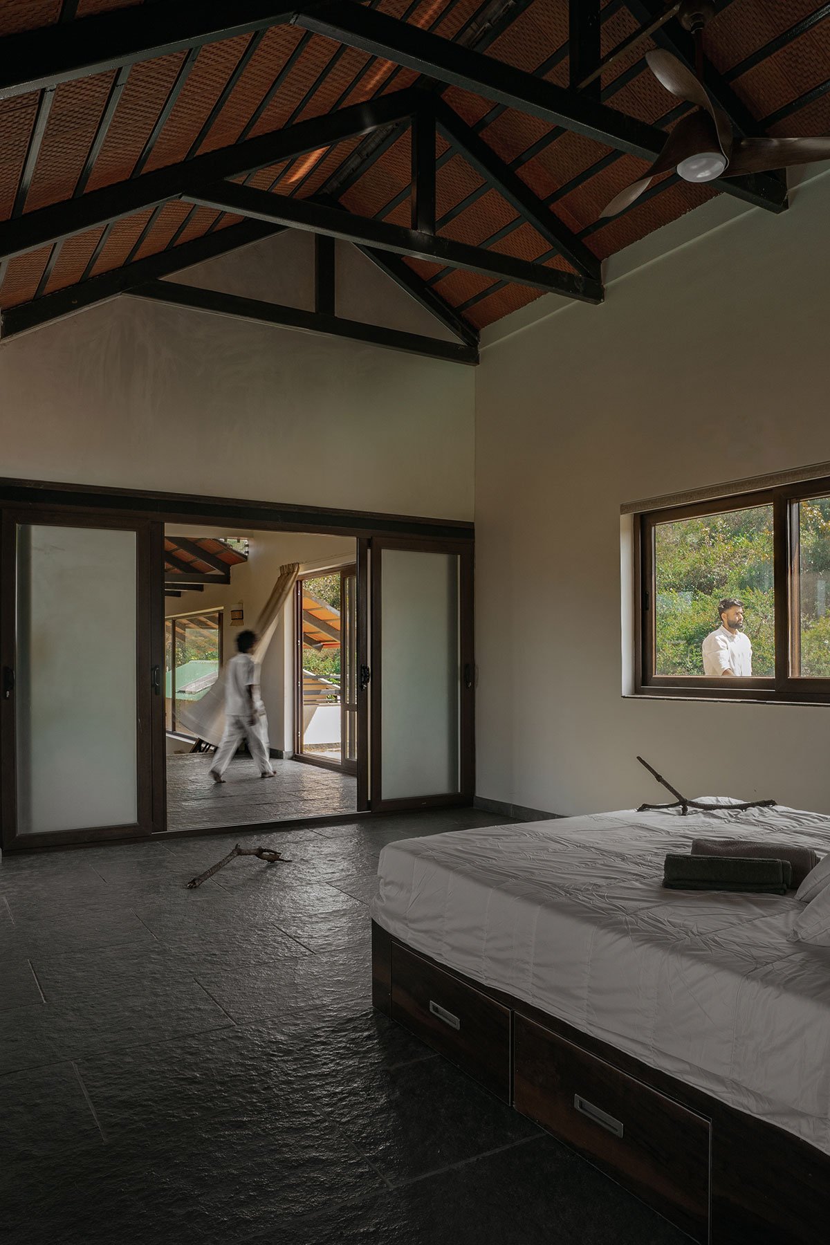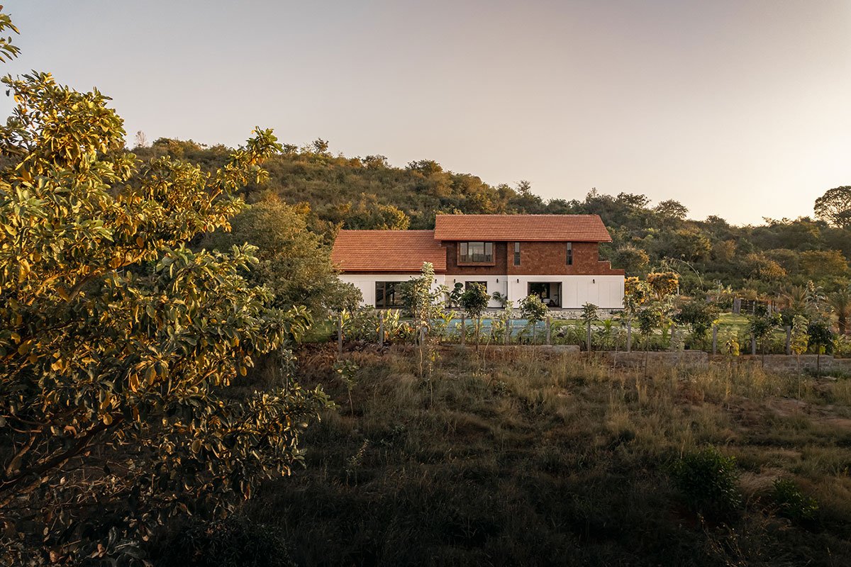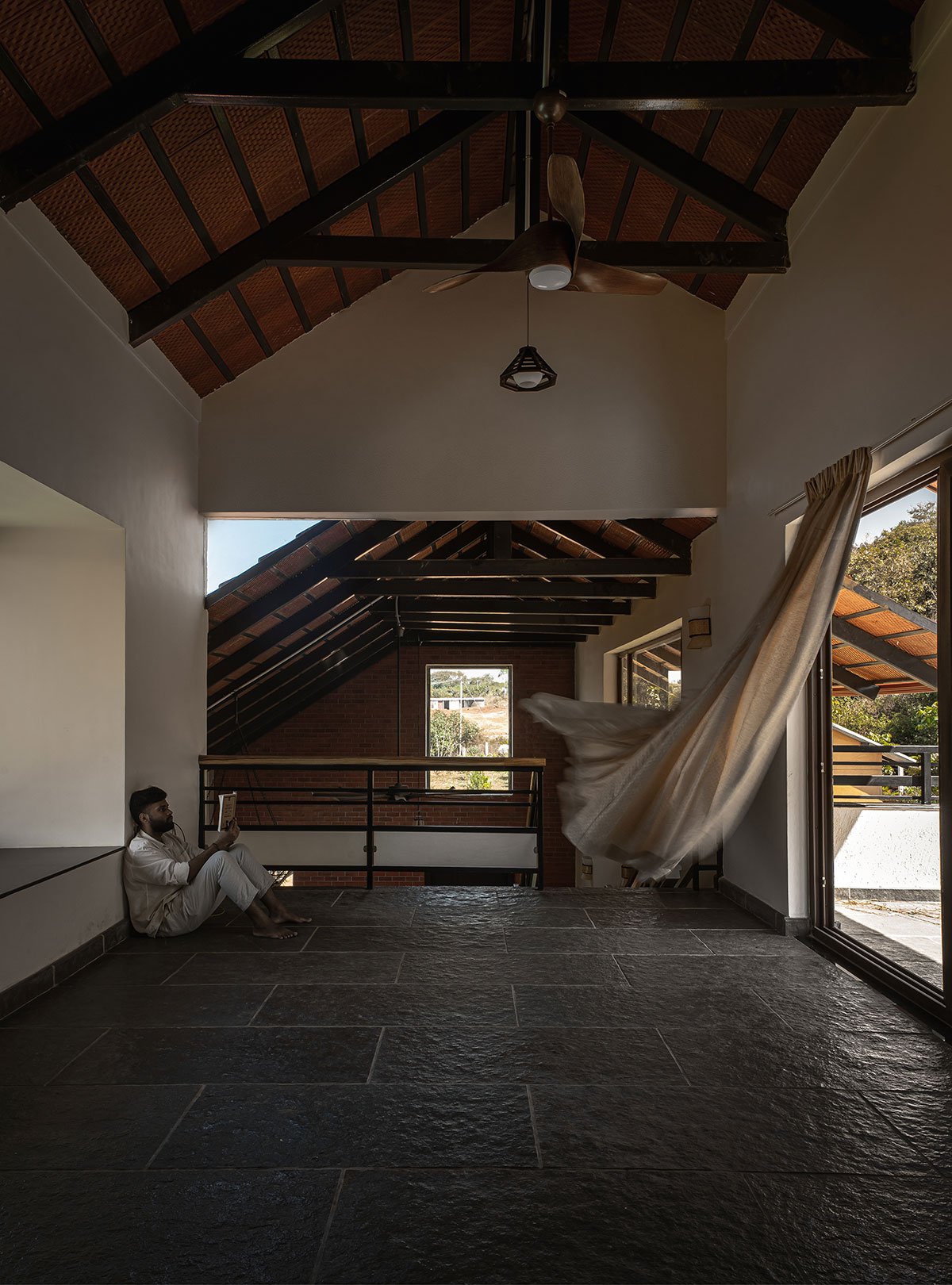 Designed as a weekend sanctuary, Ishavas is an exploration of space, materiality, and environmental sensitivity. The structure follows the land’s natural contours, dissolving boundaries between built and unbuilt spaces. Aligned along the East-West axis, it opens northward, where a tranquil pool extends from the common areas, reinforcing a seamless connection to the outdoors.
